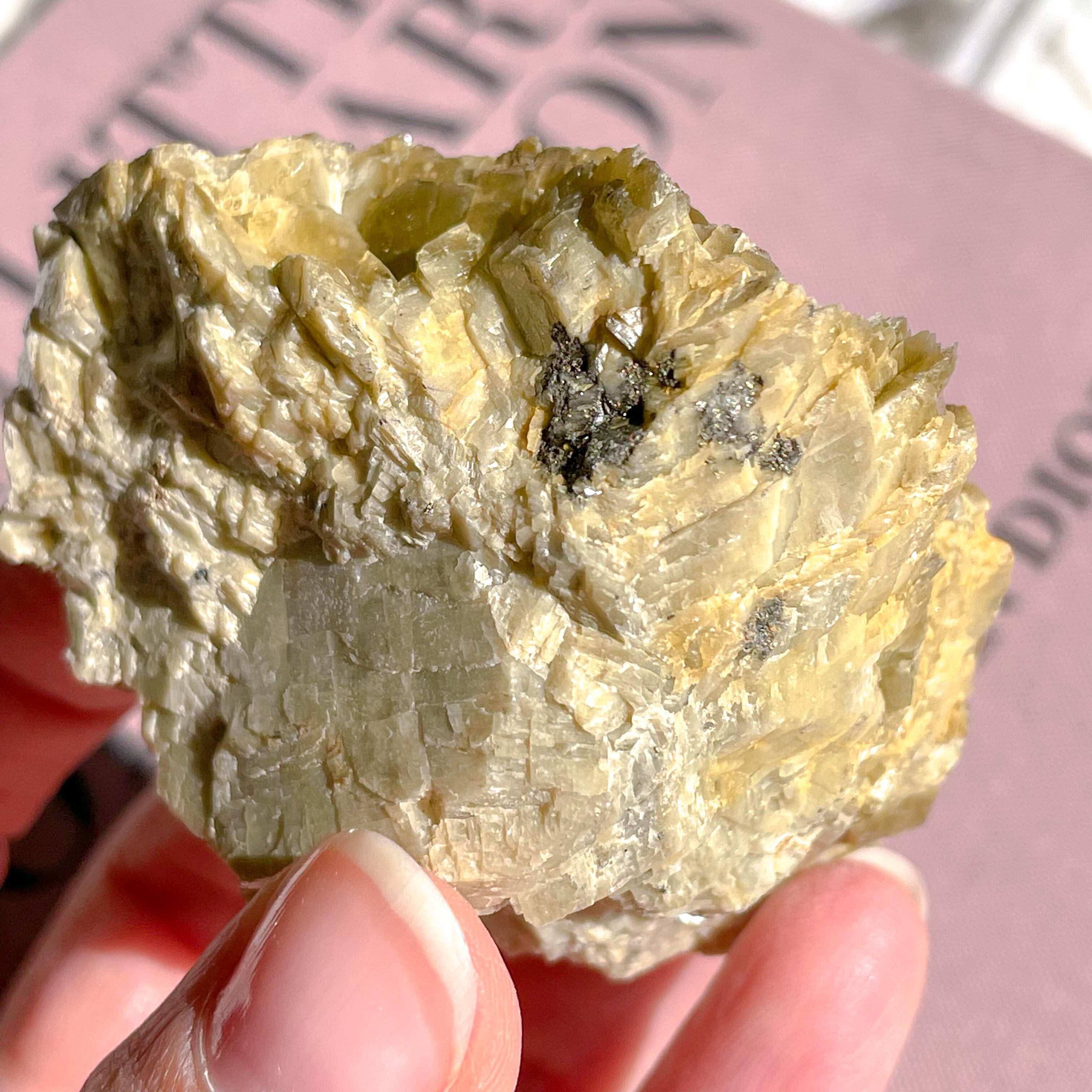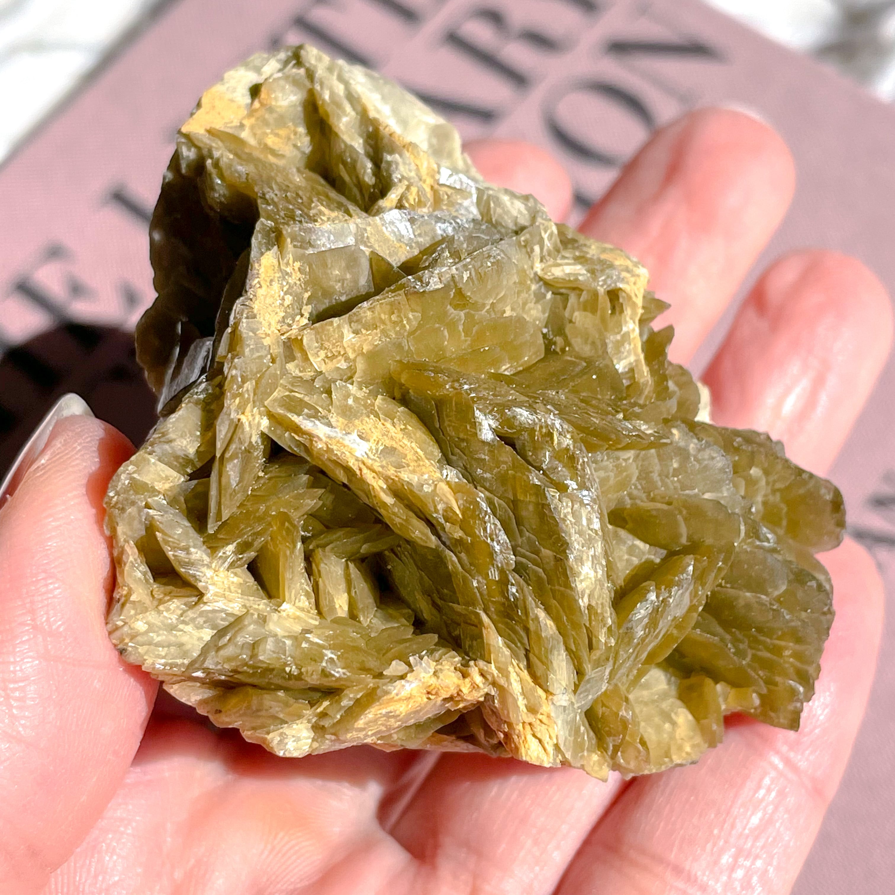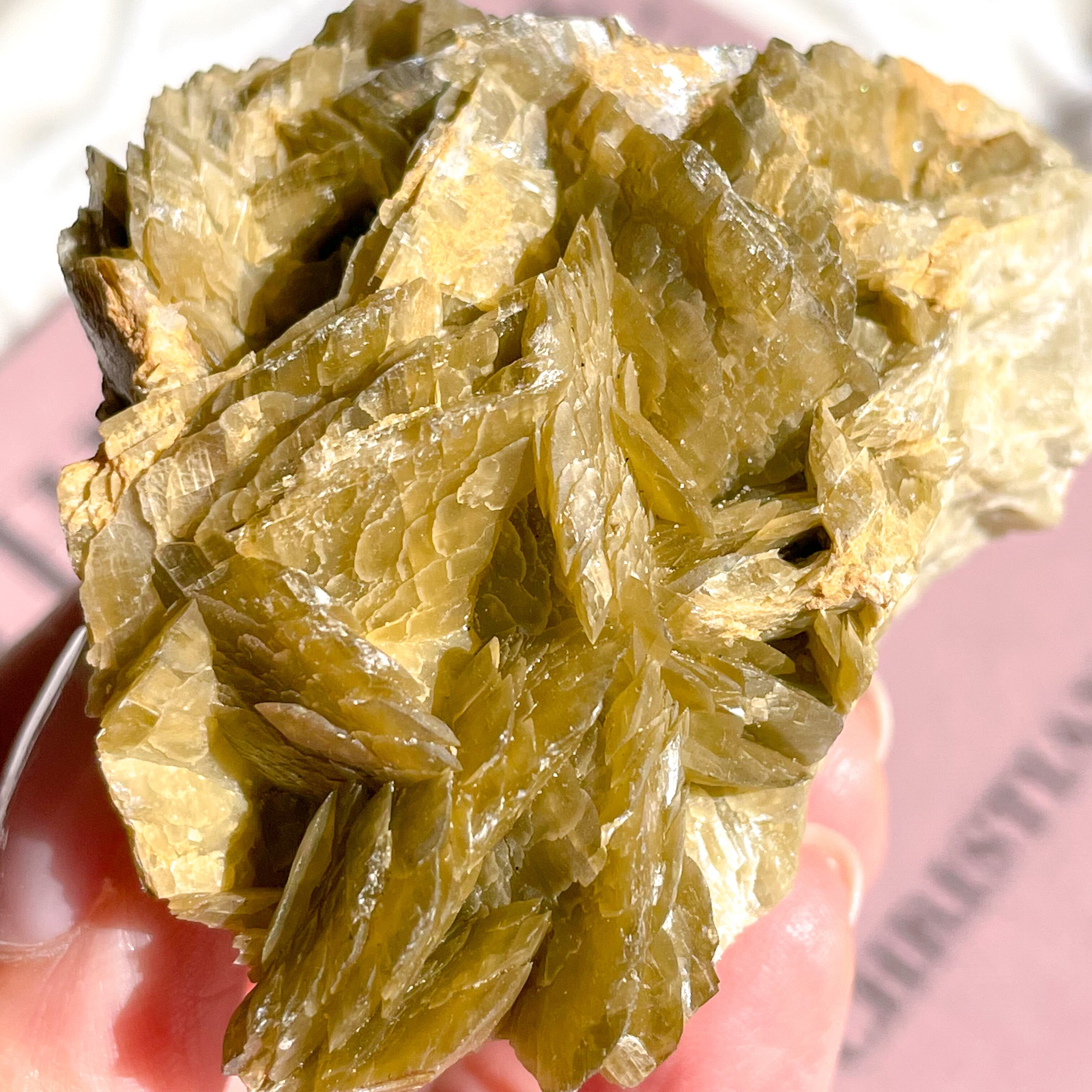 菱面体の結晶が美しい花のような形を形成する珍しいピースです。