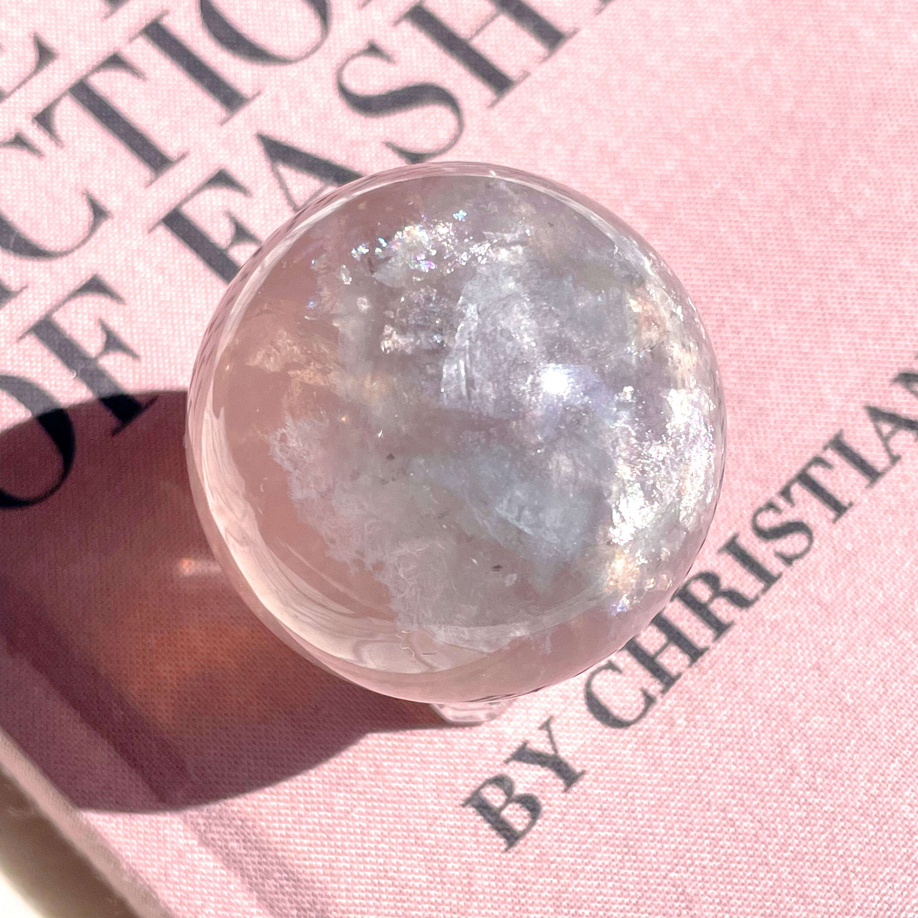 まるで手のひらの中の満点の星空。マイカ入りピーチフローライトのスフィア。