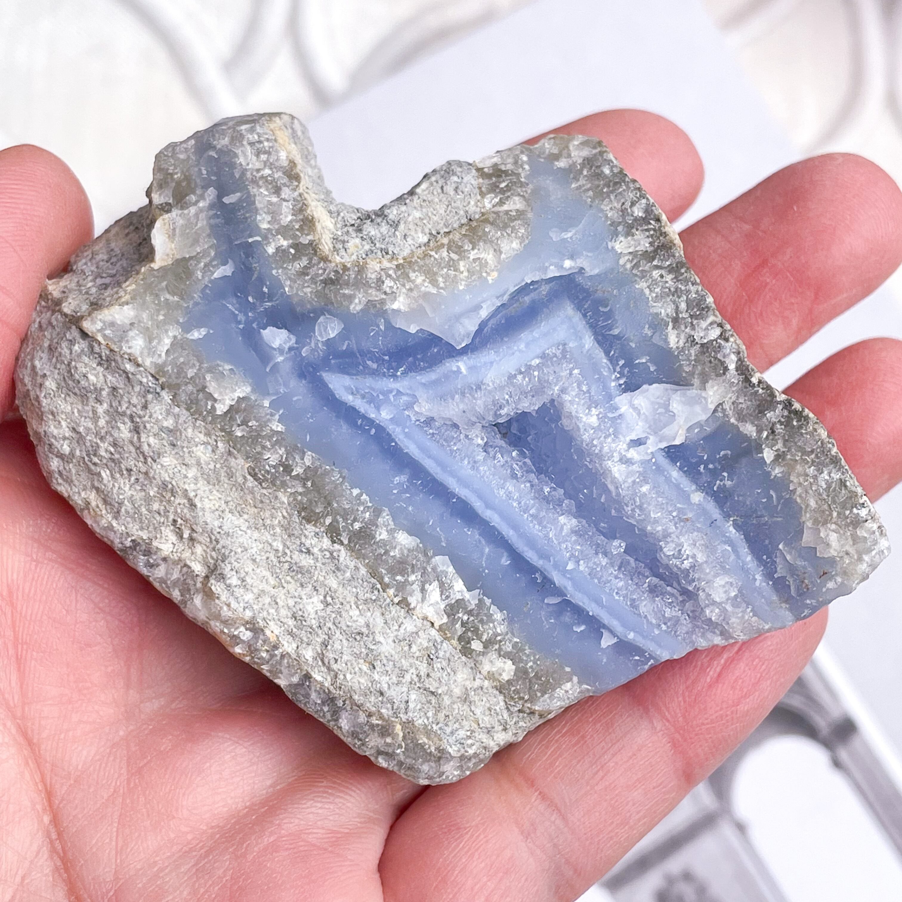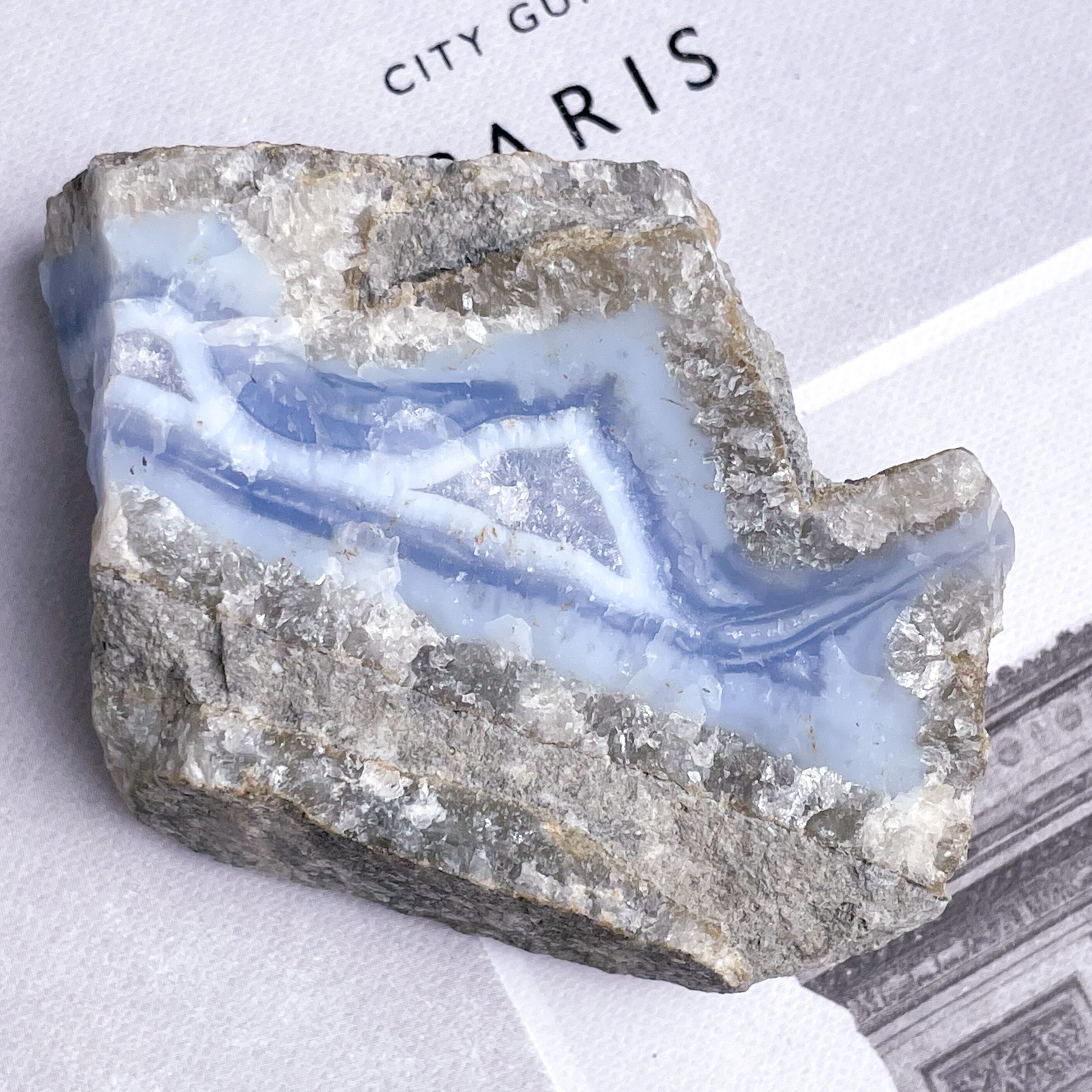 柔らかい薄群青色のグラデーションが美しい瑪瑙です。