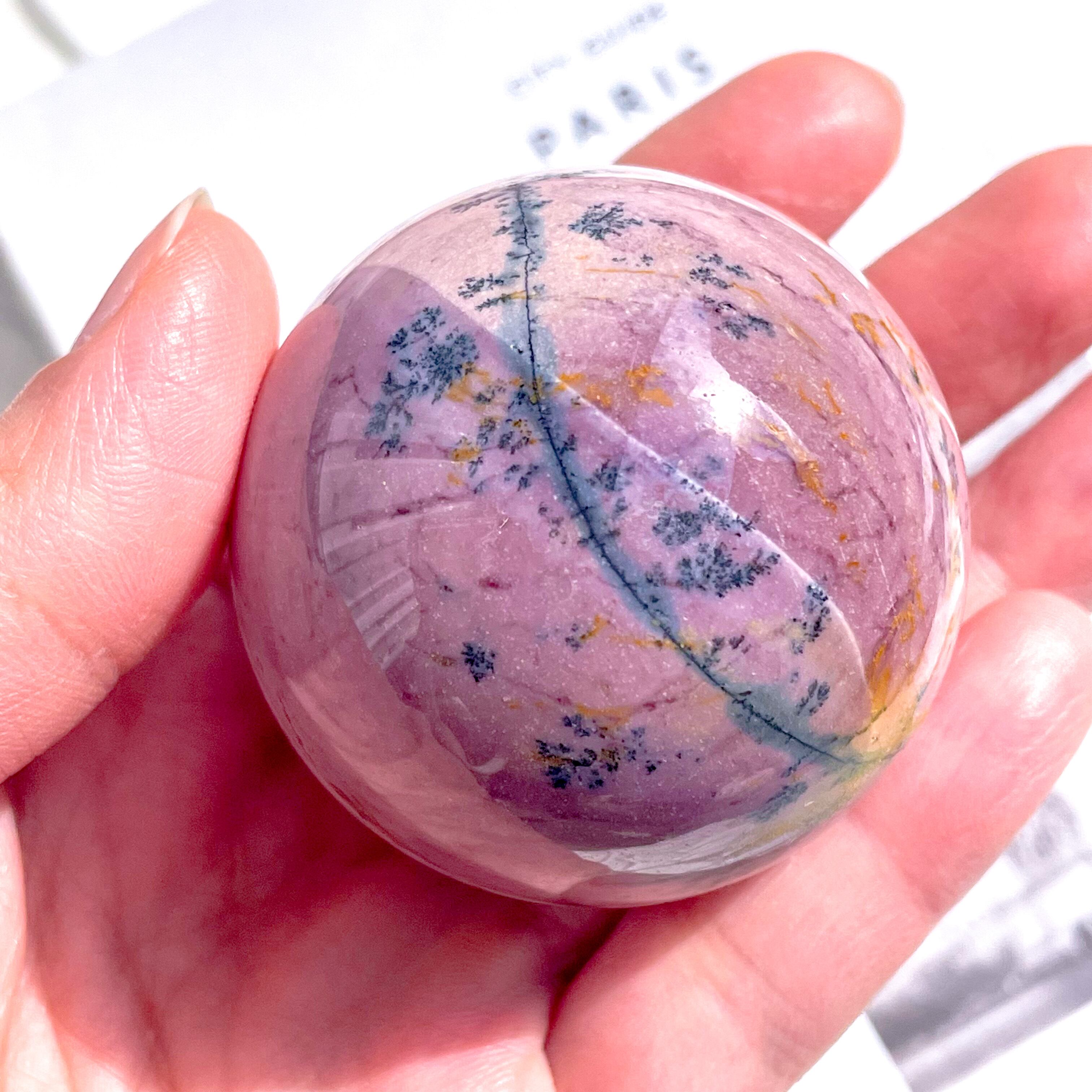 淡いピンクからパープルへ、流れるような美しいグラデーションを描き、ゆったりと伸びるボタニカルな模様が印象的。
