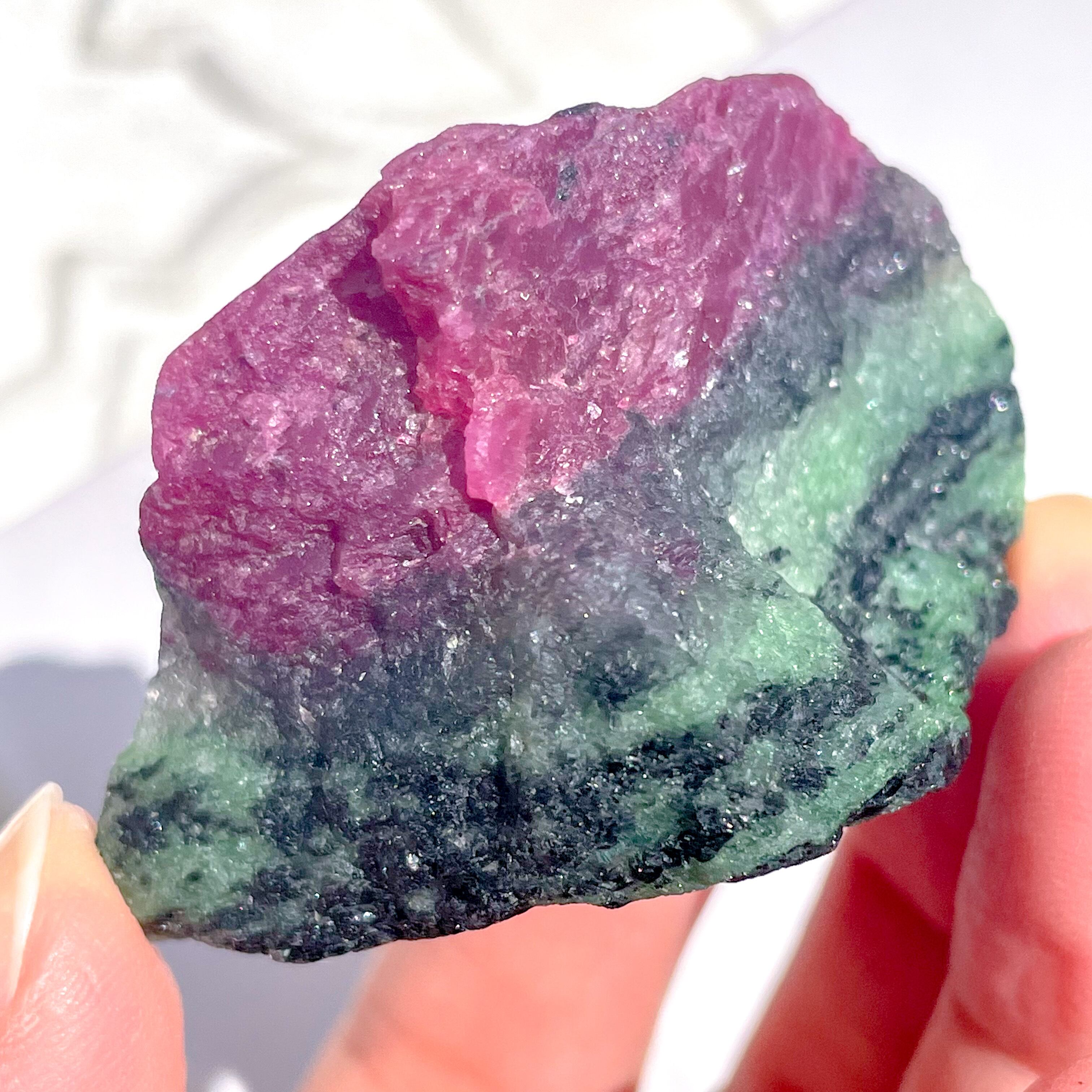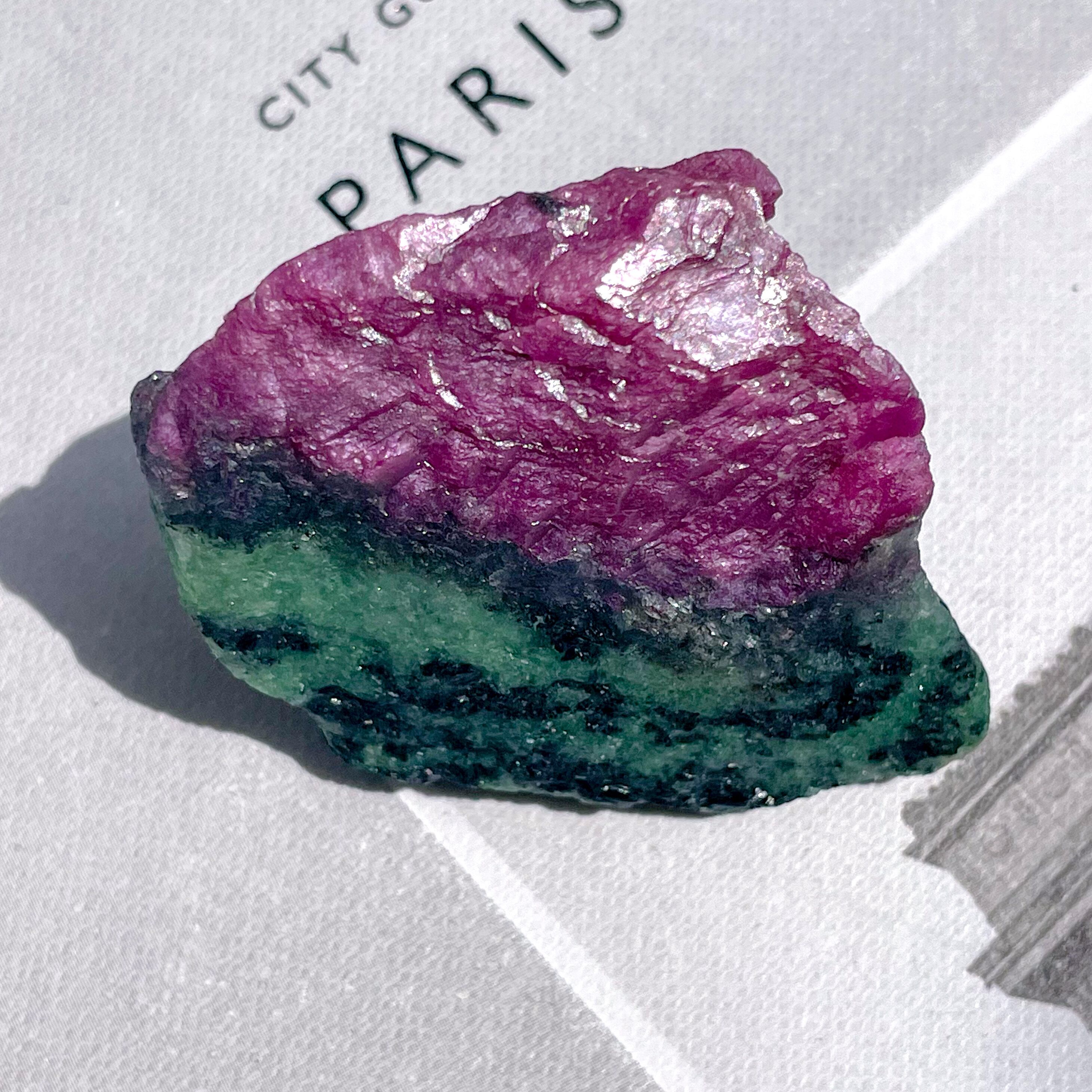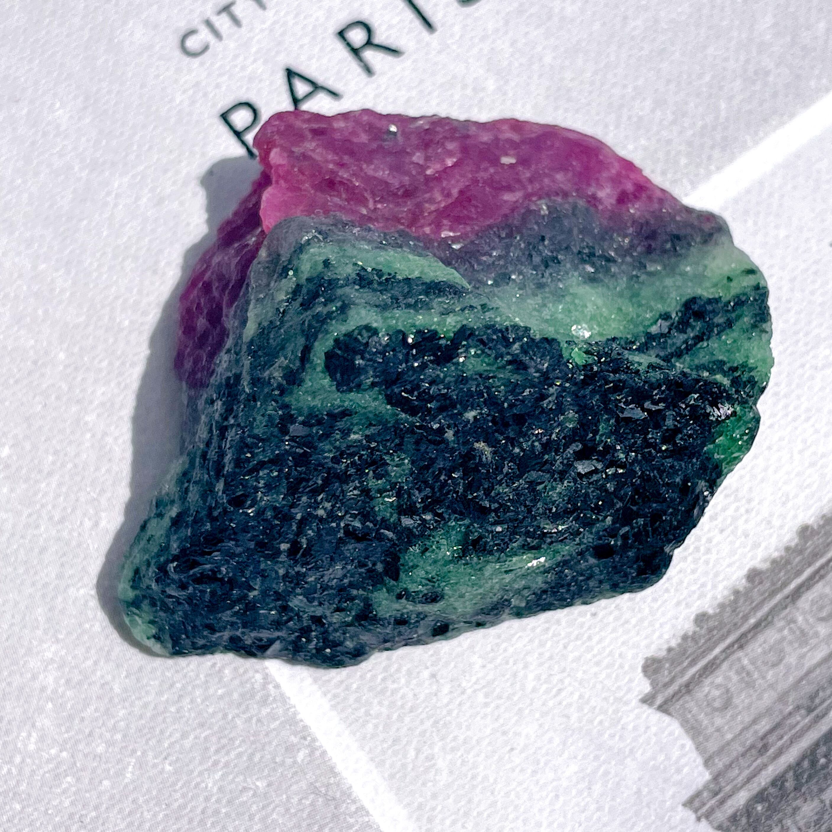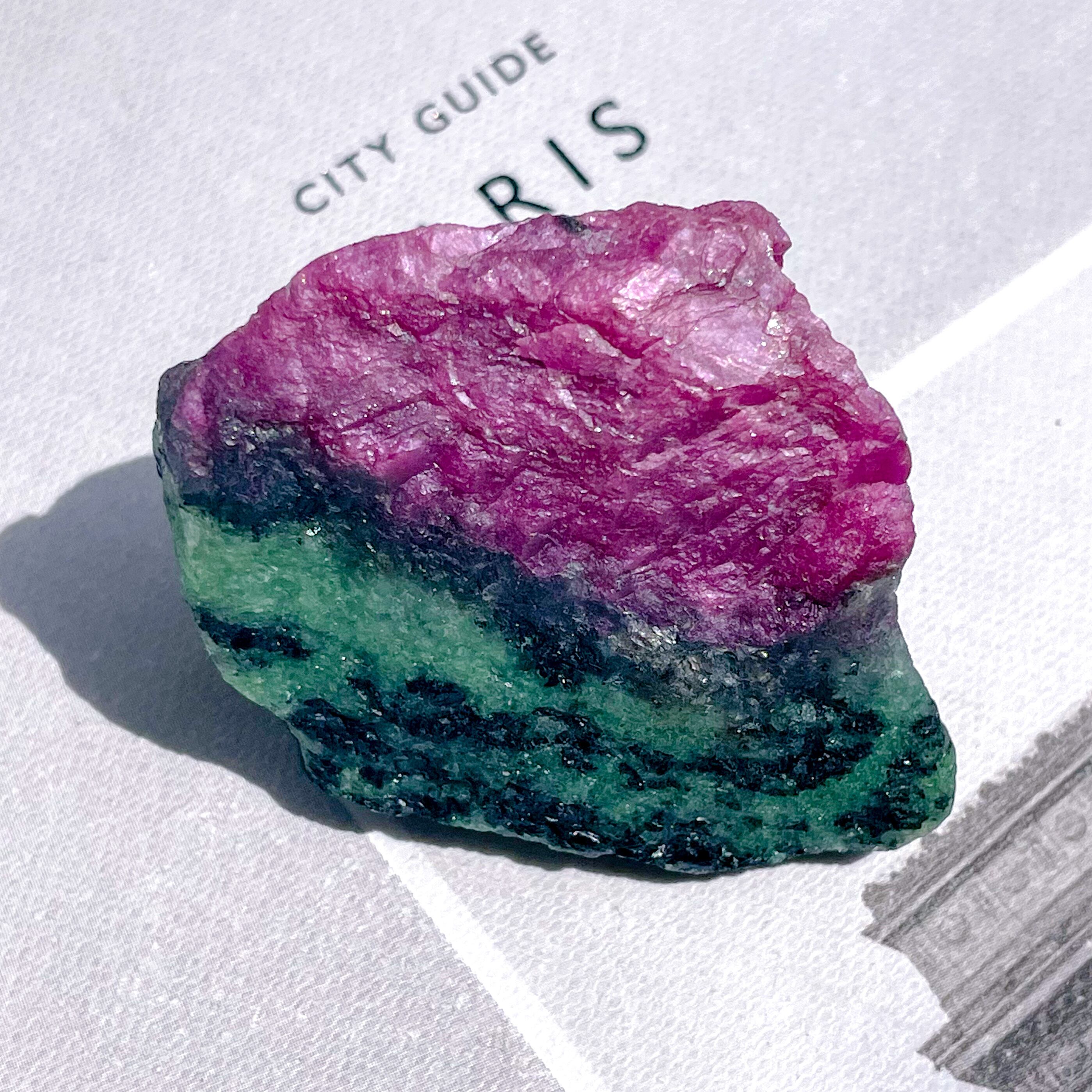 ビビッドなピンクレッドのルビーとグリーンのゾイサイト。ルビーインゾイサイトの原石です。