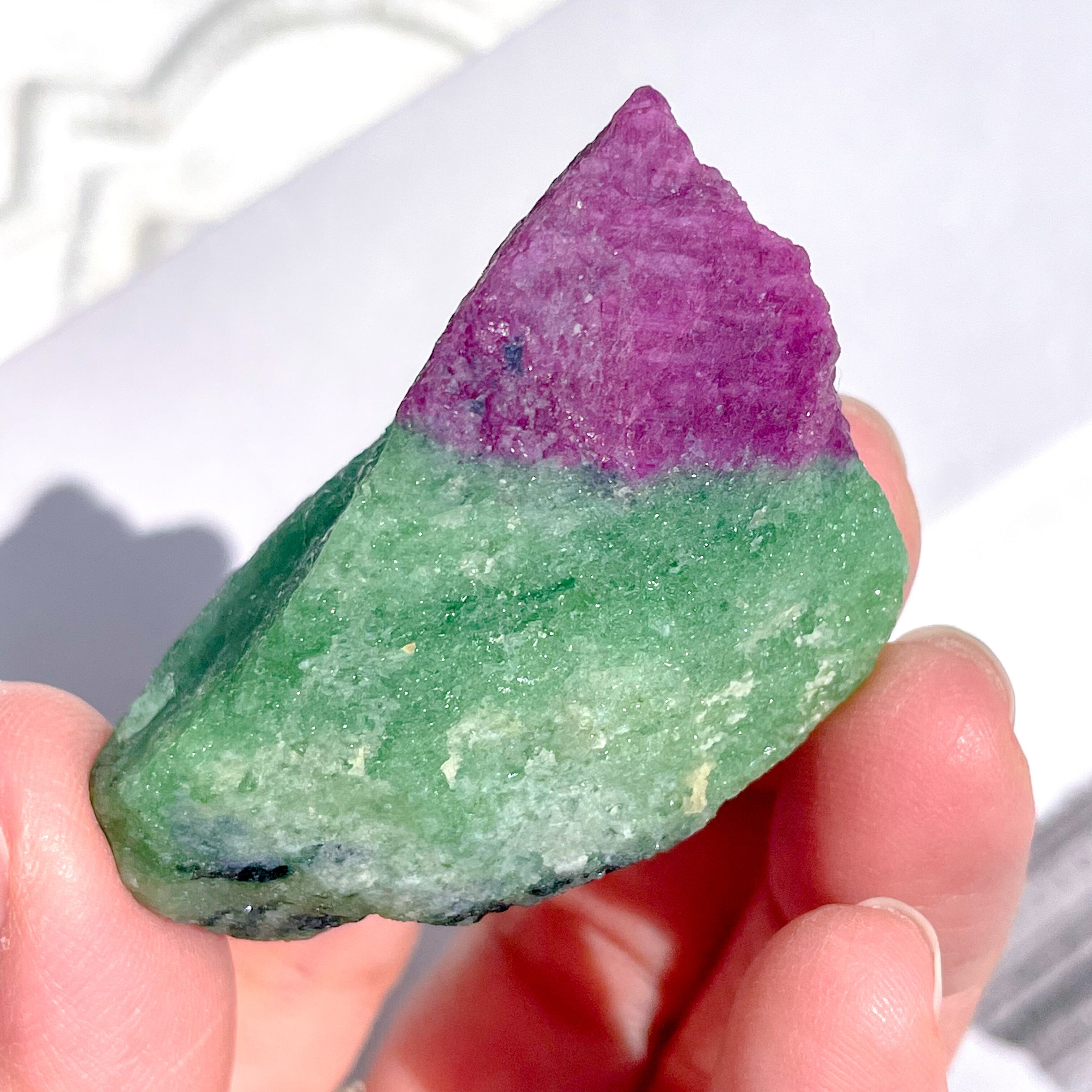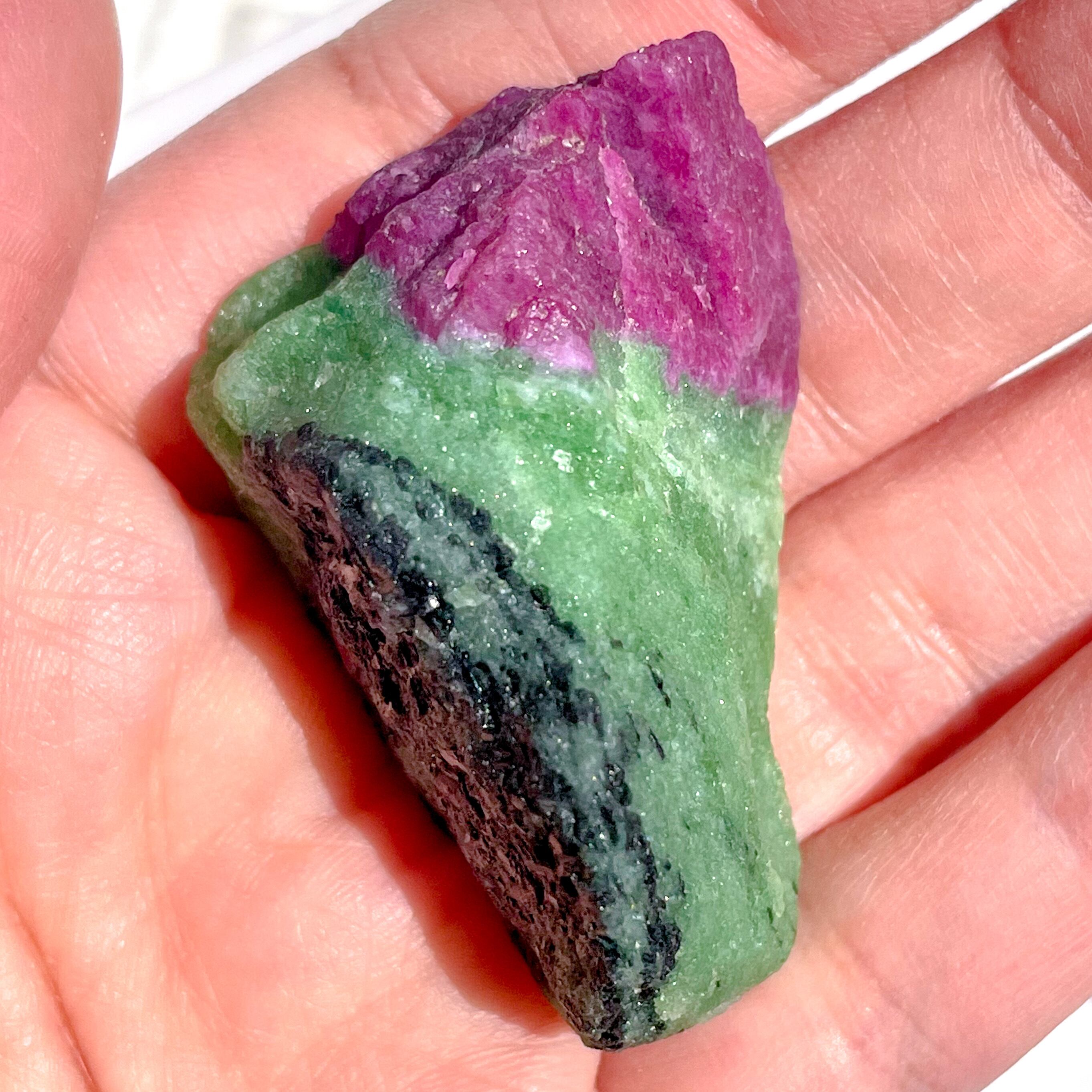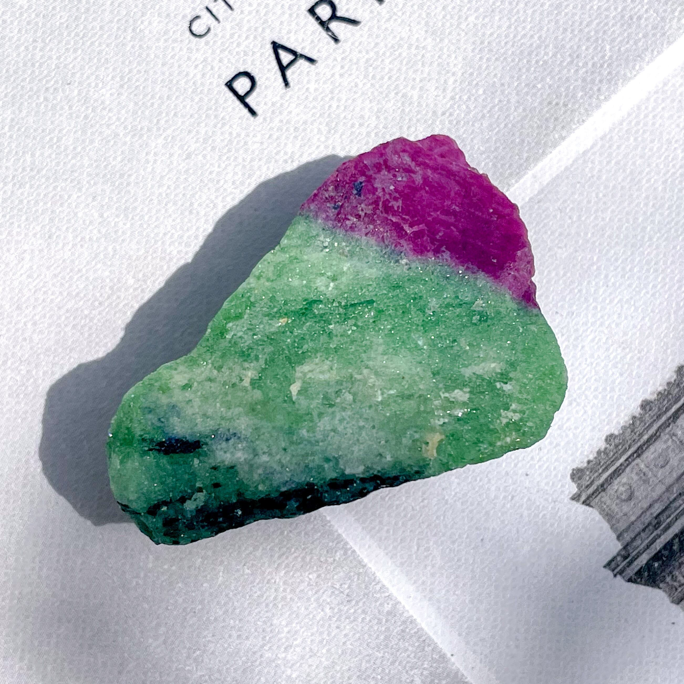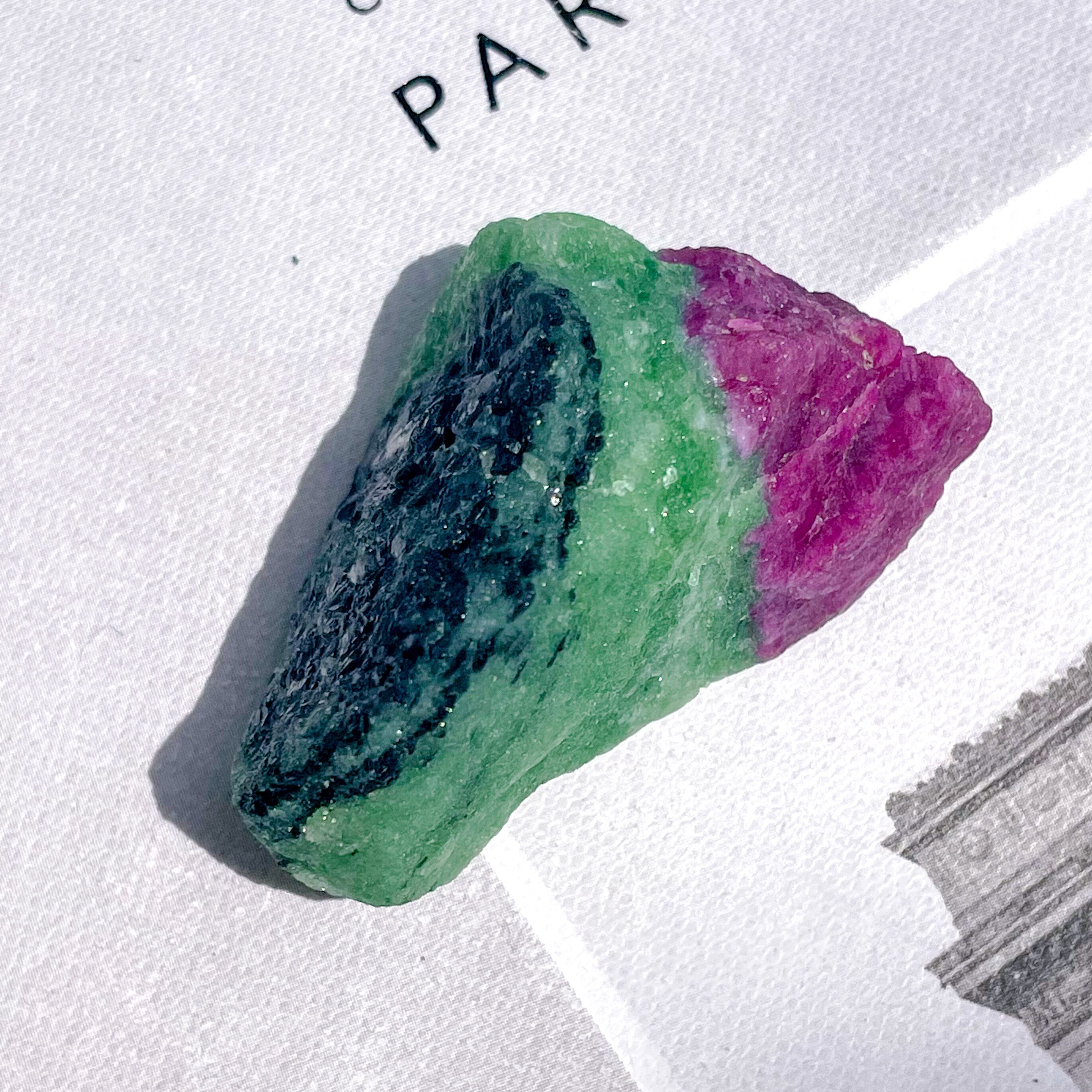 ビビッドなピンクレッドのルビーとグリーンのゾイサイト。ルビーインゾイサイトの原石です。