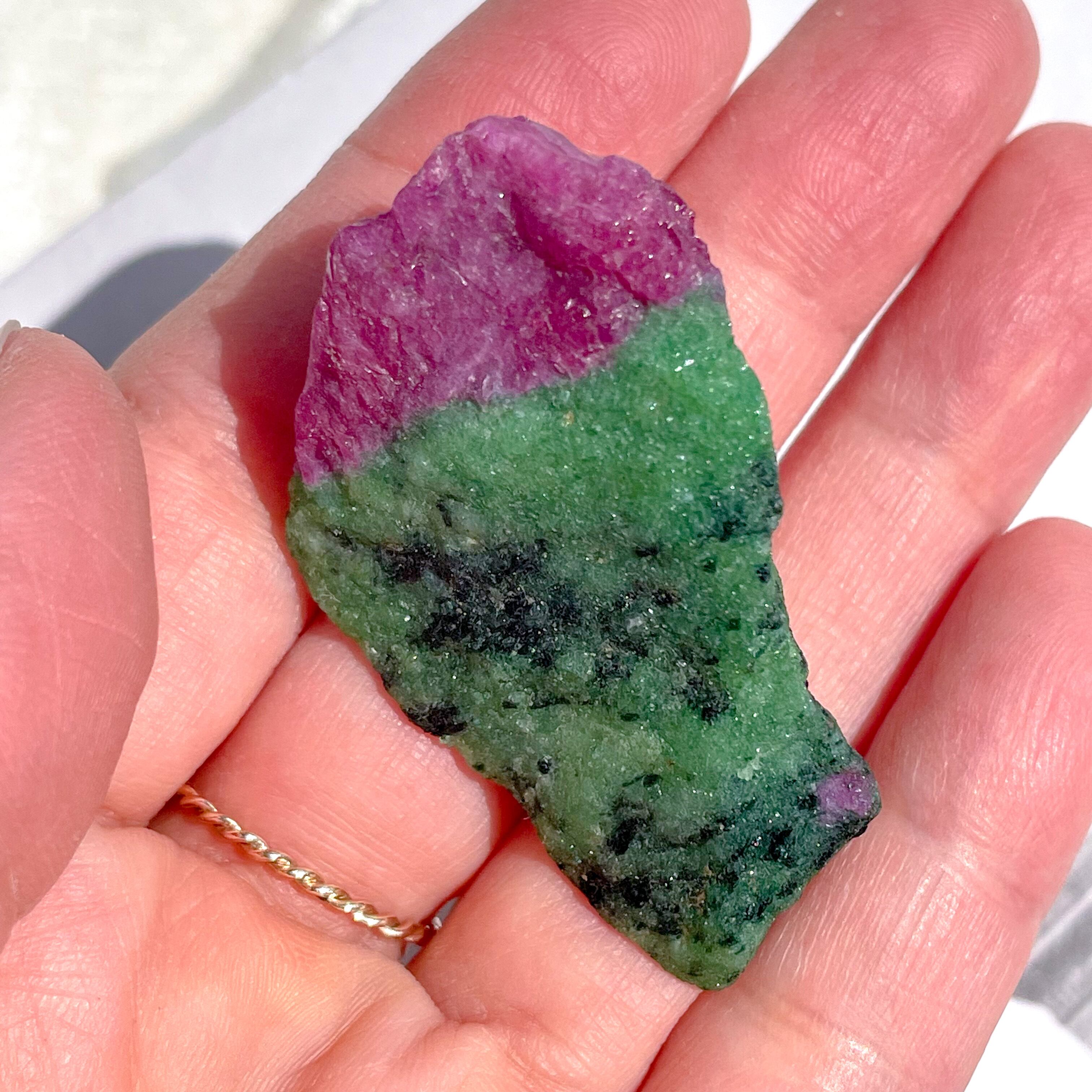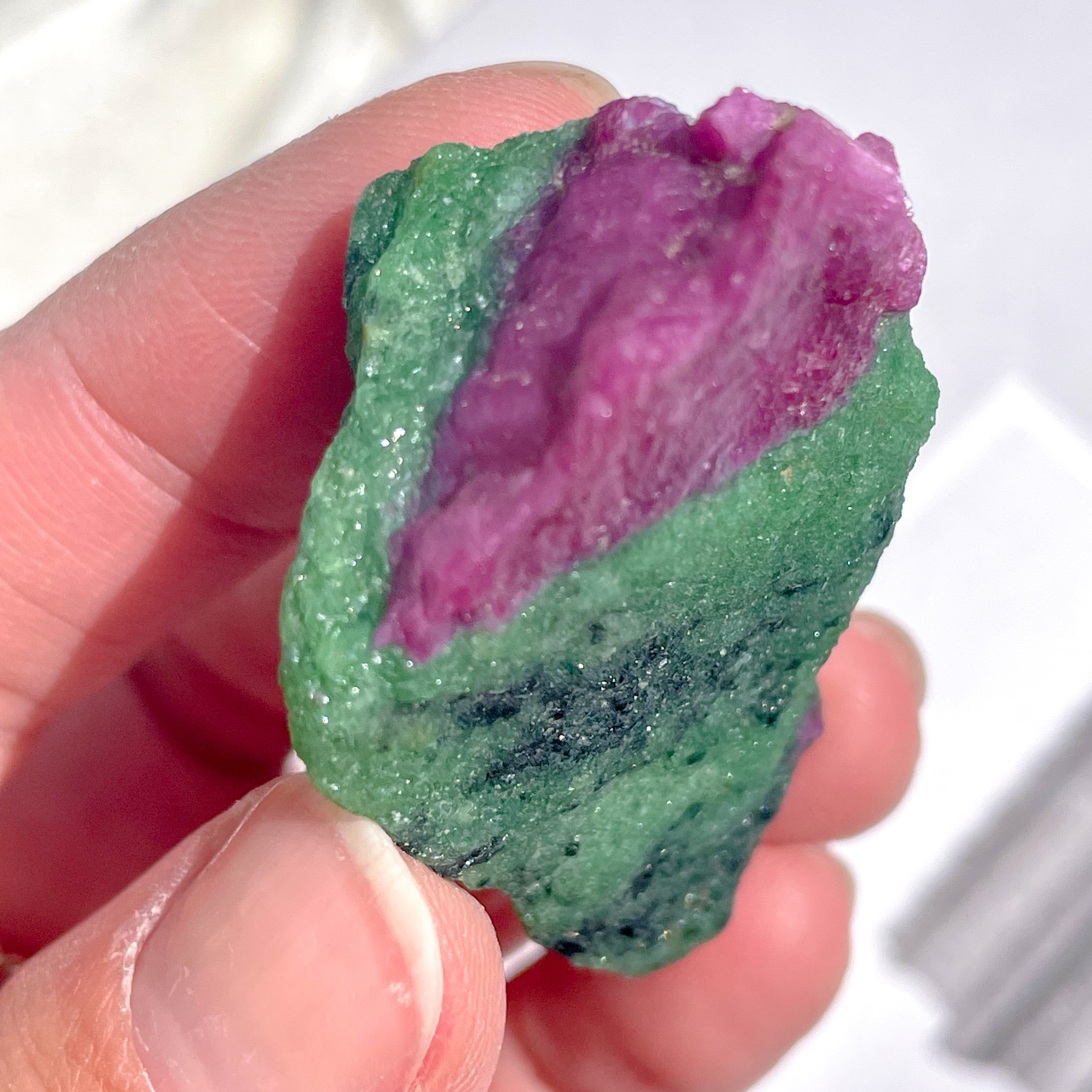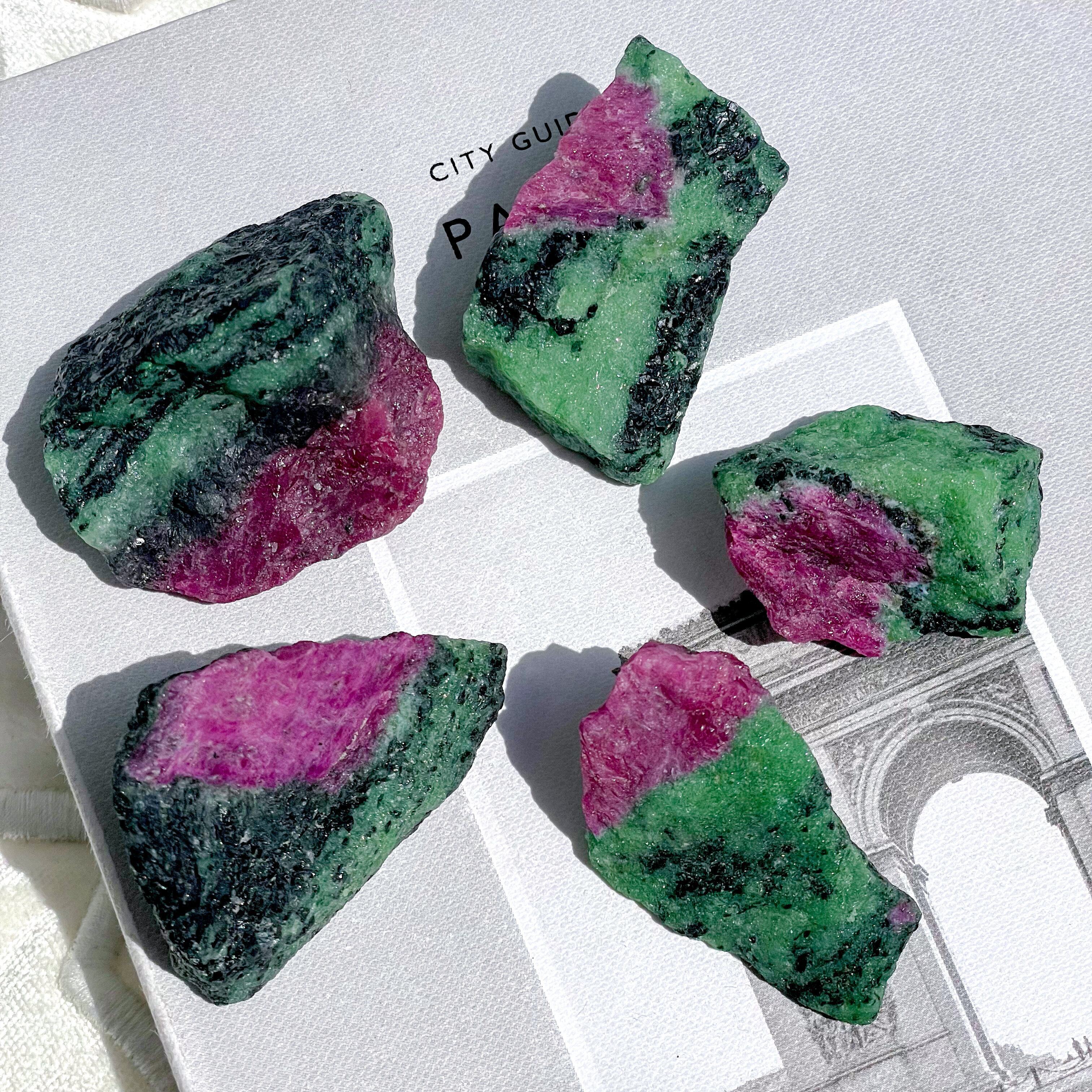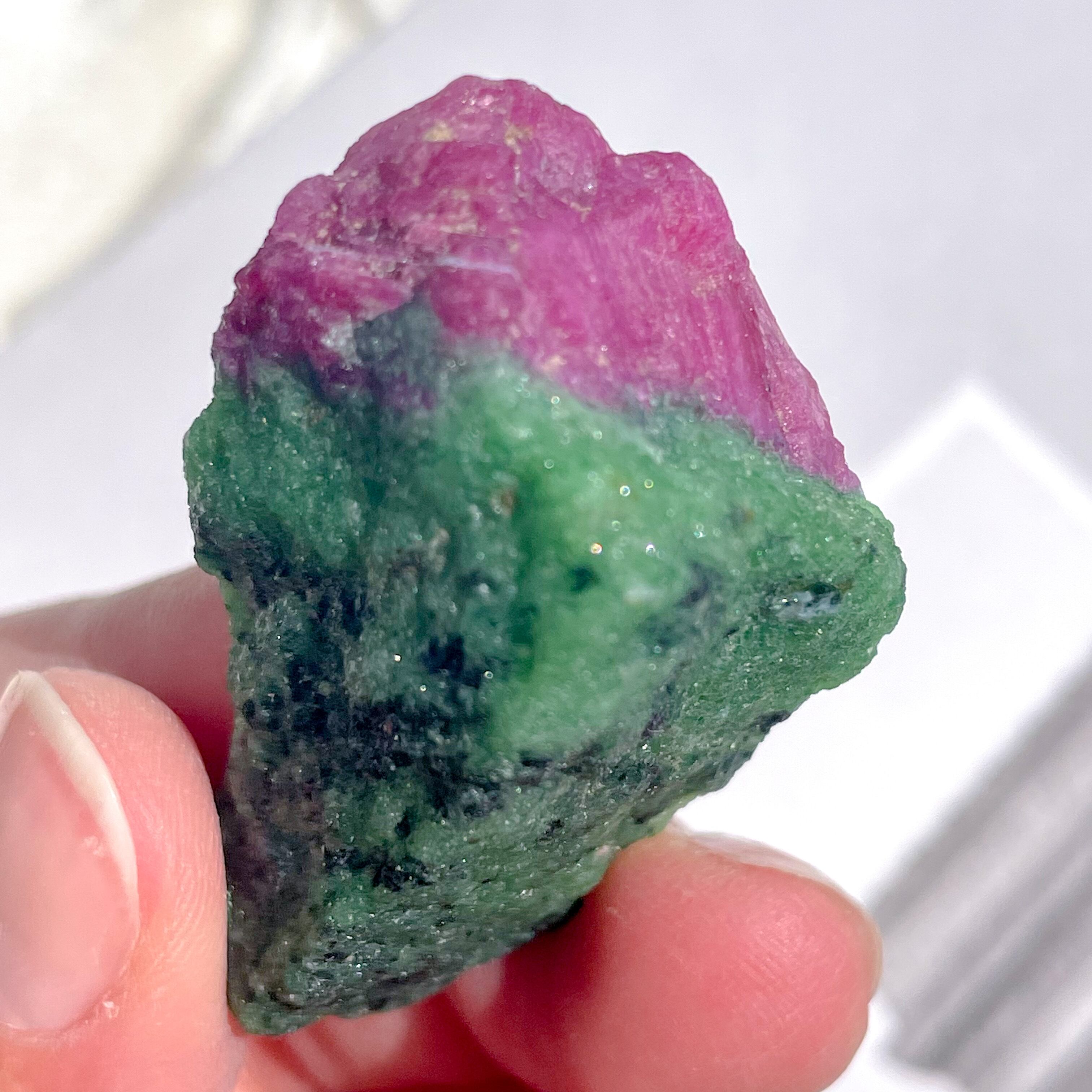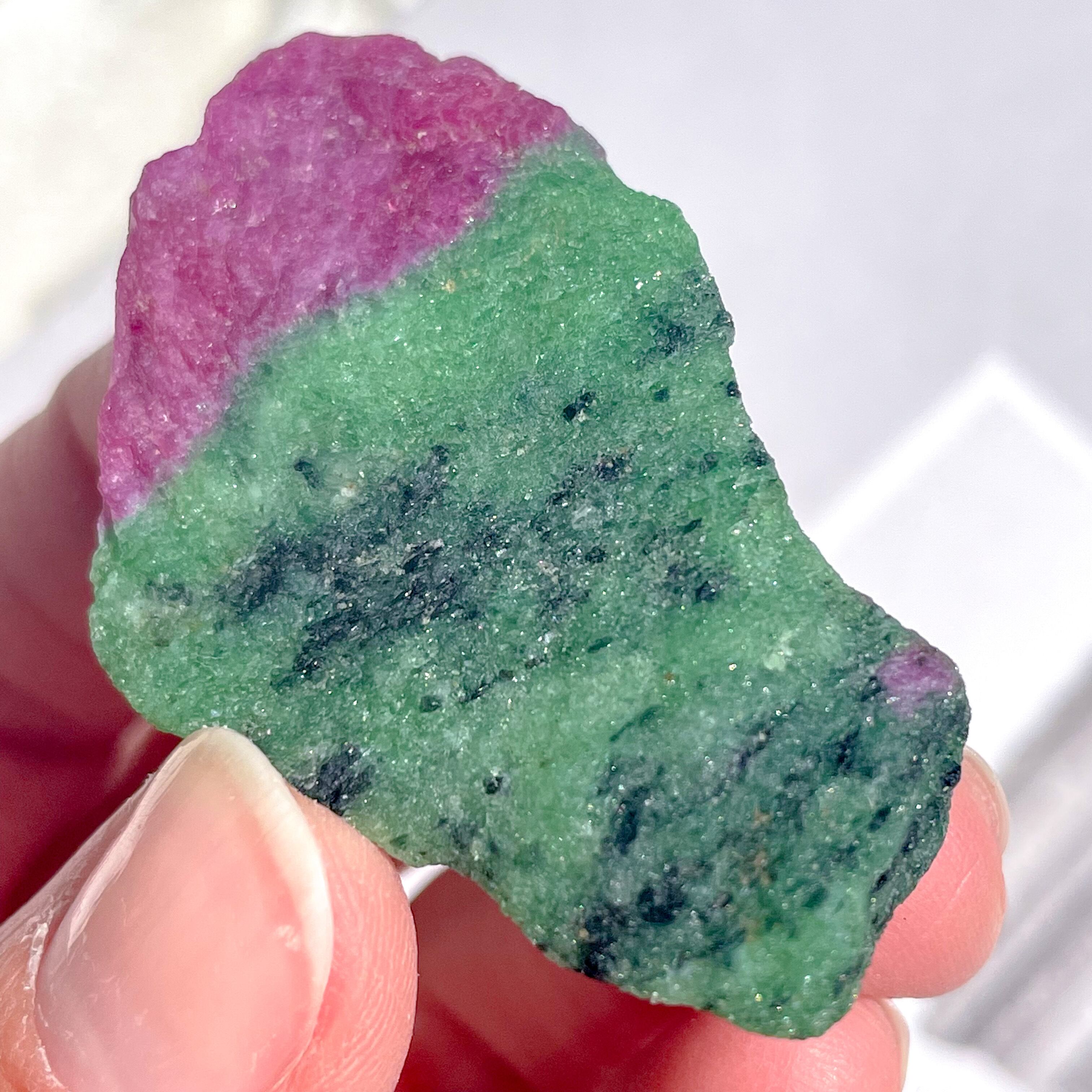 ビビッドなピンクレッドのルビーとグリーンのゾイサイト。ルビーインゾイサイトの原石です。