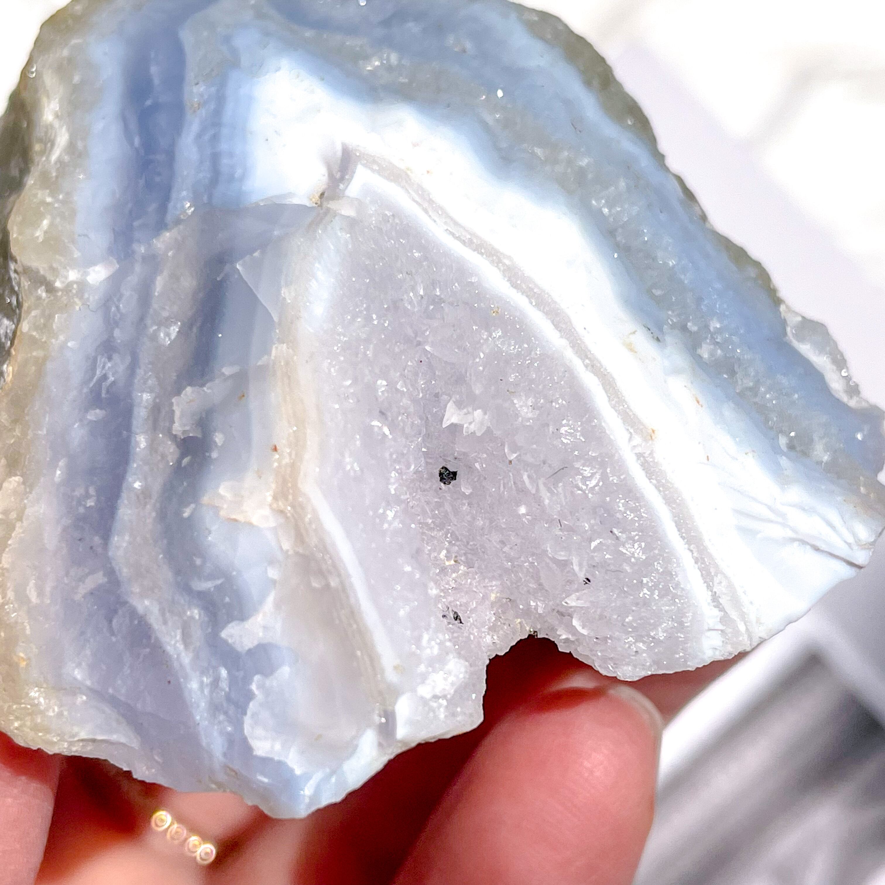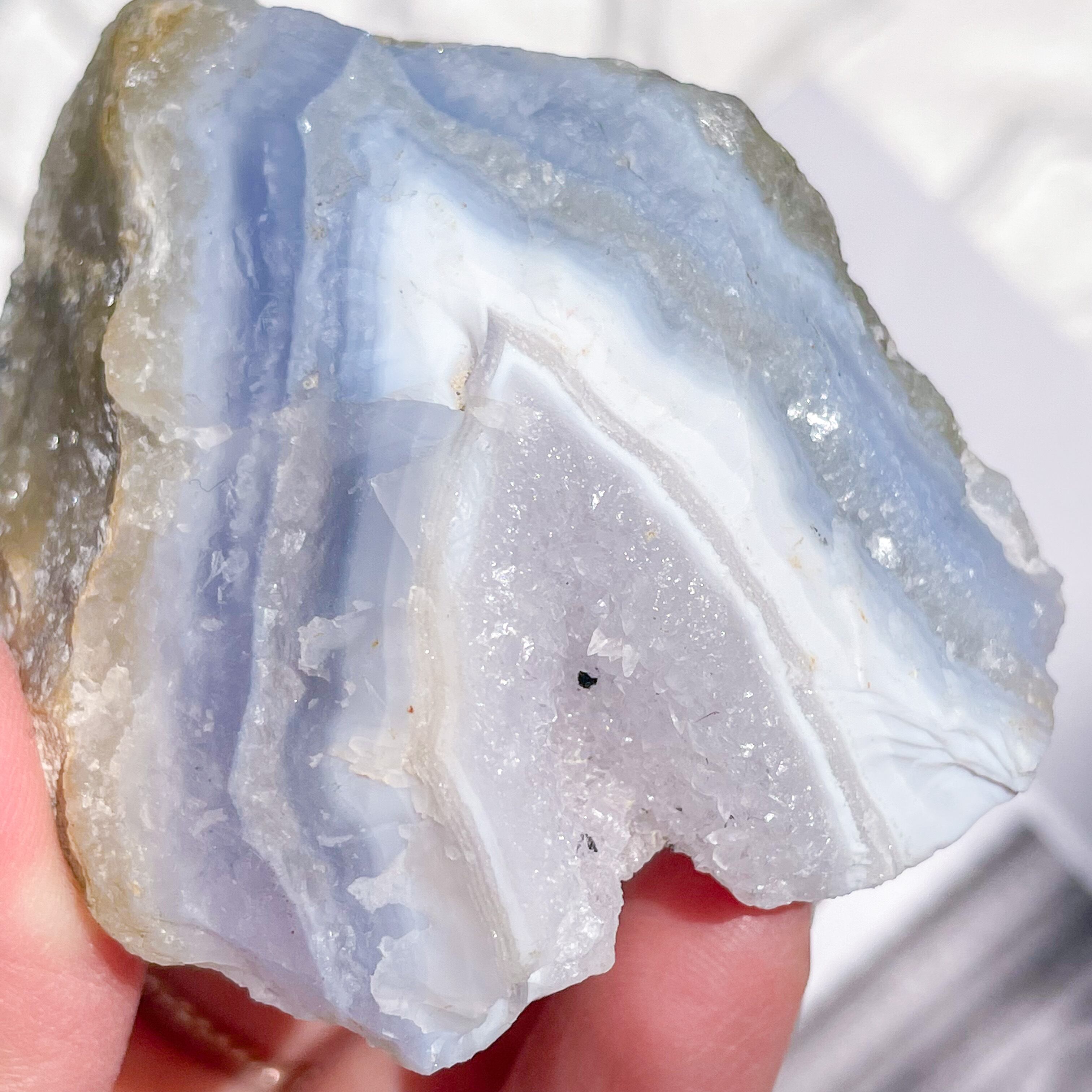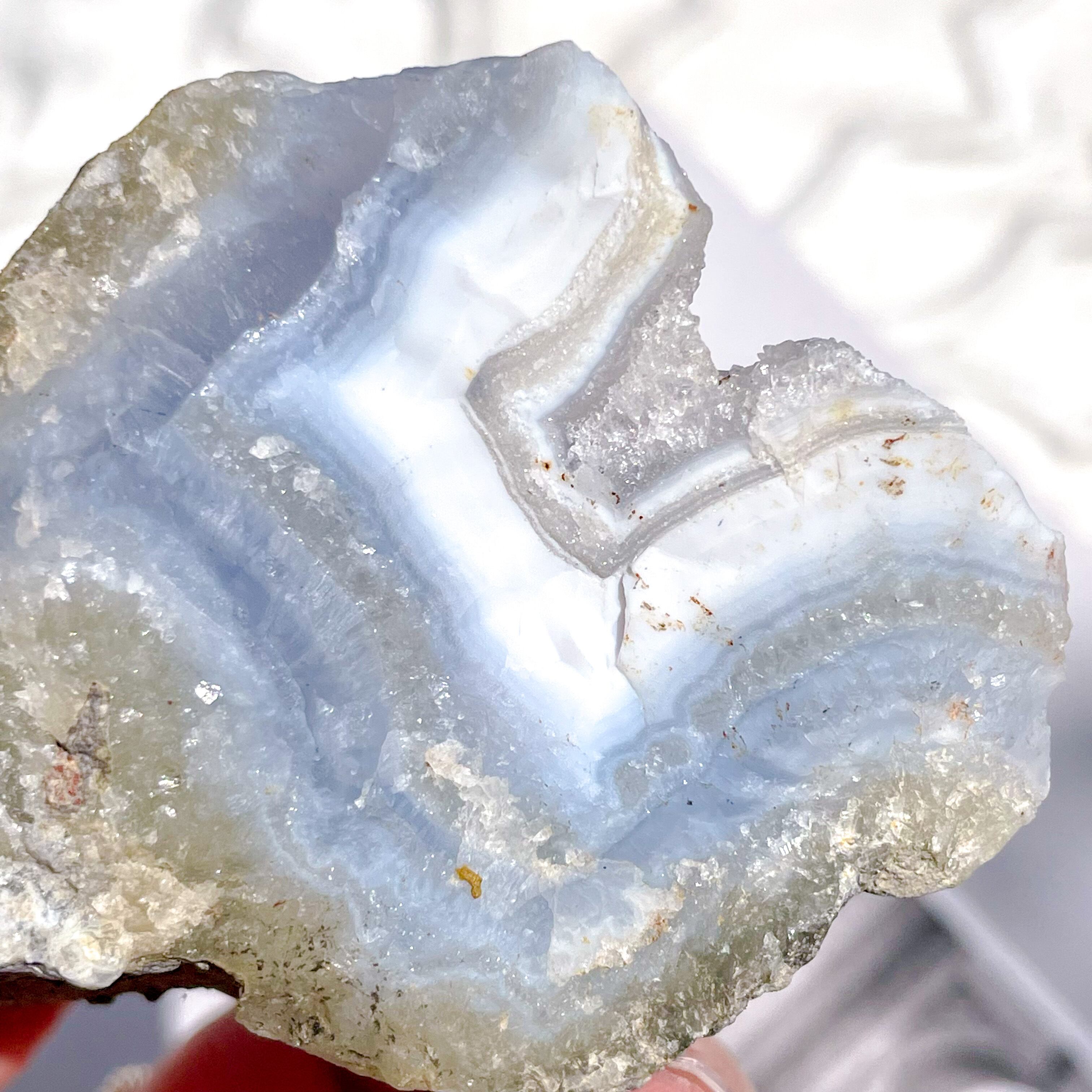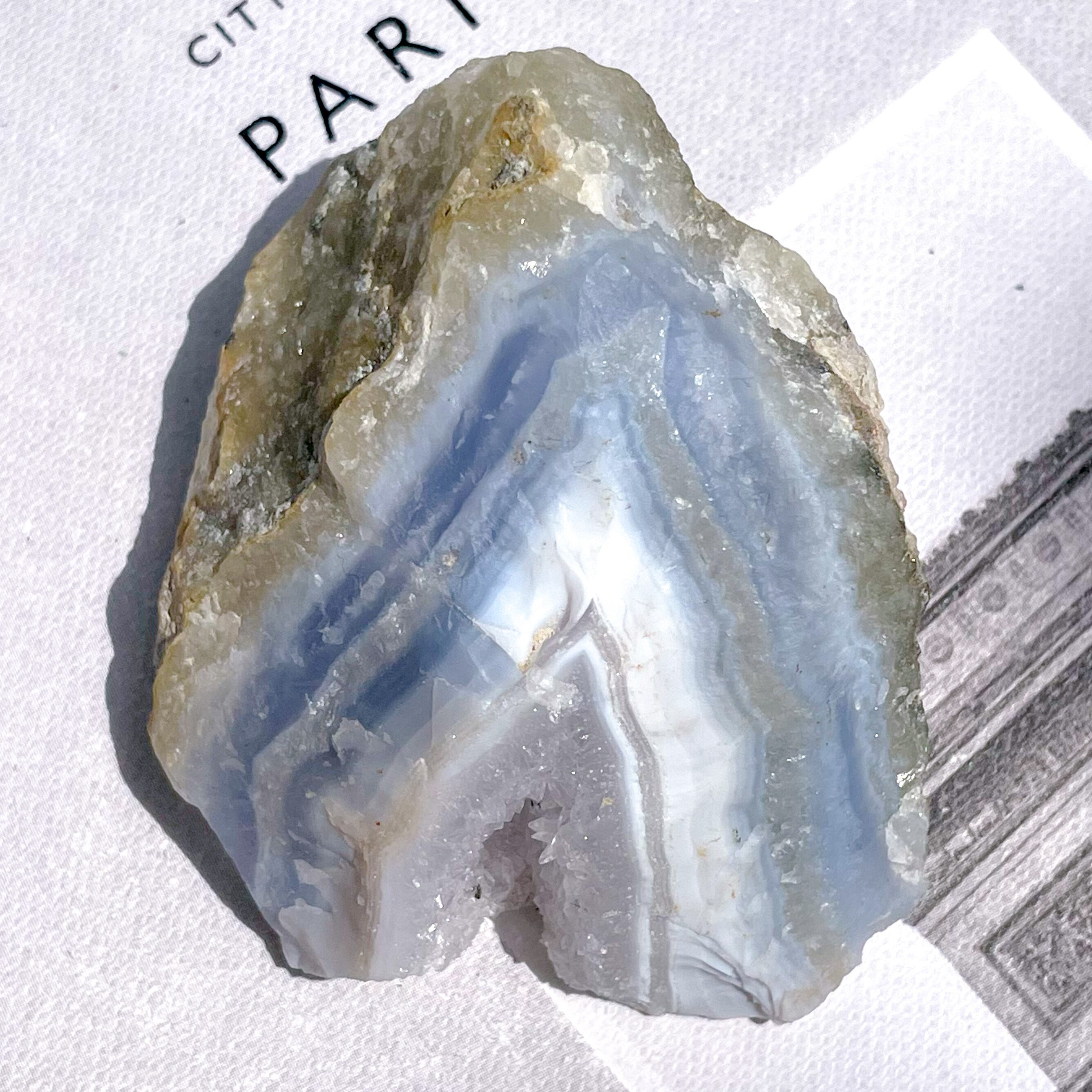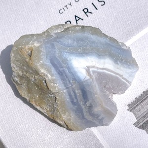 柔らかい薄群青色のグラデーション、ホワイトとの美しいバランスに見惚れるピースです。