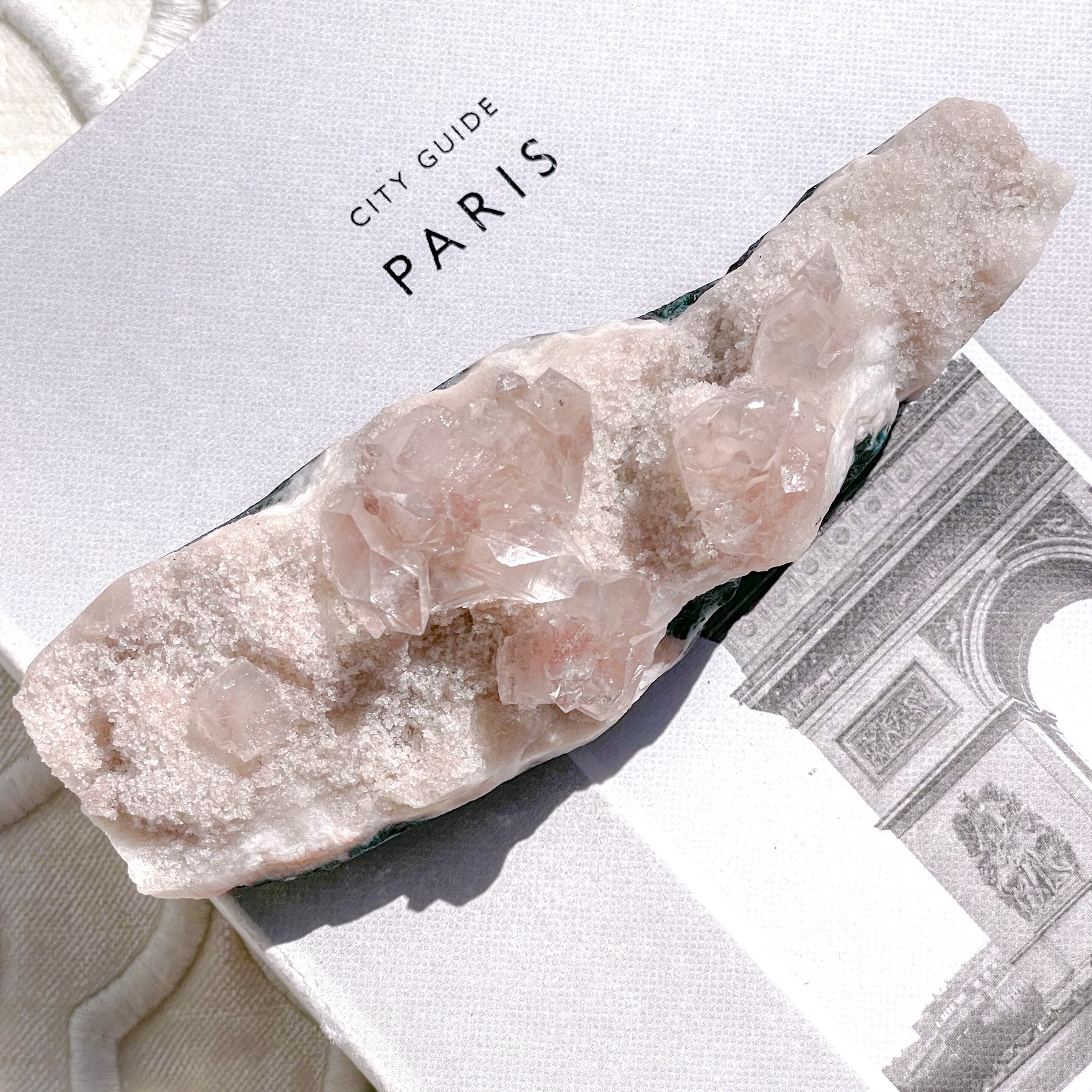 アポフィライトの中でも、ピンクカラーのものは中々市場に出てこない、希少なストーンです。今回はその中でもトップクオリティといえる、美しいクラスターに出会うことができました。