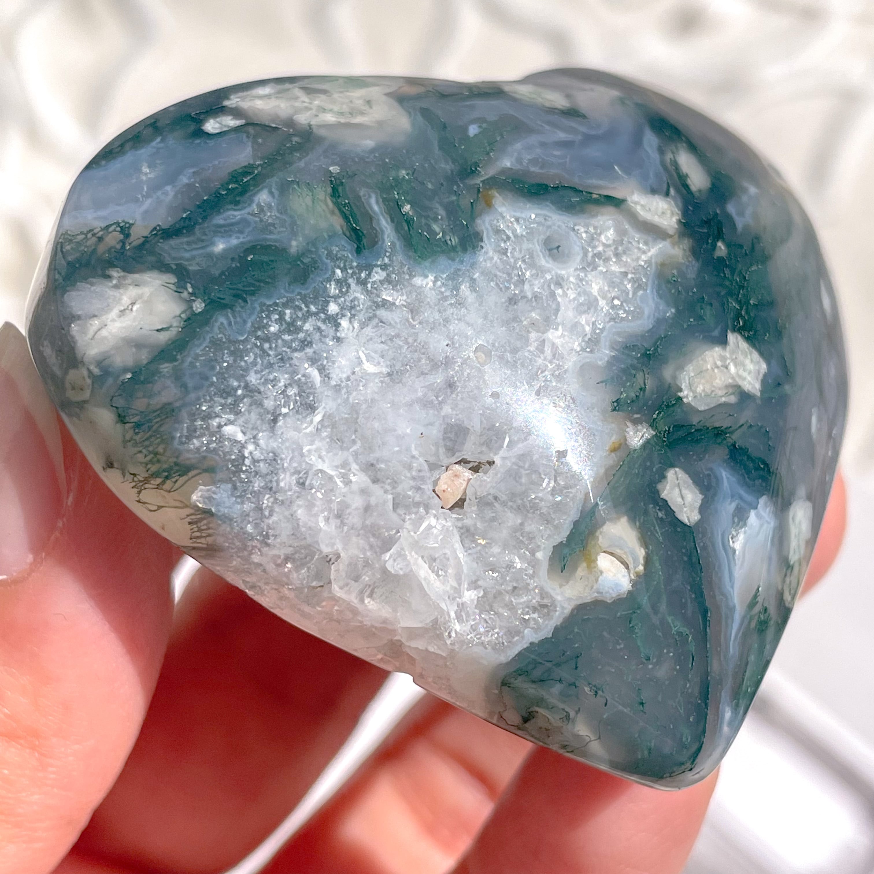 Druzy Moss Agate Heart 1 ✧ ドゥルージーモスアゲート