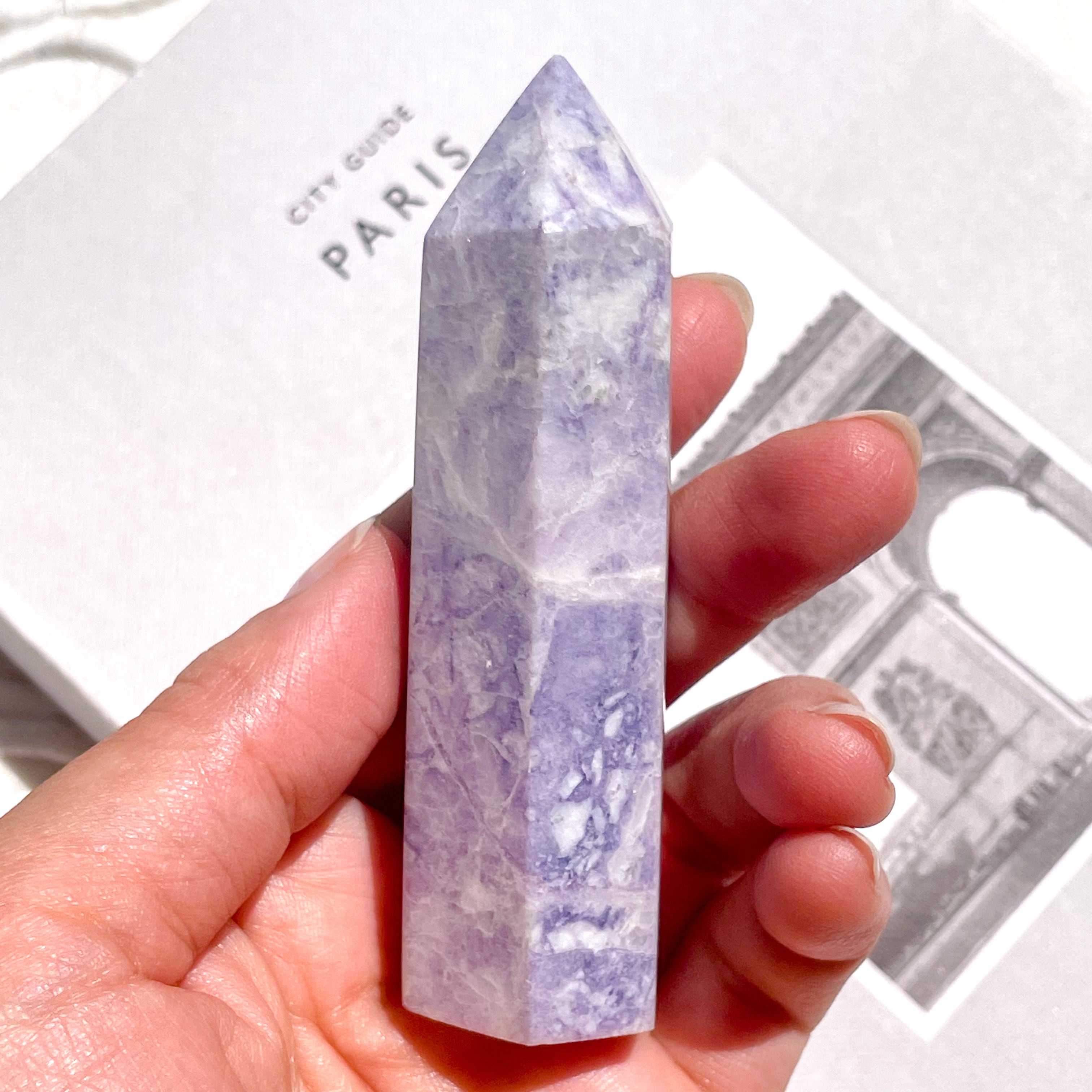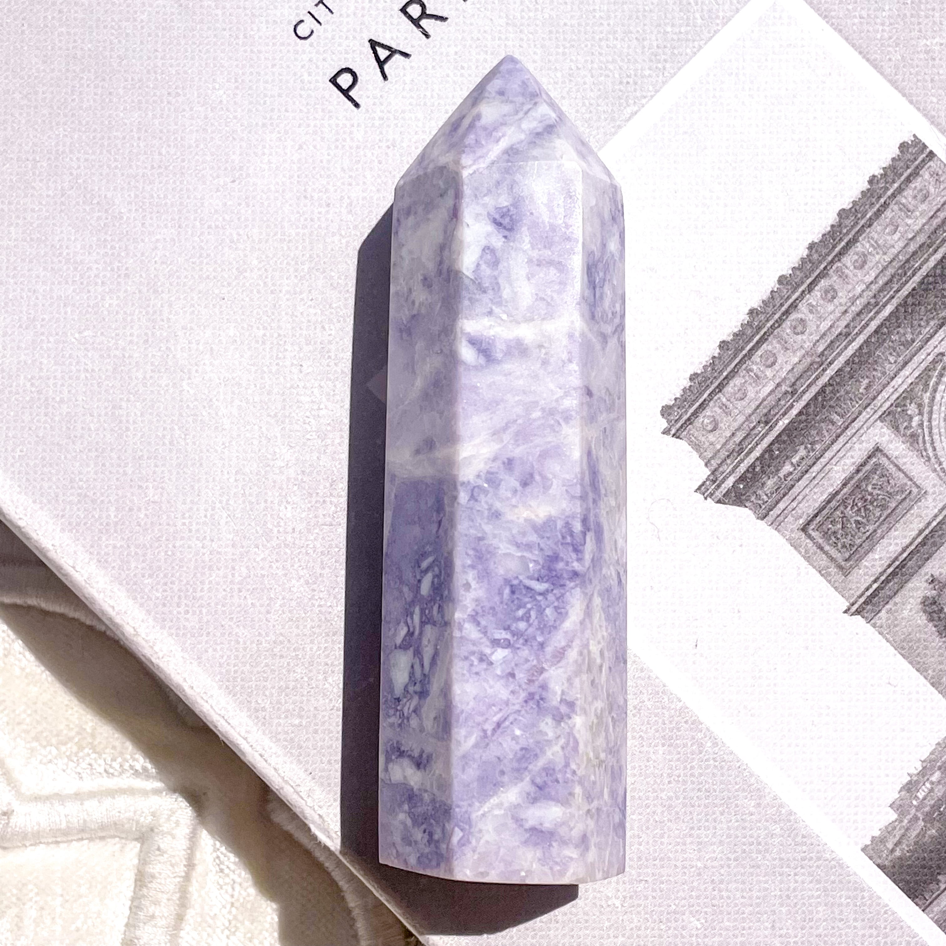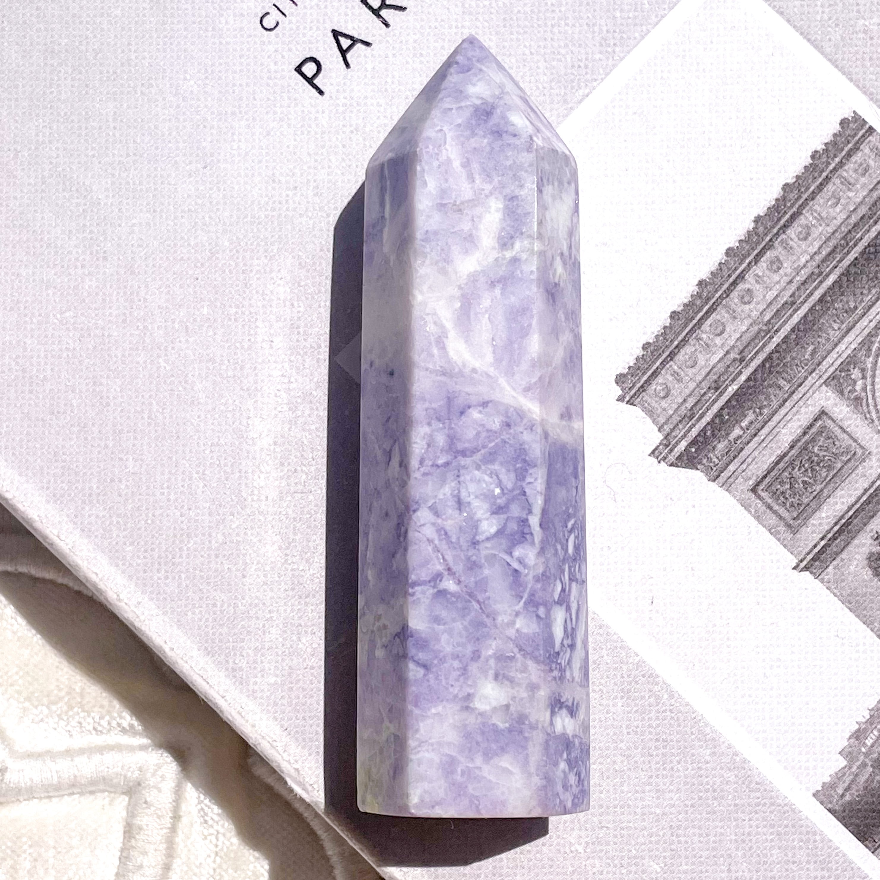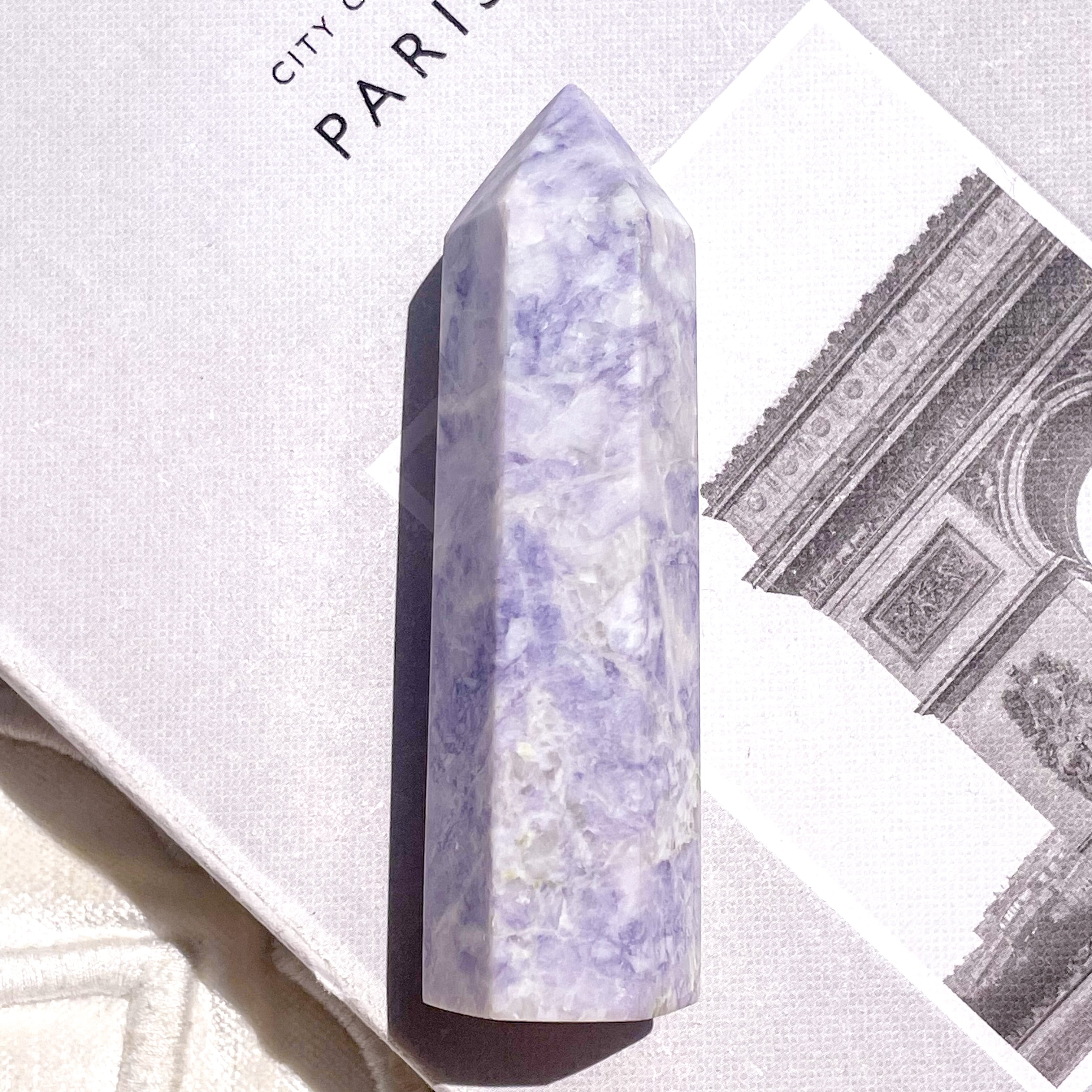 ミルキーなホワイトと淡いパープルカラーが神秘的、