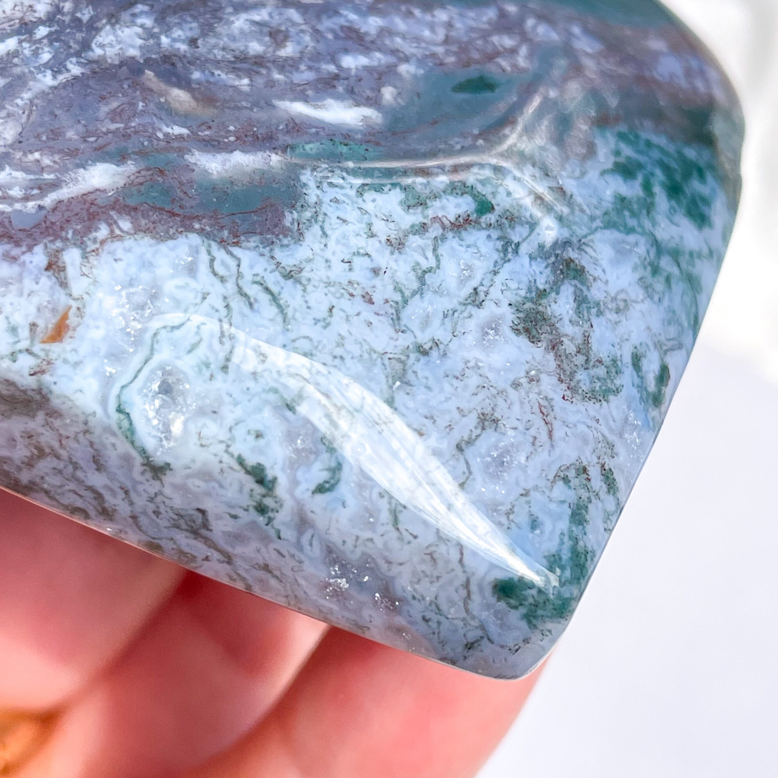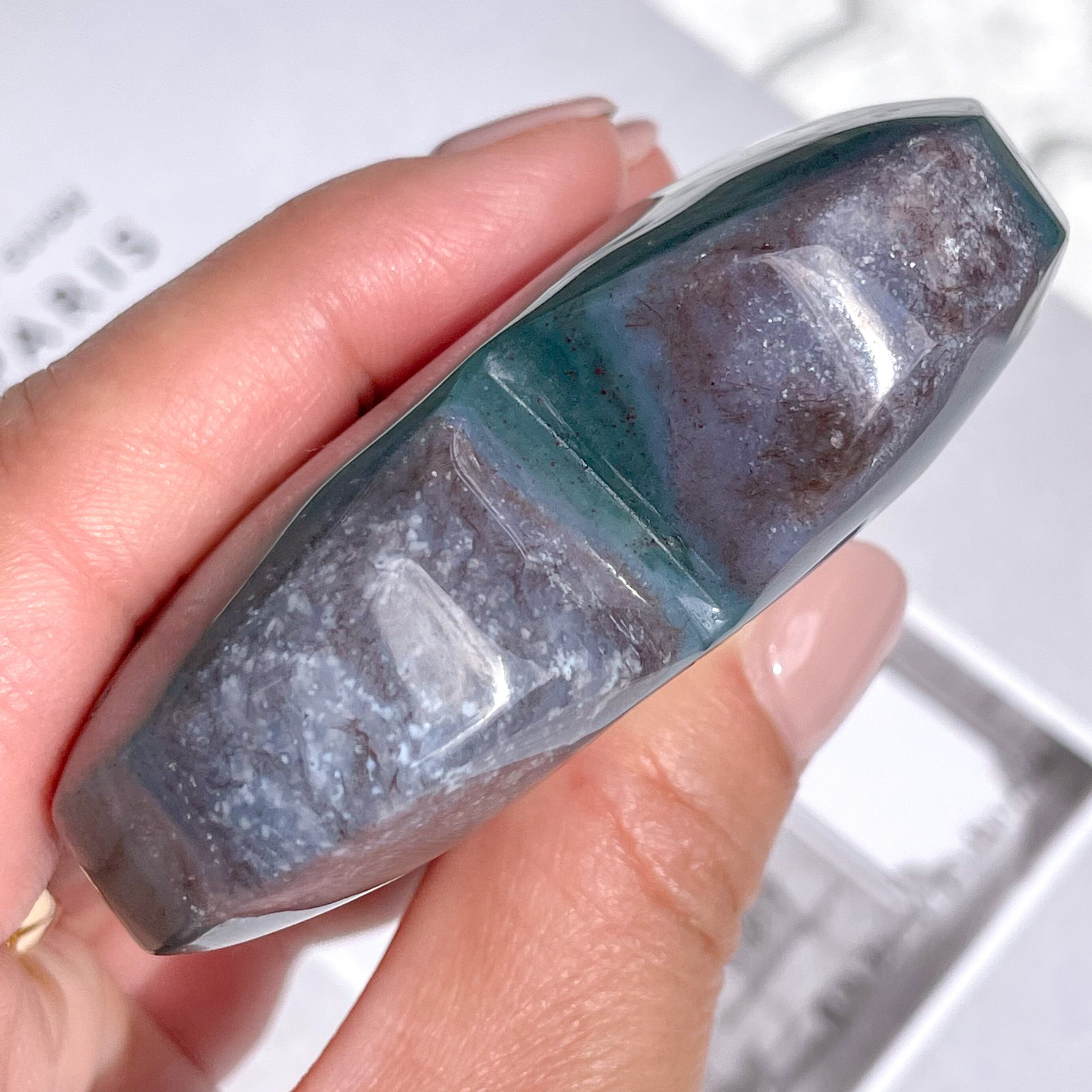 深みのあるワインレッド〜パープルカラーのオーシャンジャスパーに、こっくりとしたグリーンのモスアゲートが混ざりあう共生ストーン。奥行きのある美しいハートです♡