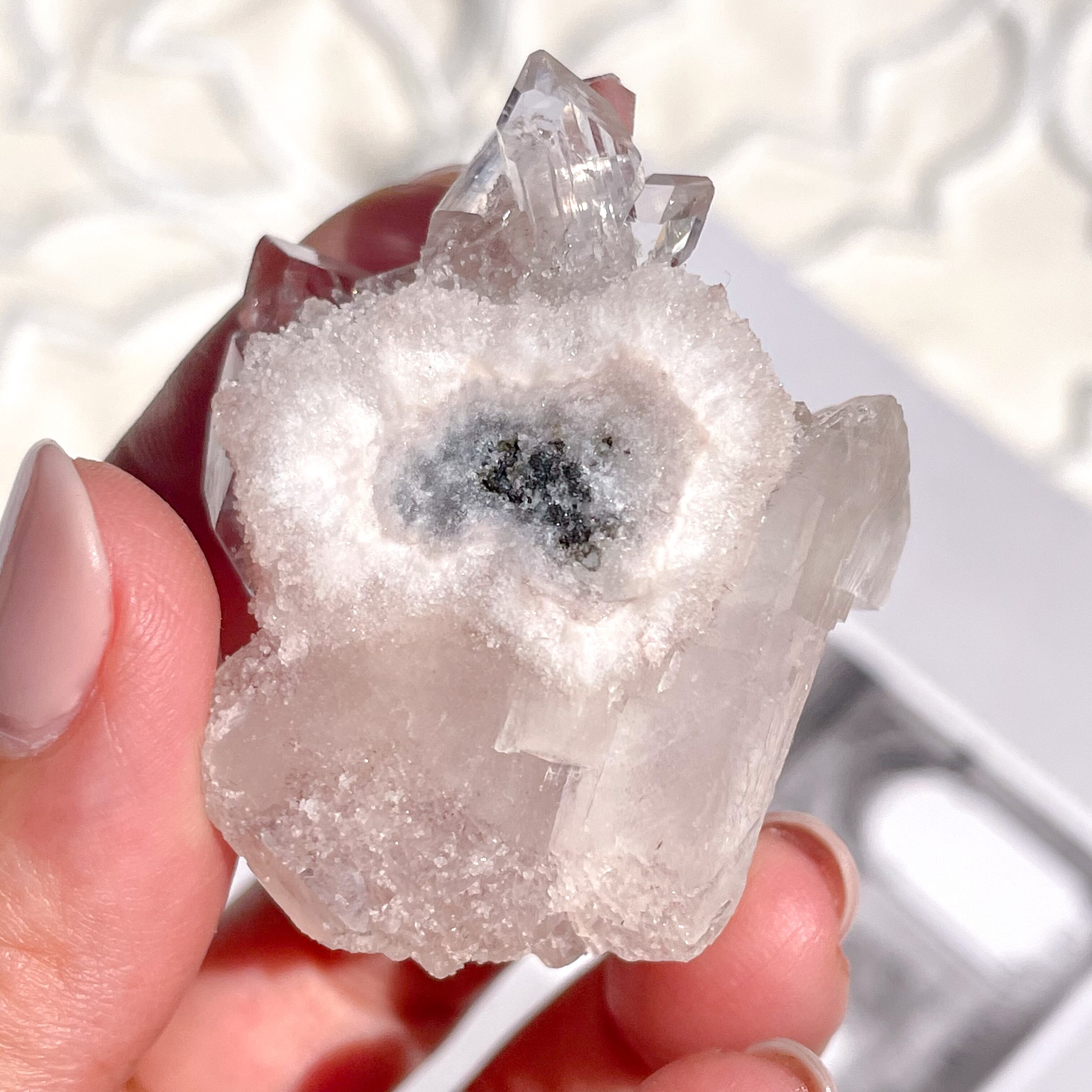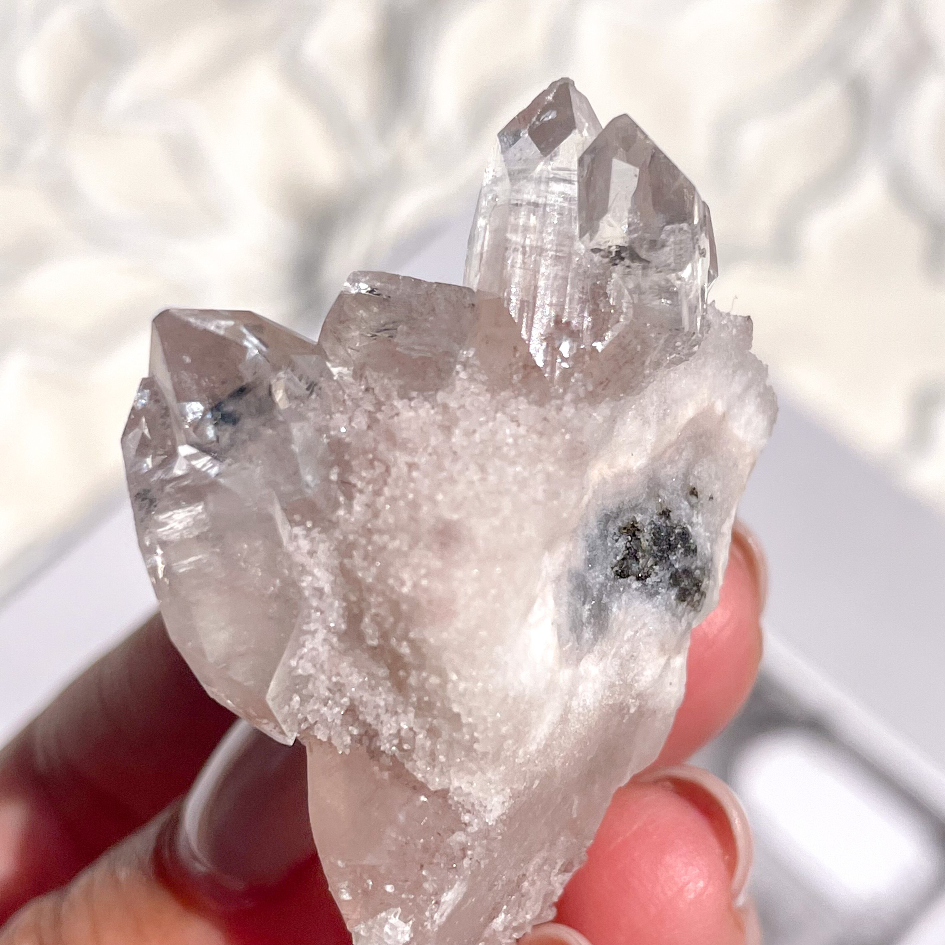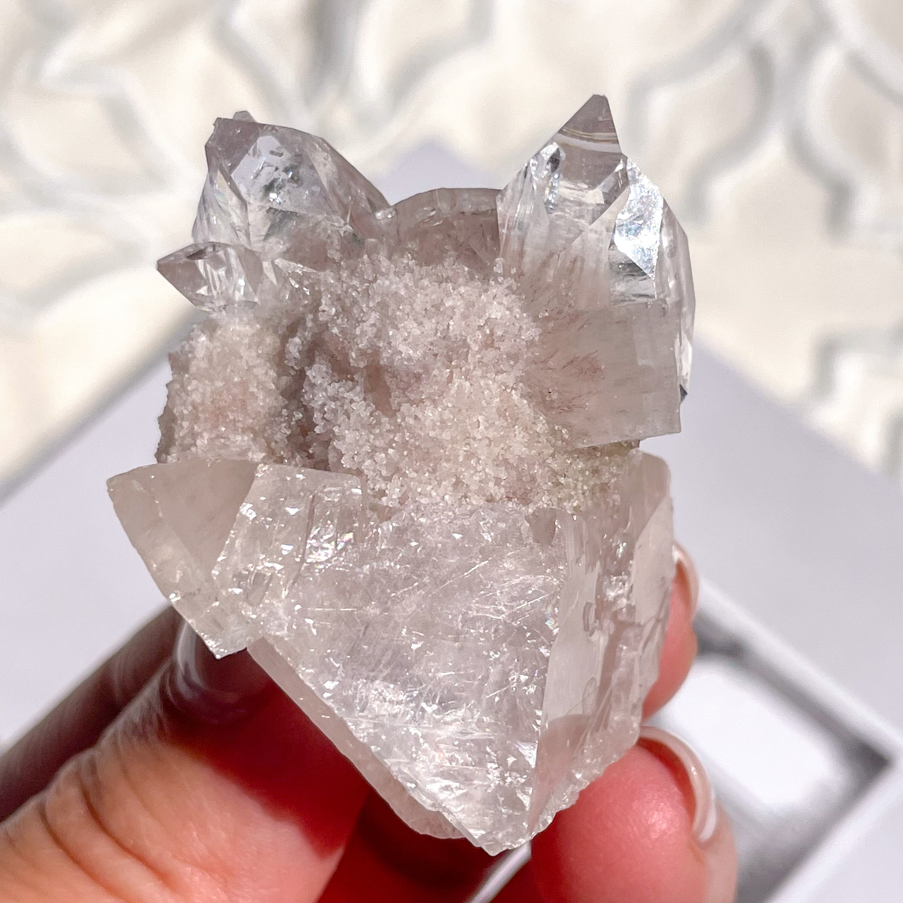 アポフィライトの中でも、ピンクカラーのものは中々市場に出てこない、希少なストーンです。今回はその中でもトップクオリティといえる、美しいクラスターに出会うことができました。