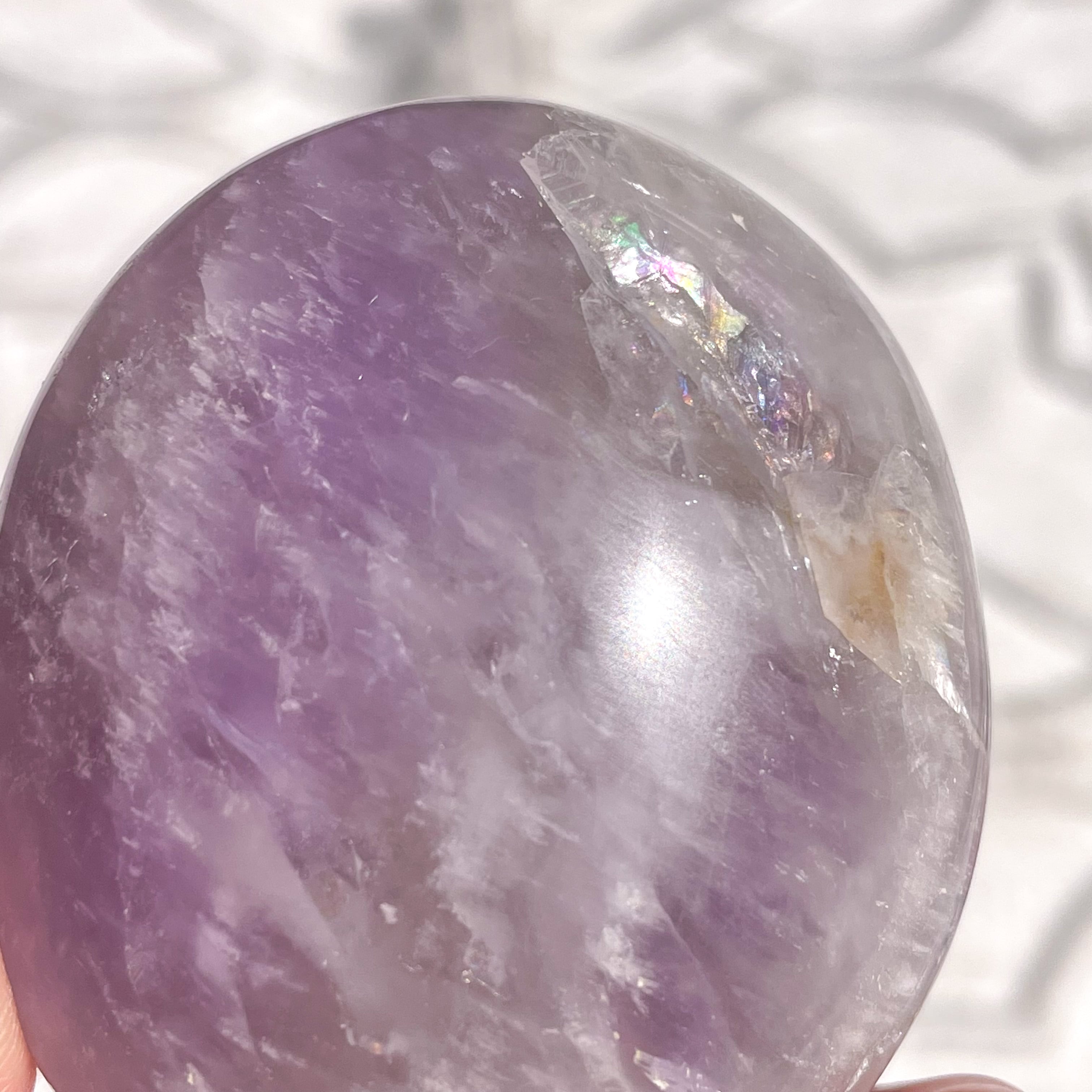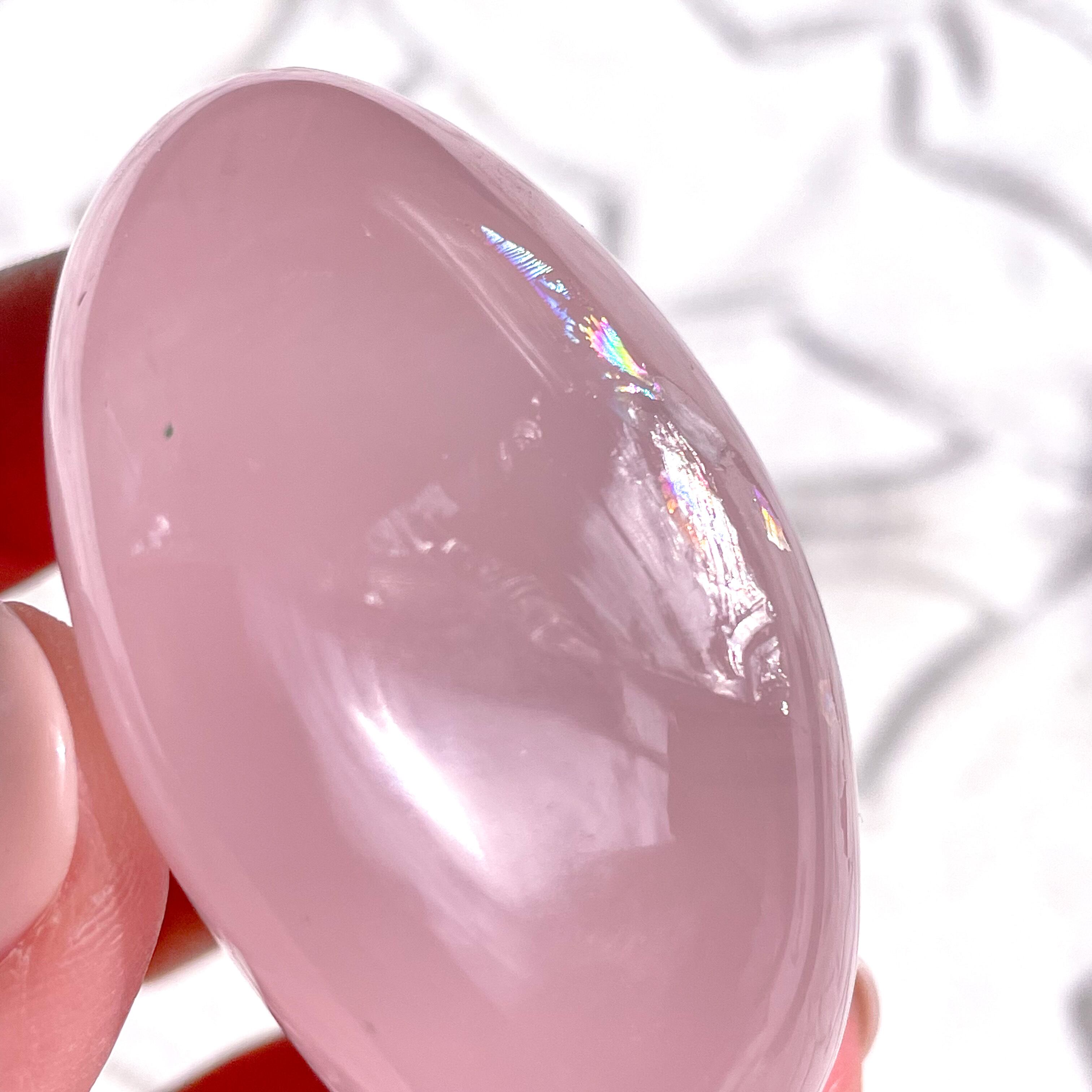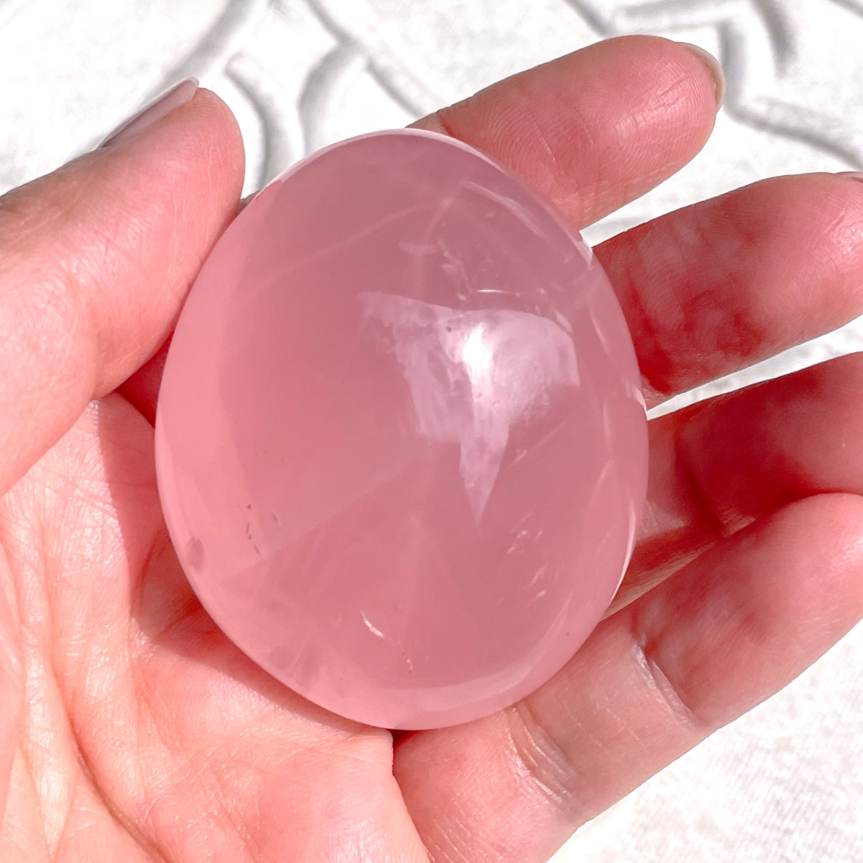日差しを浴びて、美しい6条のスターが2箇所現れる美しいローズクォーツのパームストーンを、ぜひ堪能していただきたいです。