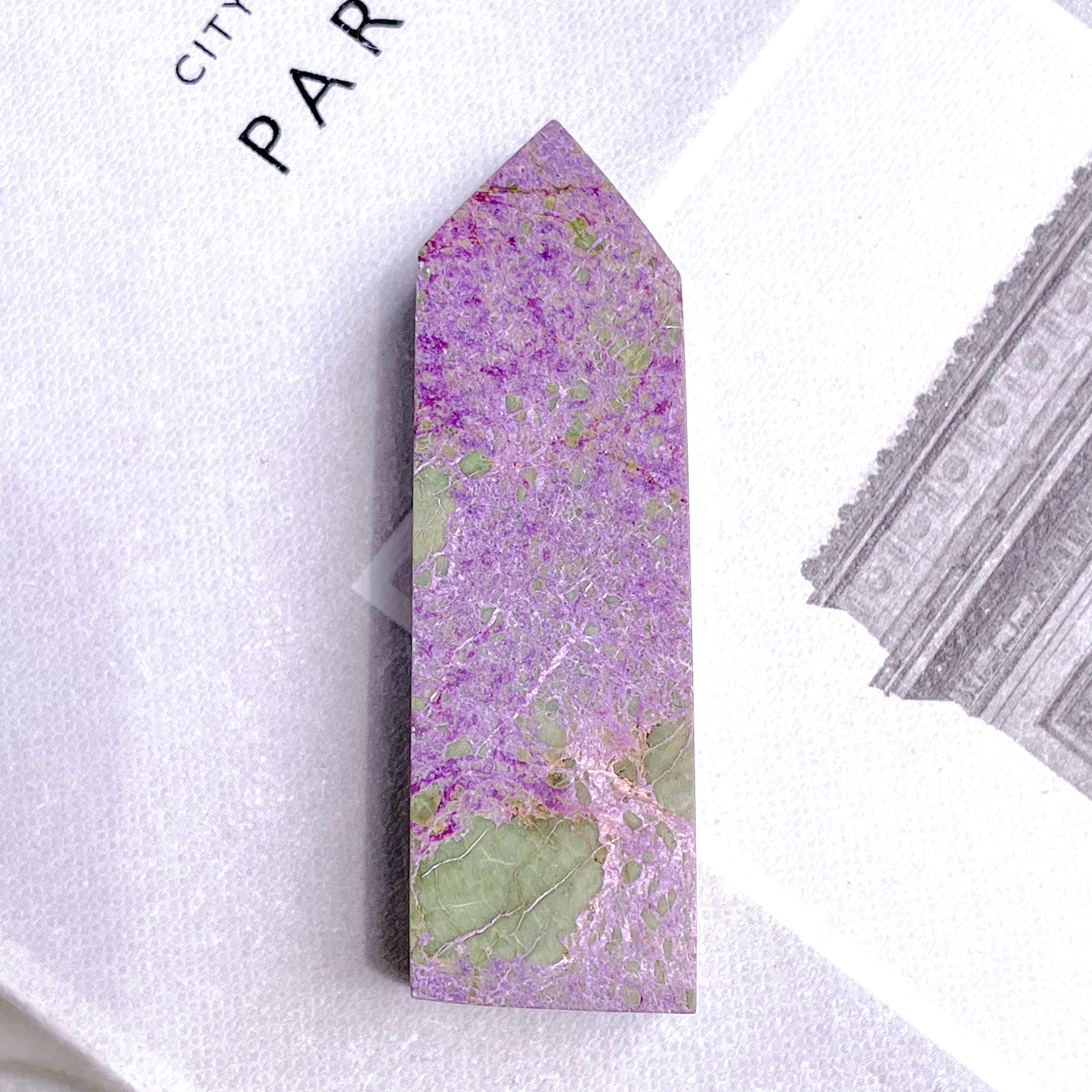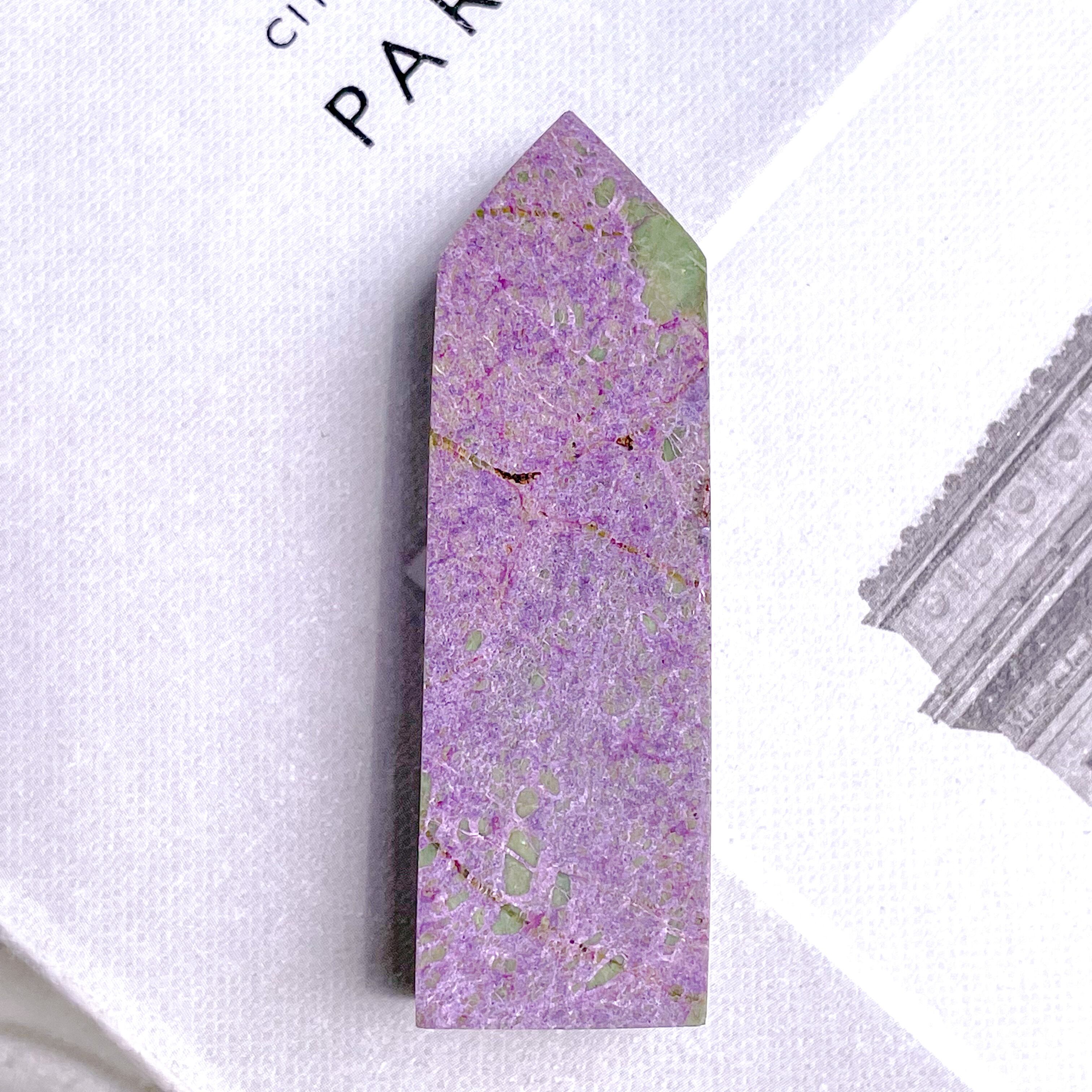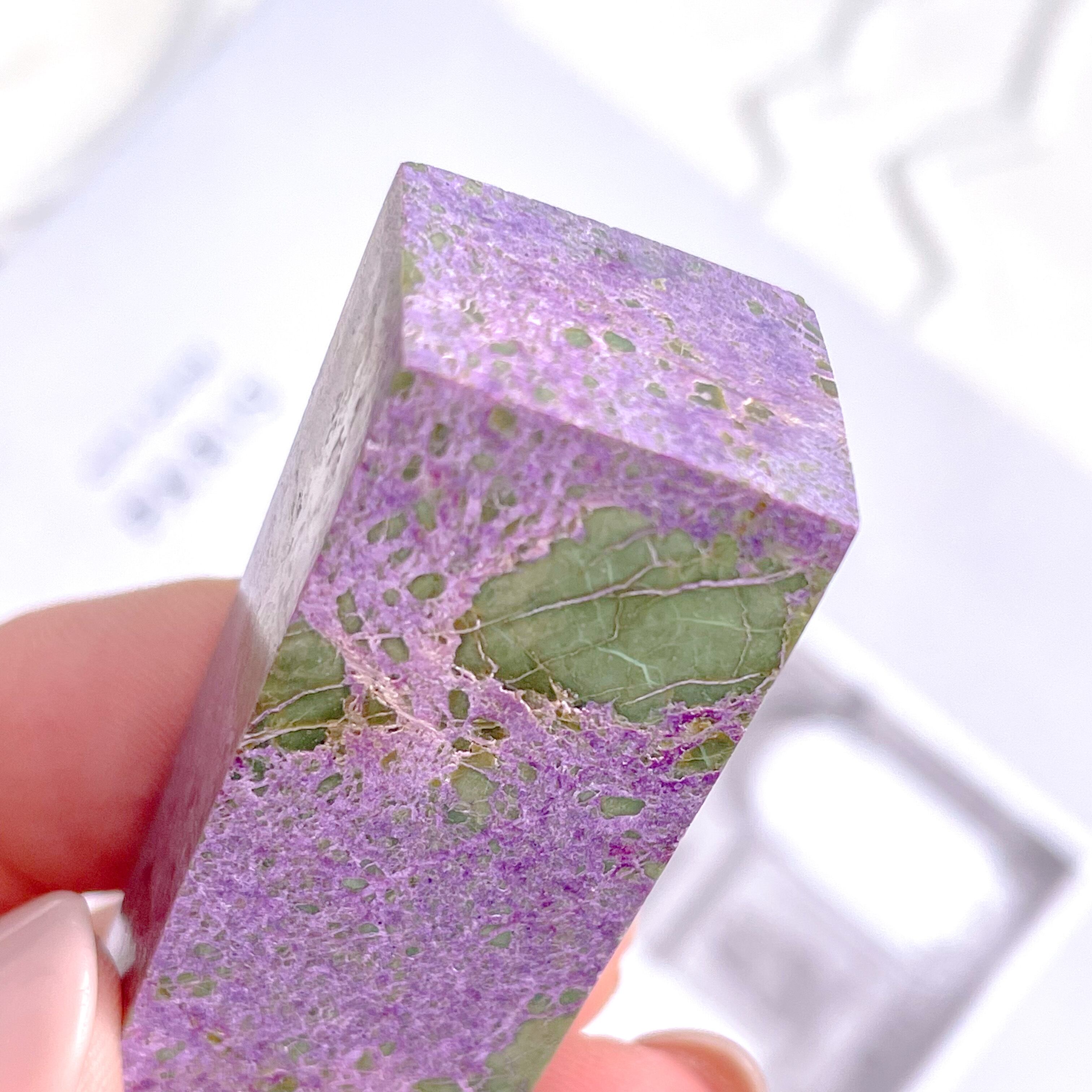 鮮やかなパープルとピスタチオカラーの絶妙なコントラストがクセになる、あまりお見かけしないストーン。