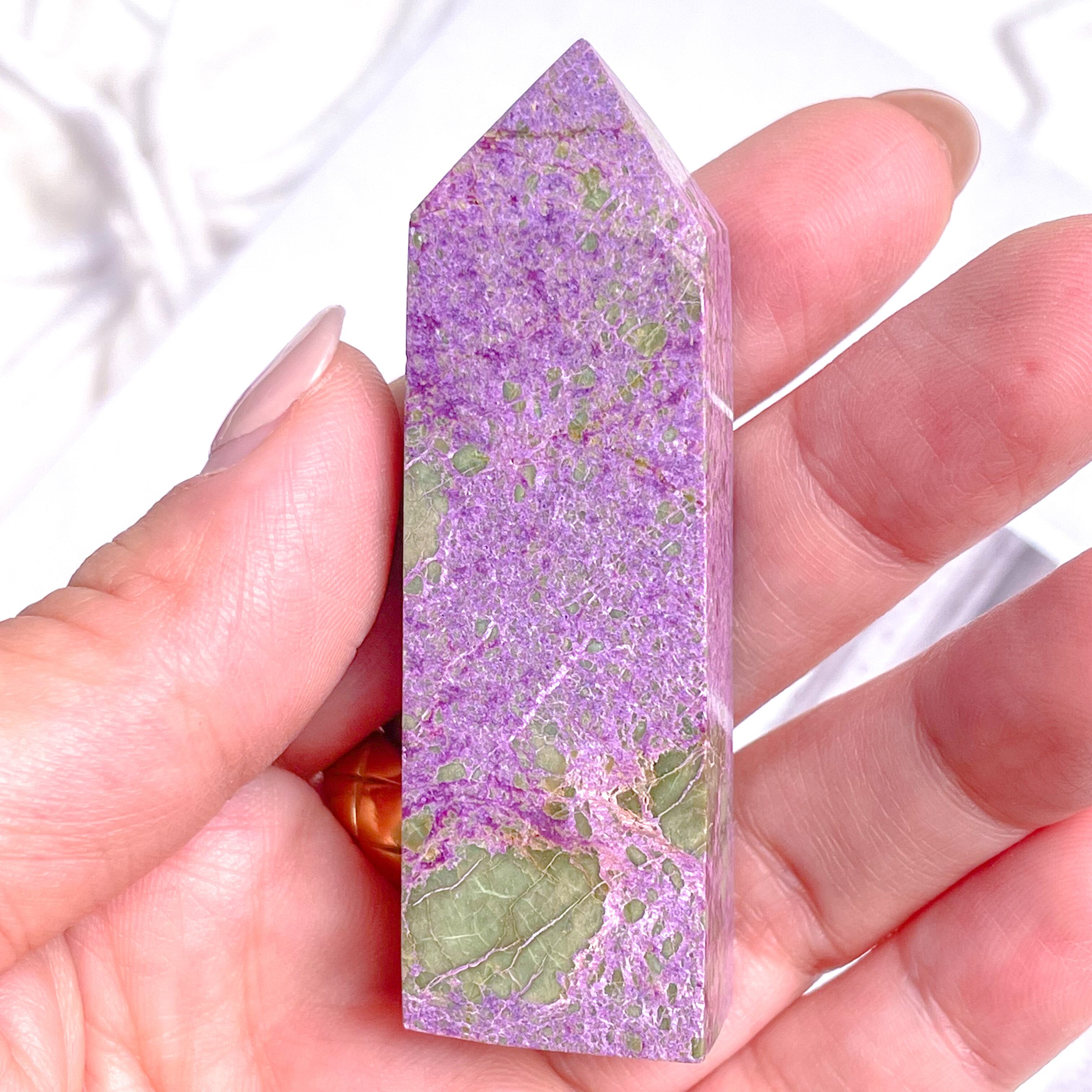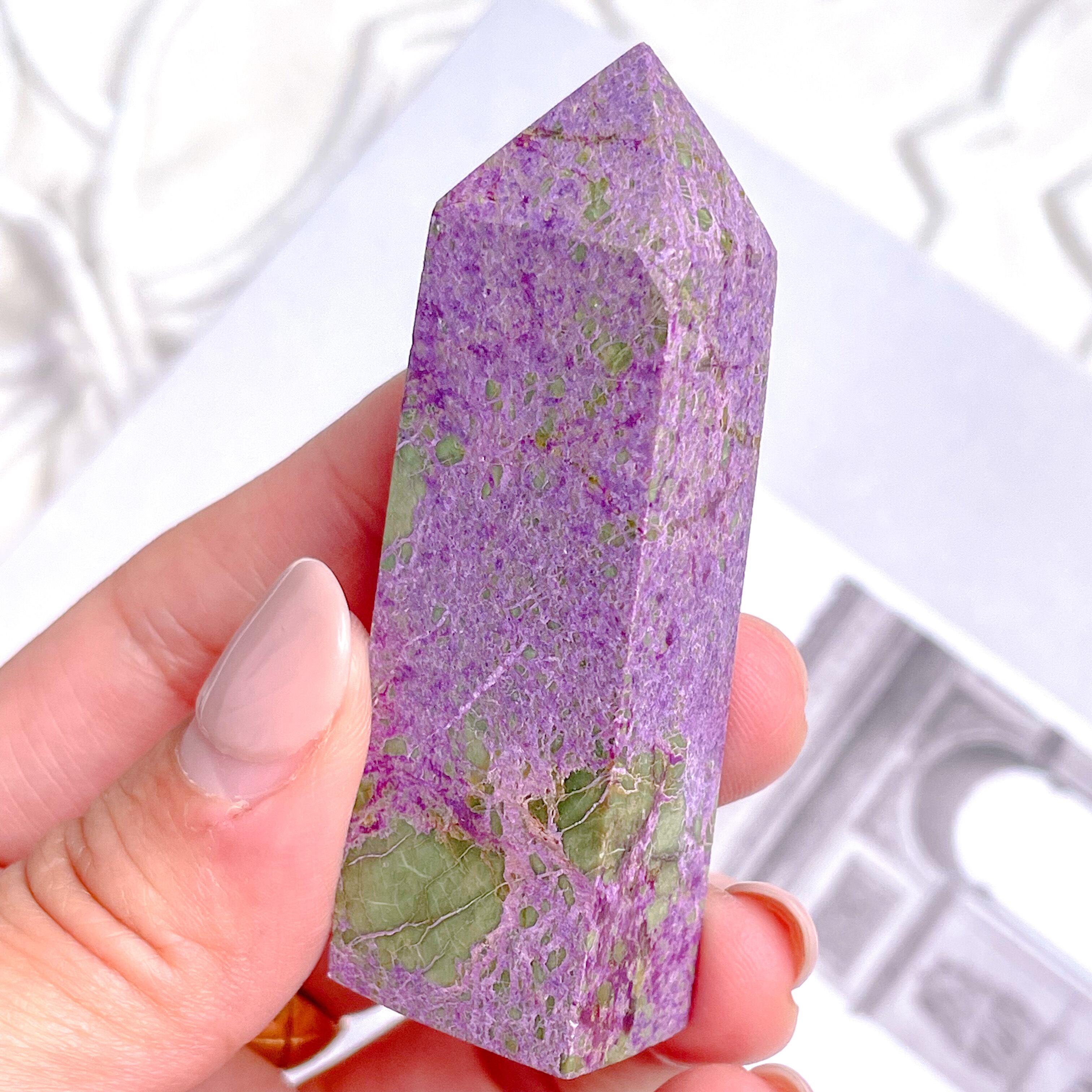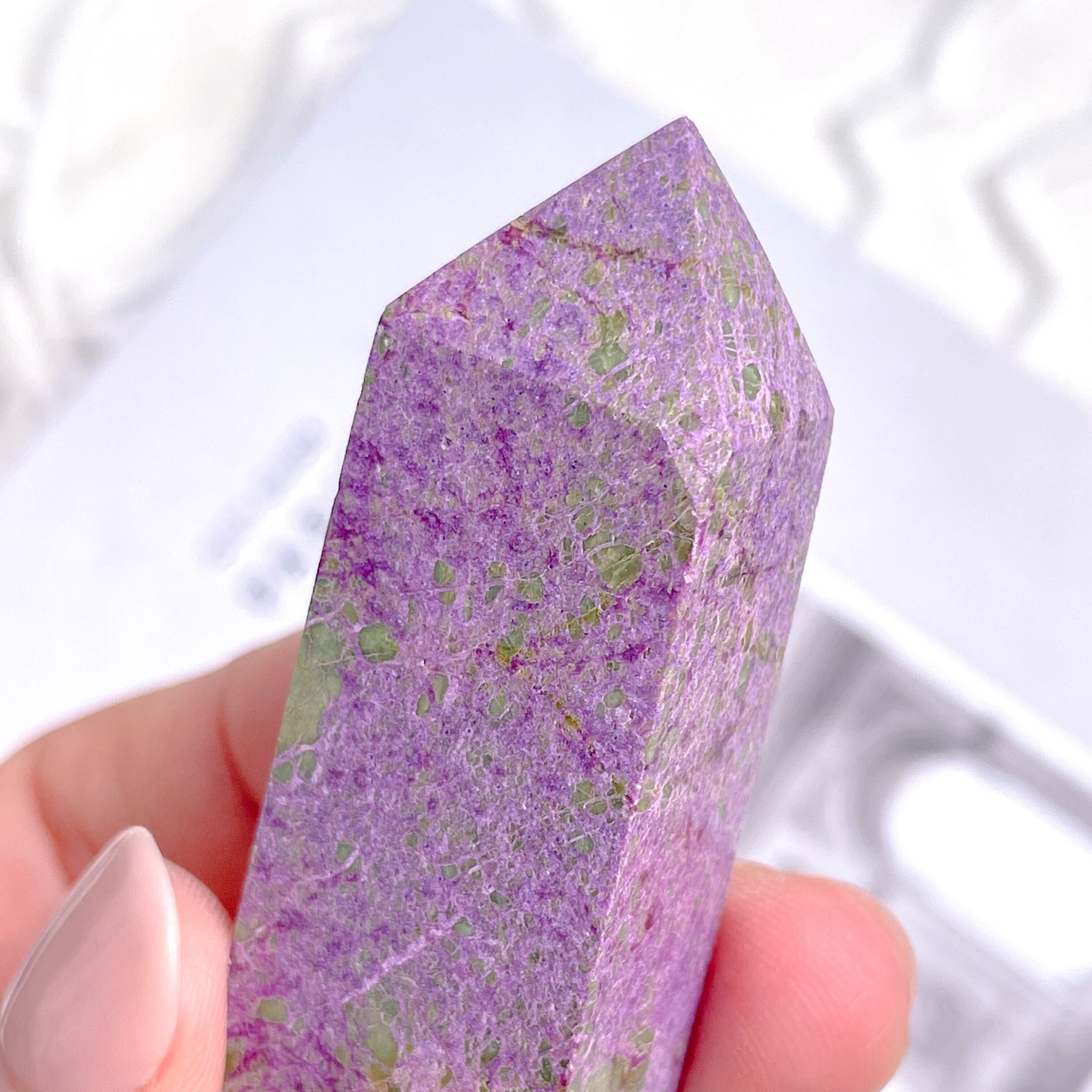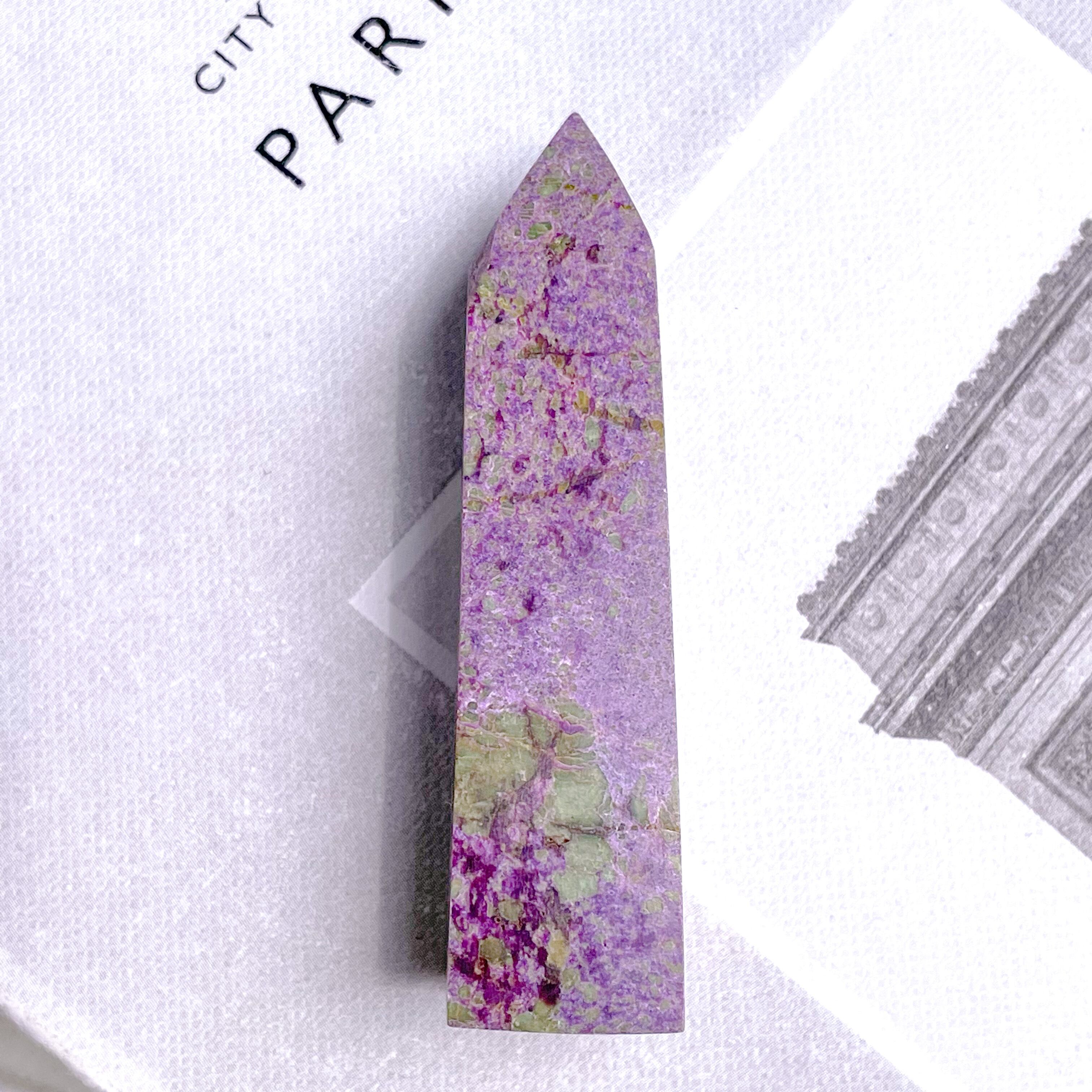 鮮やかなパープルとピスタチオカラーの絶妙なコントラストがクセになる、あまりお見かけしないストーン。
