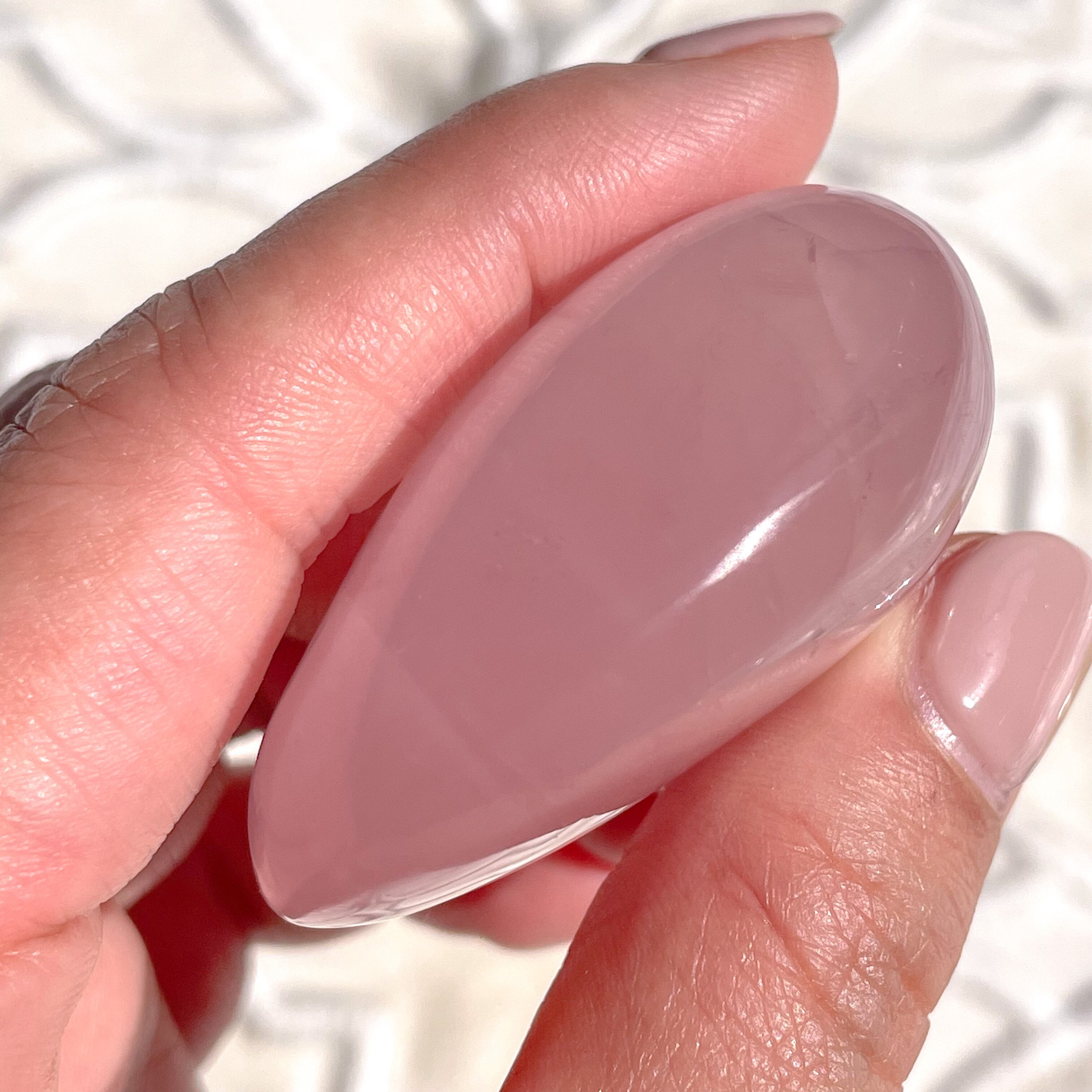 日差しを浴びて、美しい6条のスターが2箇所現れる美しいローズクォーツのパームストーンを、ぜひ堪能していただきたいです。