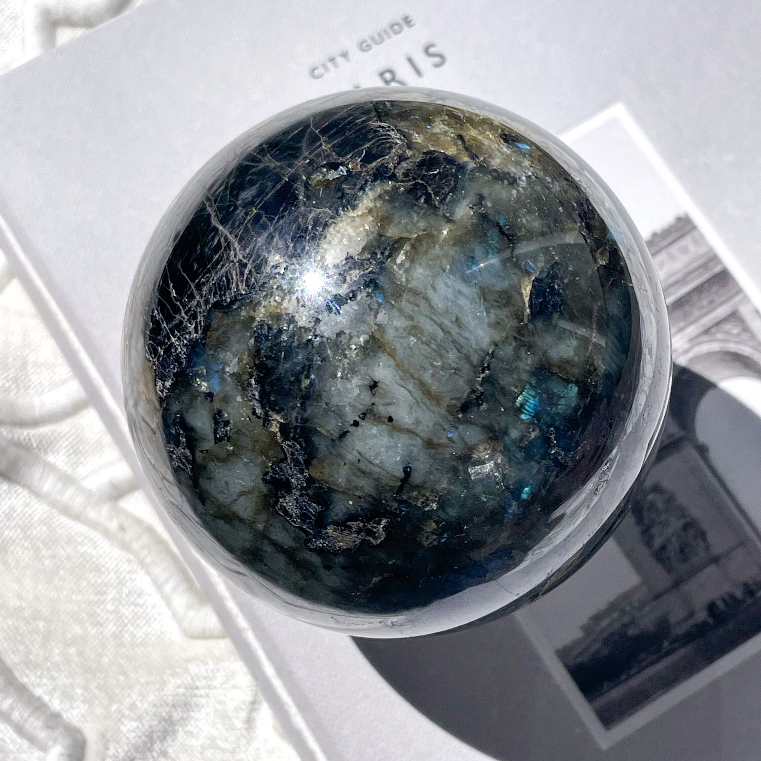ダークグレイのスフィアに、鮮やかなブルー。