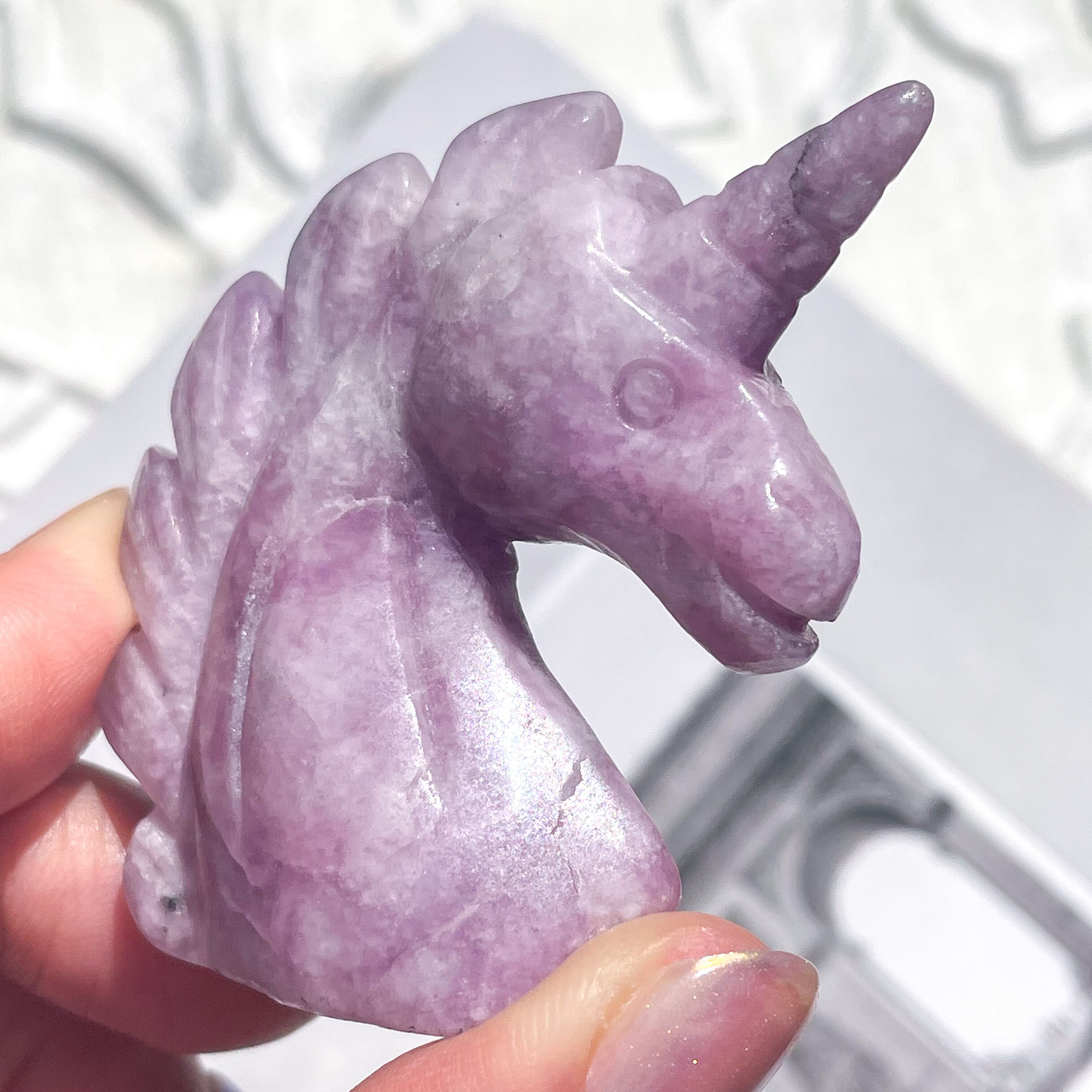 淡いパープルが可愛らしくもミステリアスな、レピドライトのユニコーン。自立するタイプです。