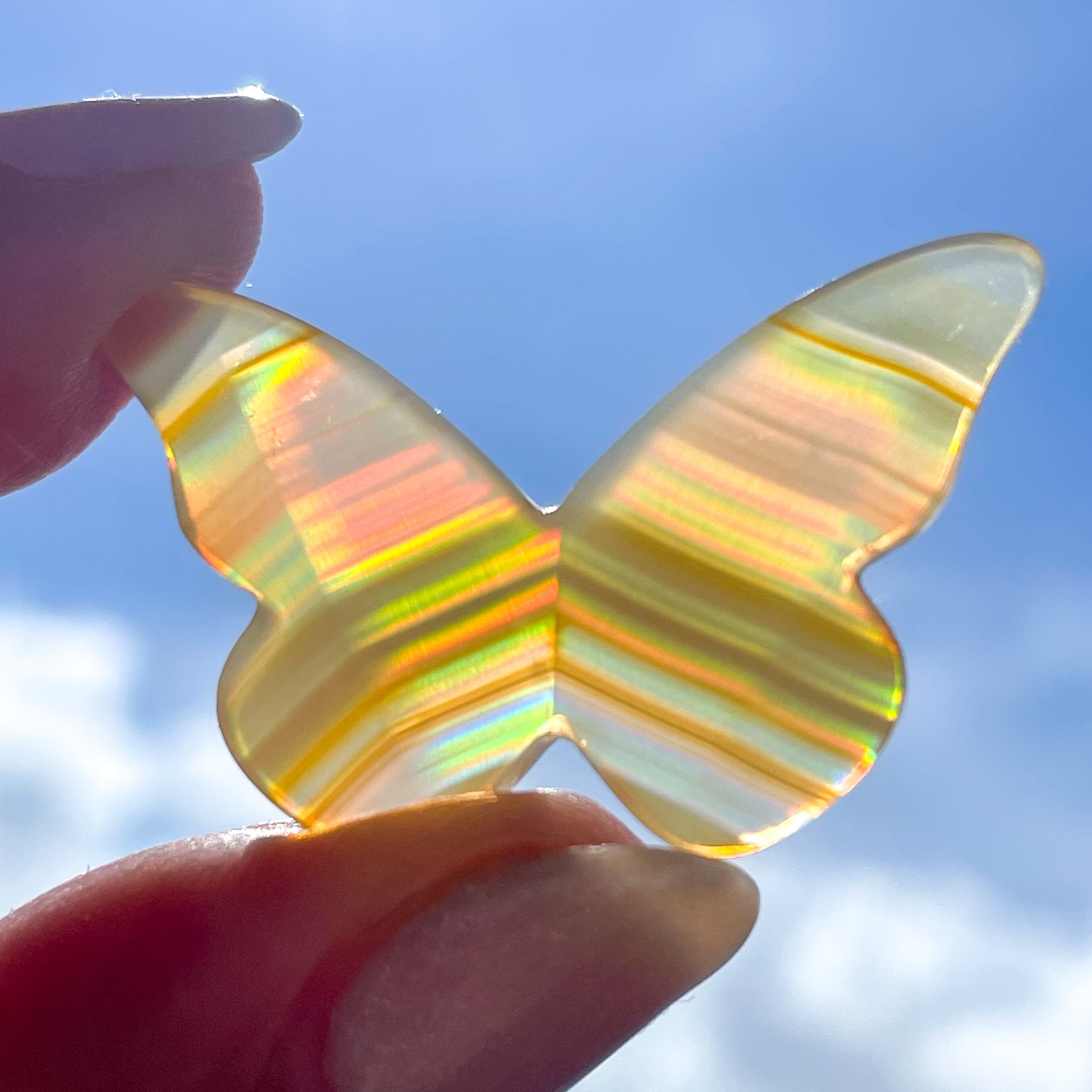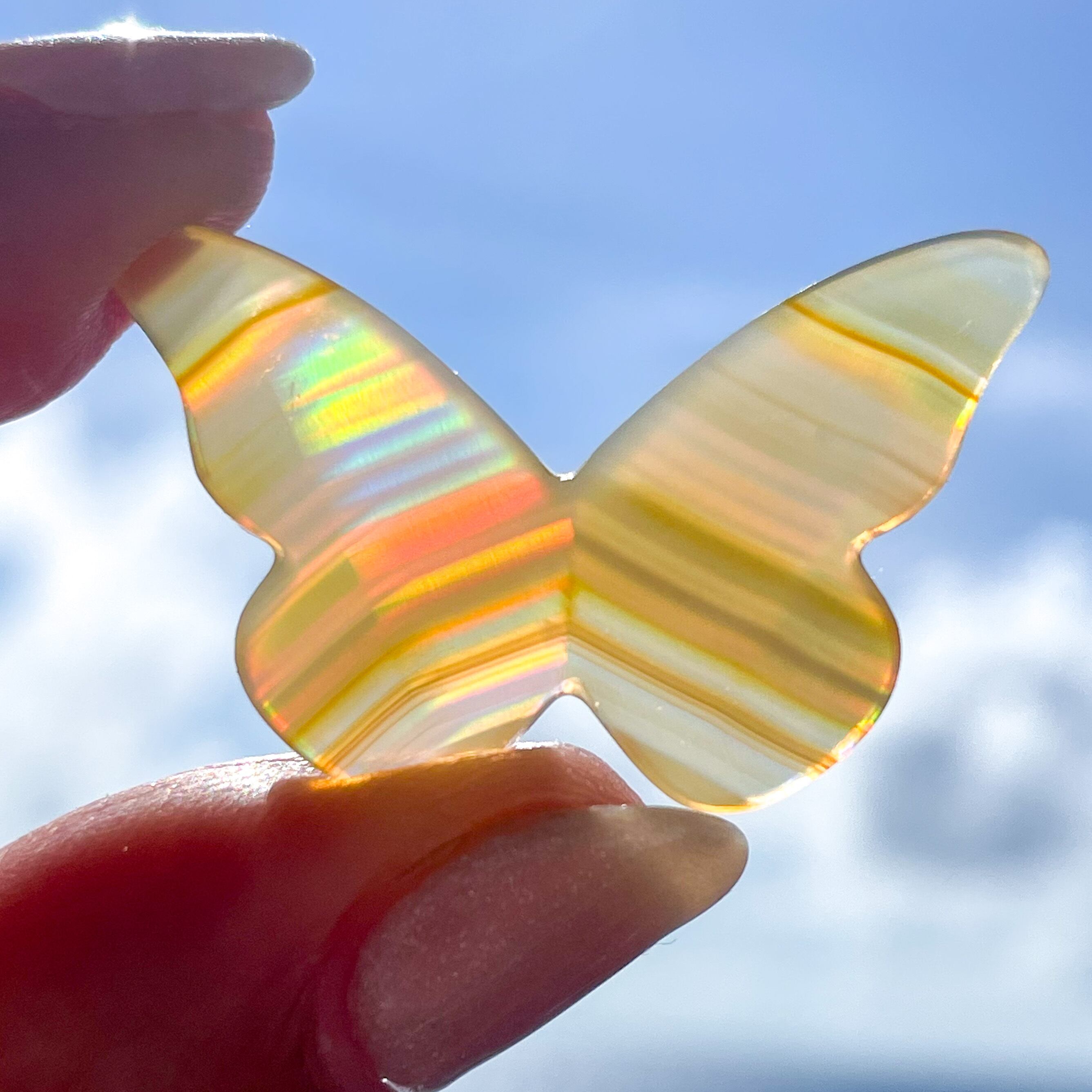 幻のアゲートと言われる、イリスアゲートの蝶々です。