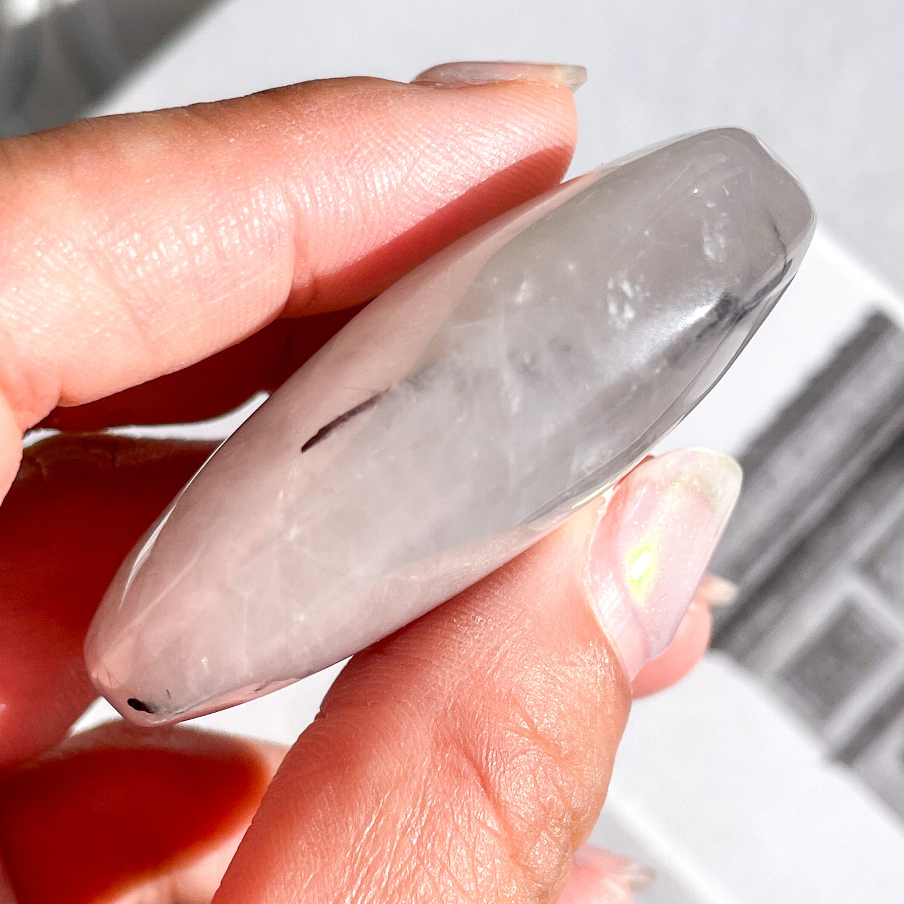 手にしっくりと馴染む、ブラックトルマリンinクォーツのパームストーンです。