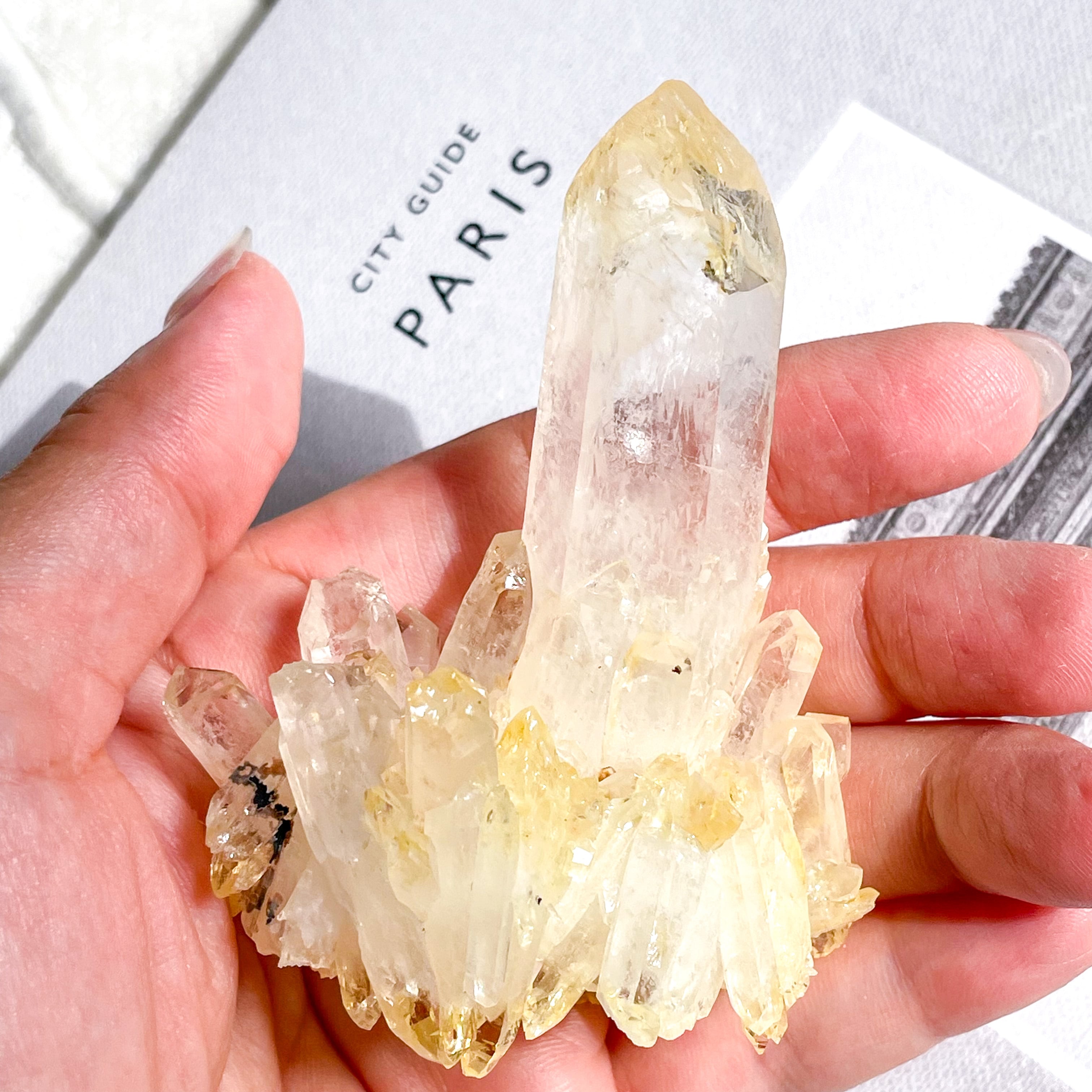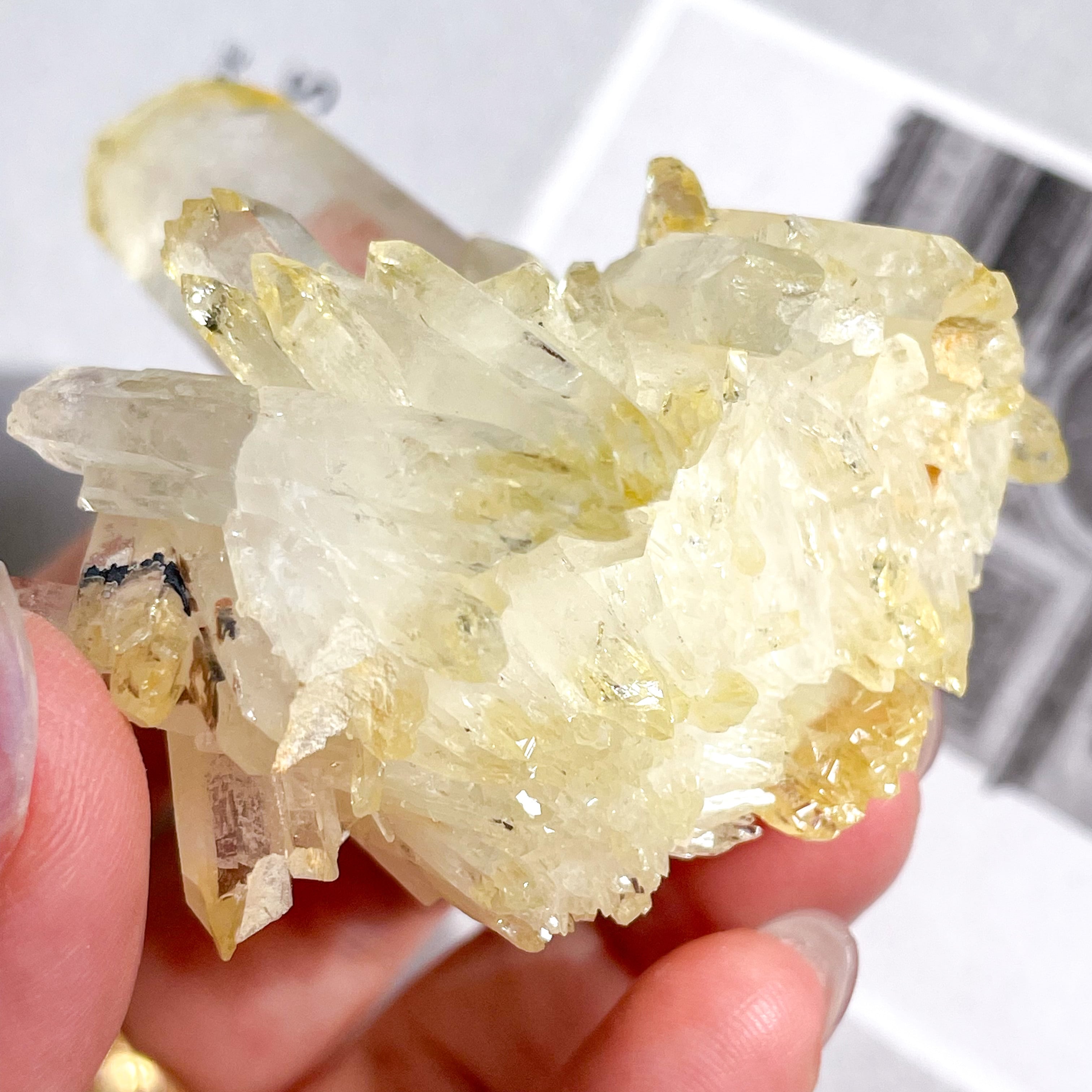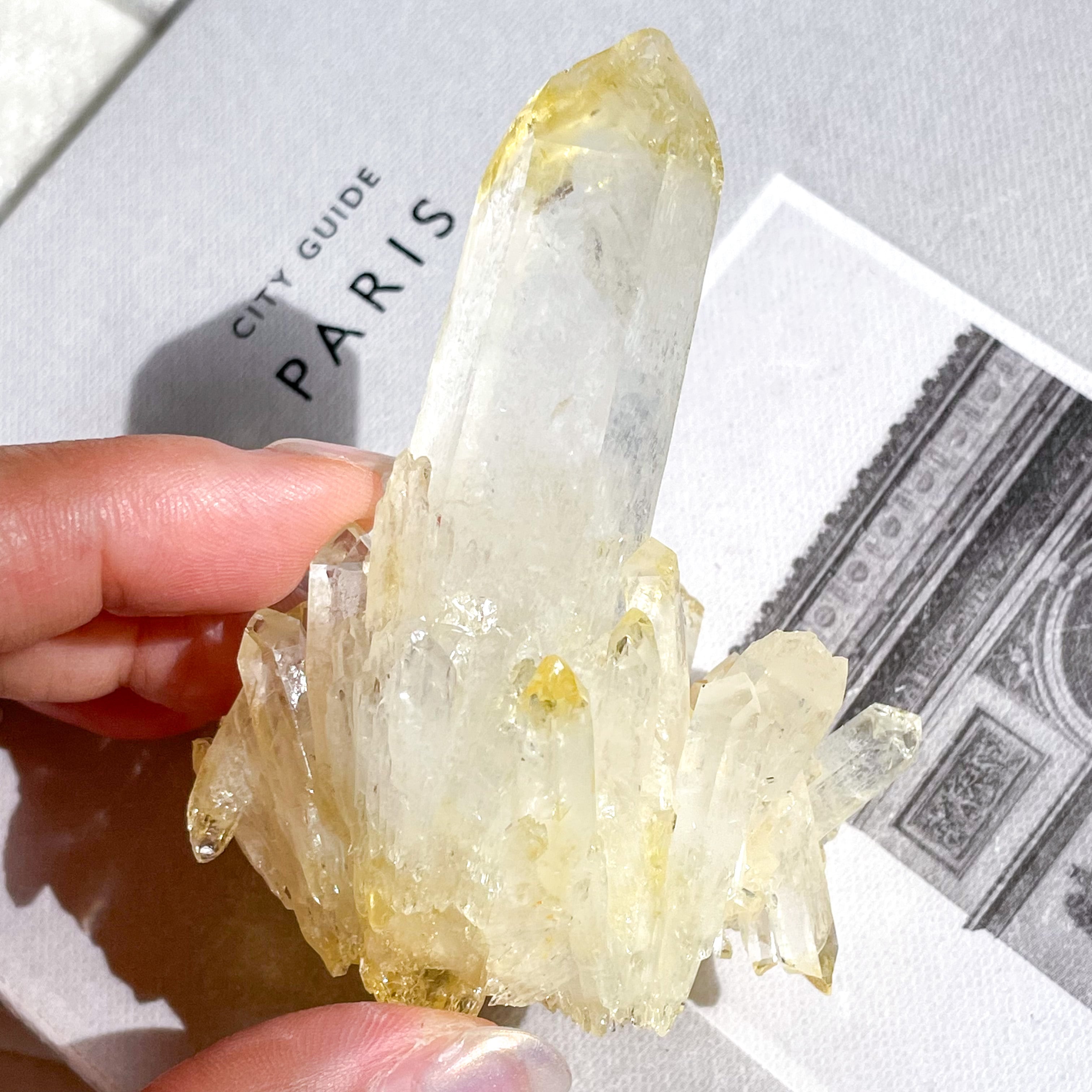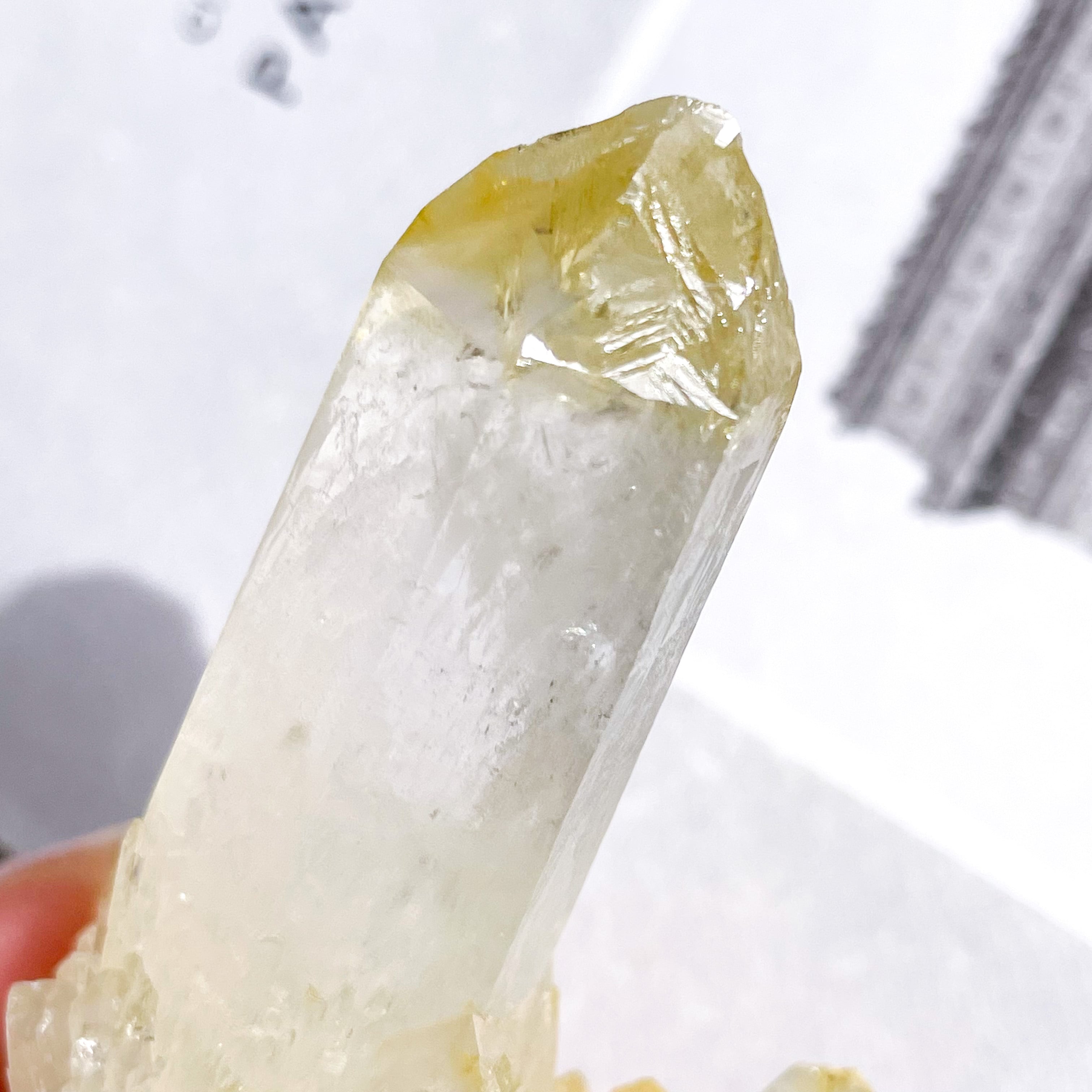 タブルポイント(両剣)のシトリン結晶がクラスター状になった珍しい天然石。