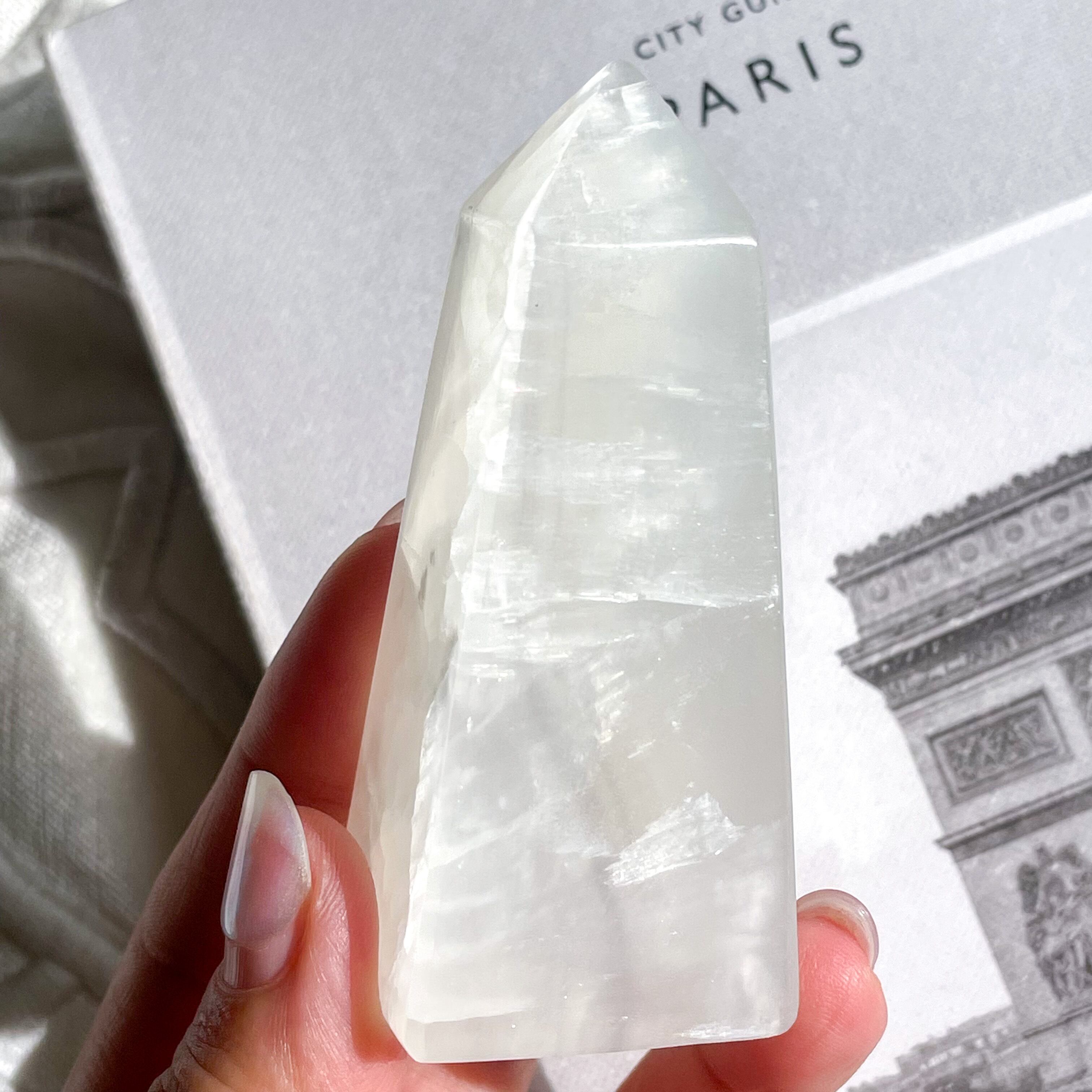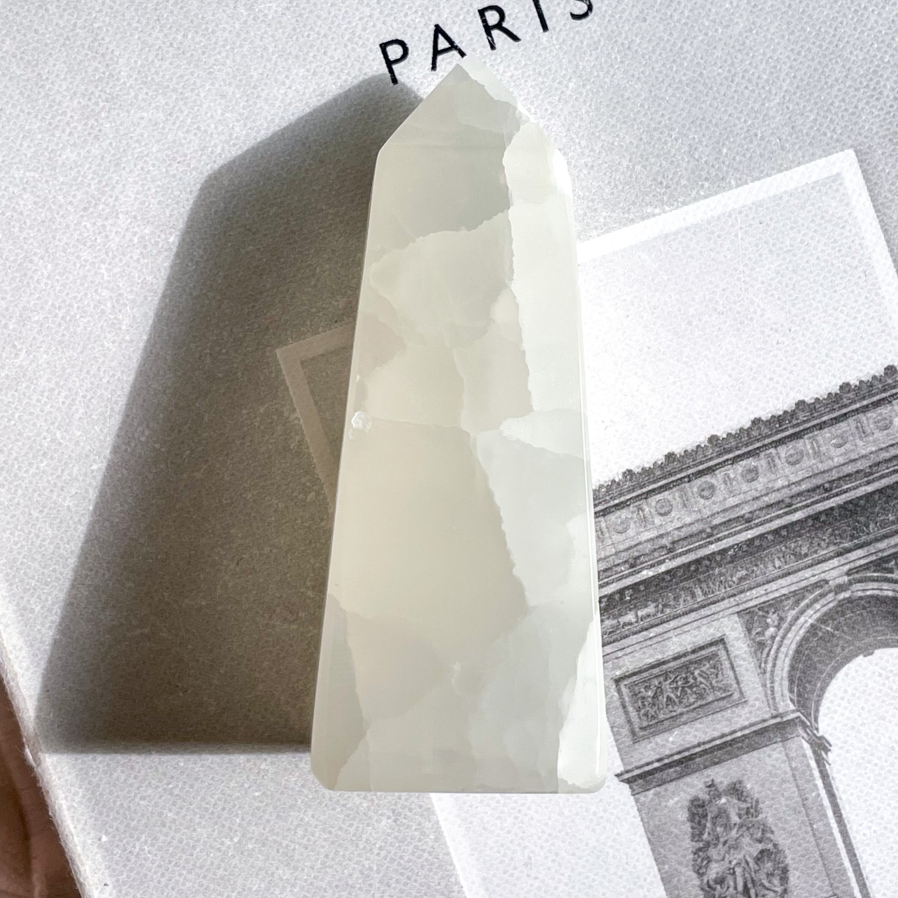 太陽光に照らすと優しく光を透過し、陽だまりのようなあたたかみがあり、こもれびの模様が浮かび上がる美しいストーンです。