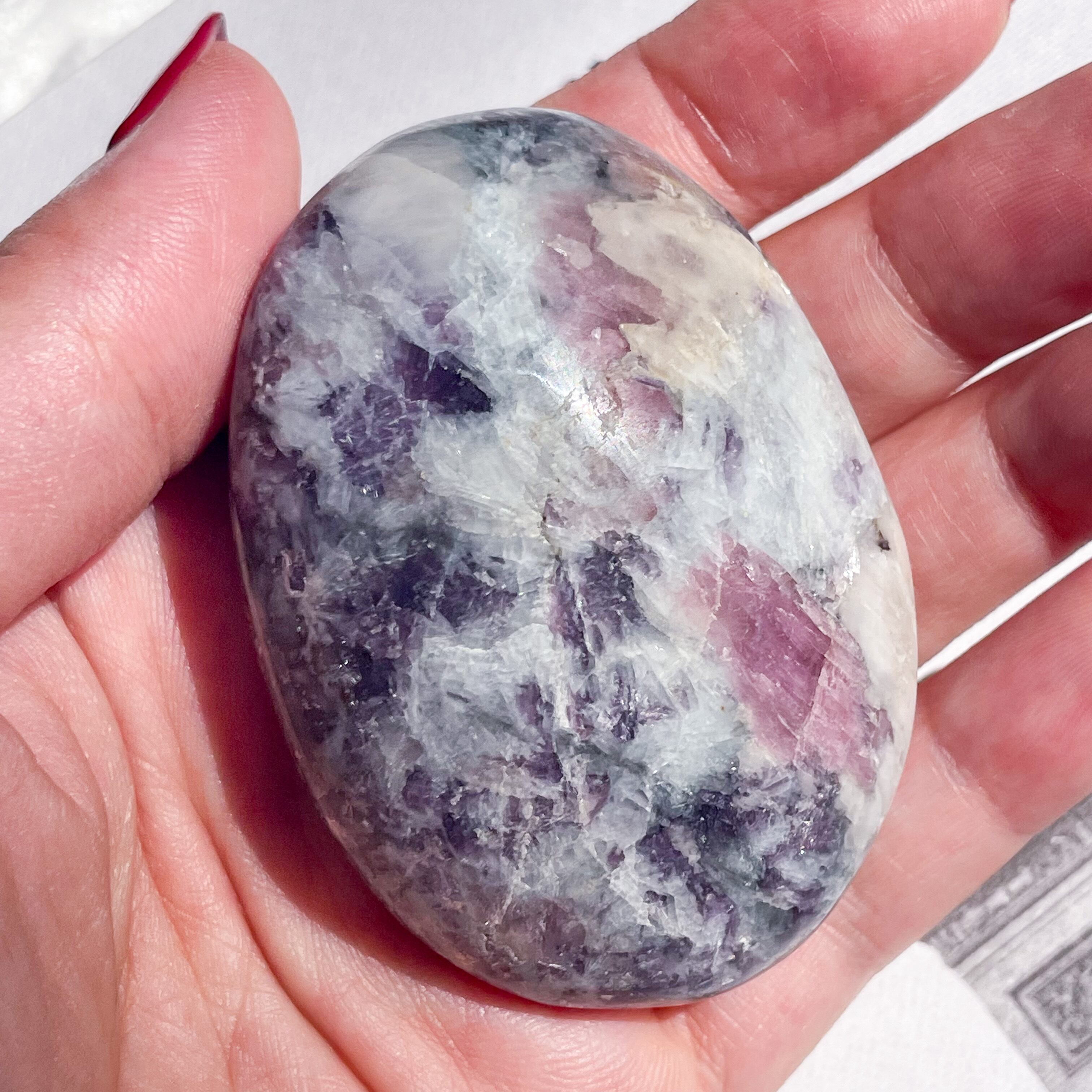 ピンクトルマリン、スモーキークォーツ、クリアクォーツが混ざり合う、ユニコーンストーンのパームストーン。