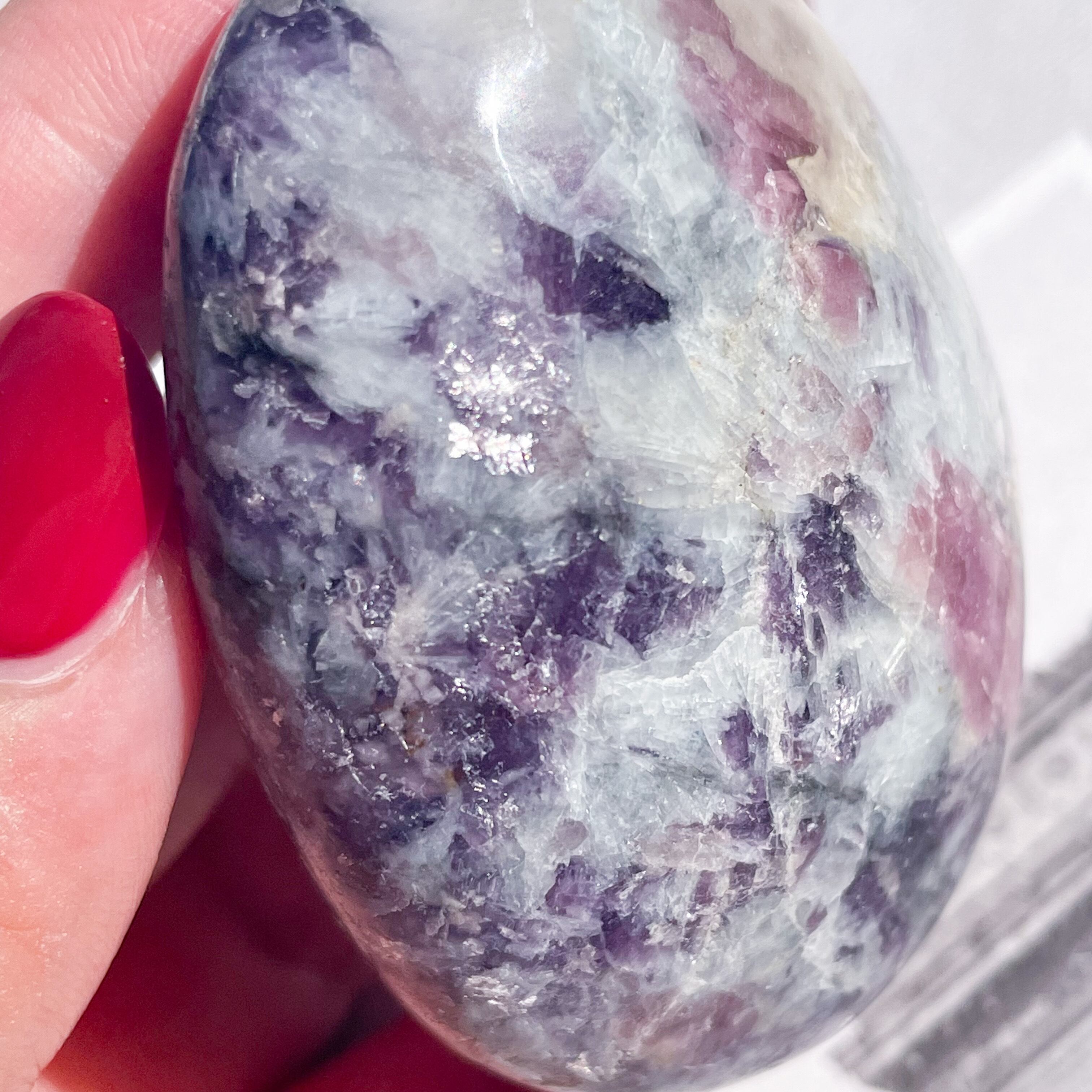 パープルのレピドライトがキラキラ輝きます。