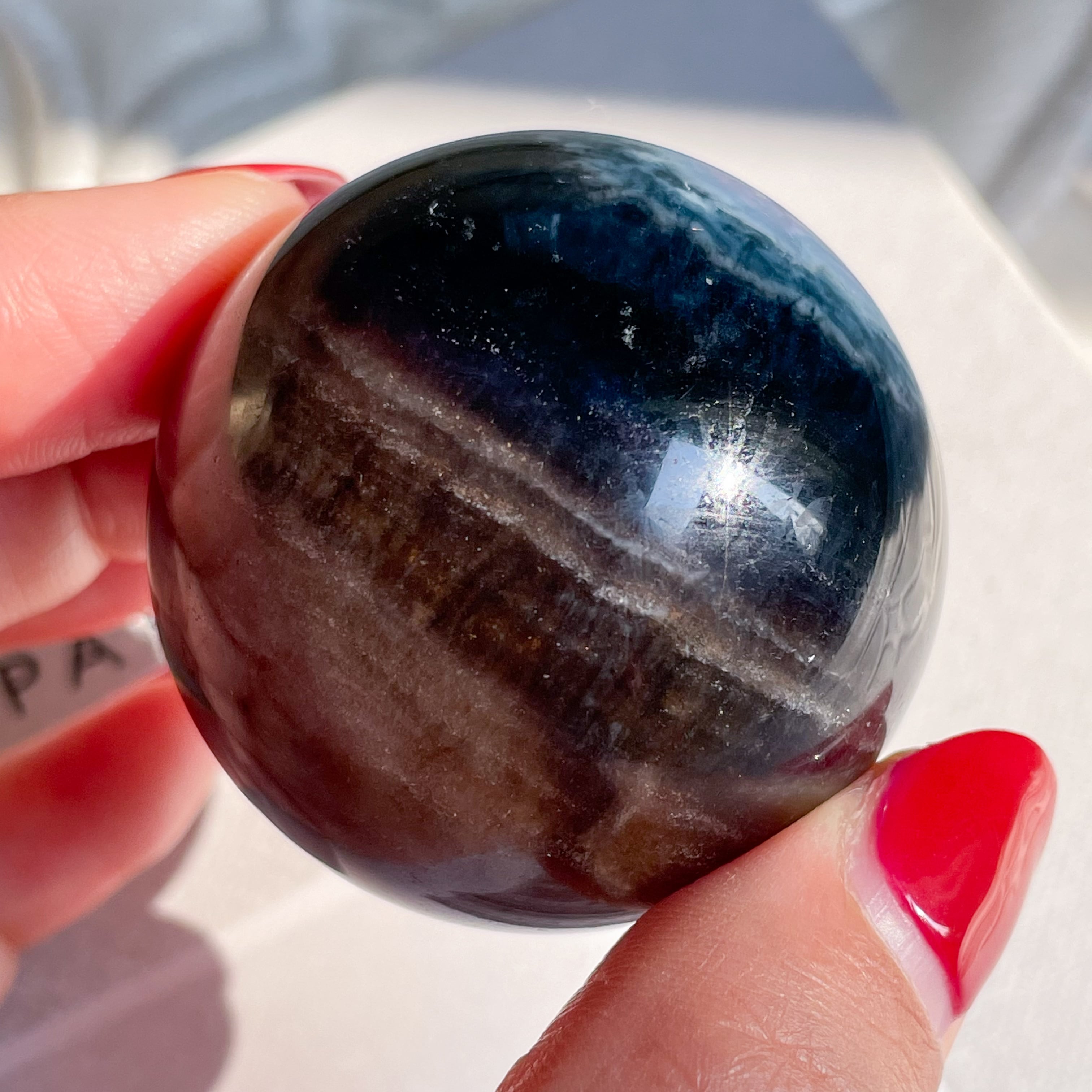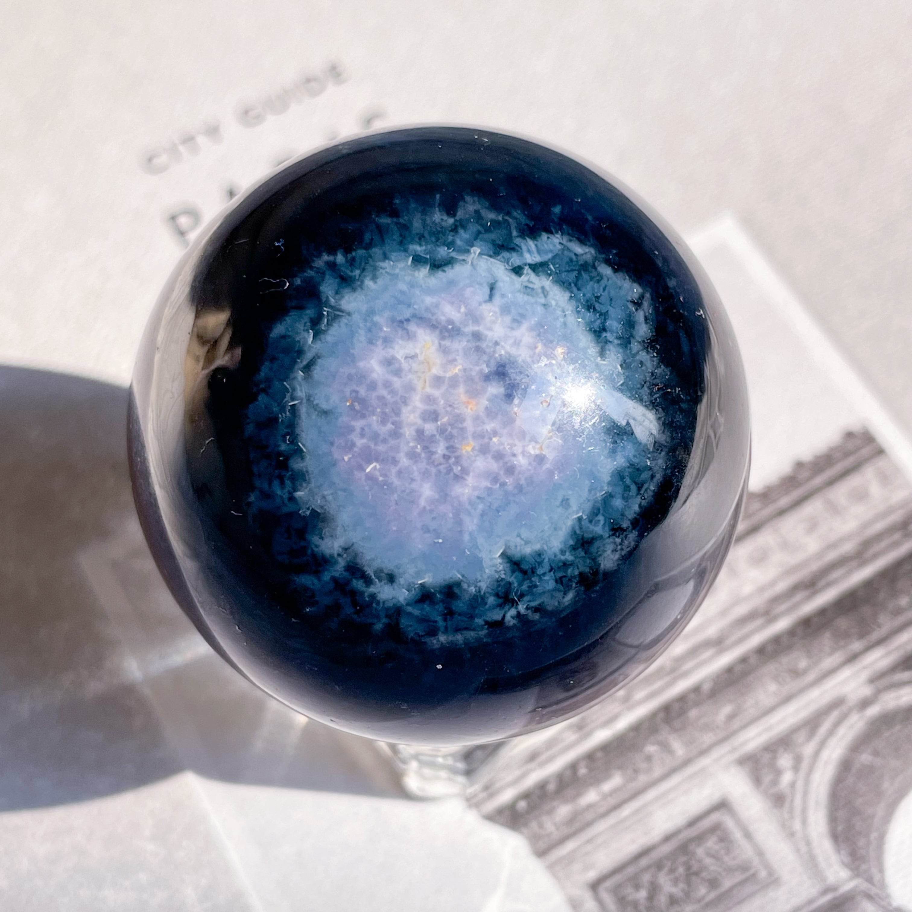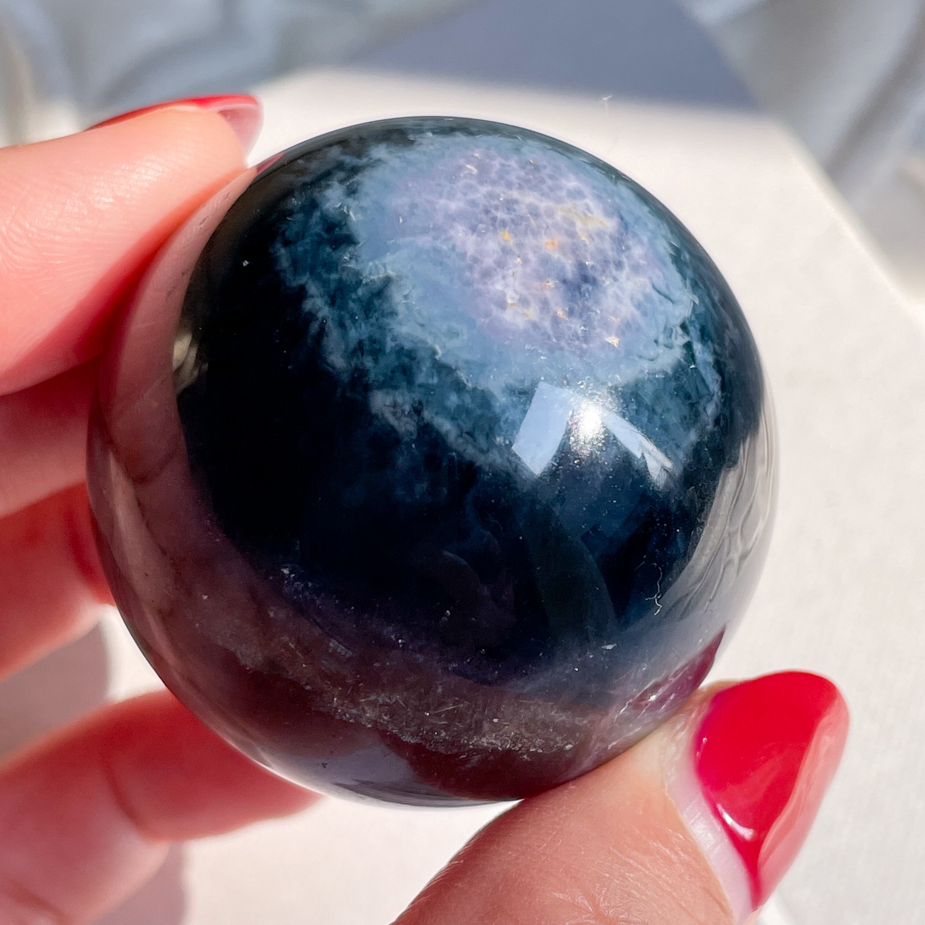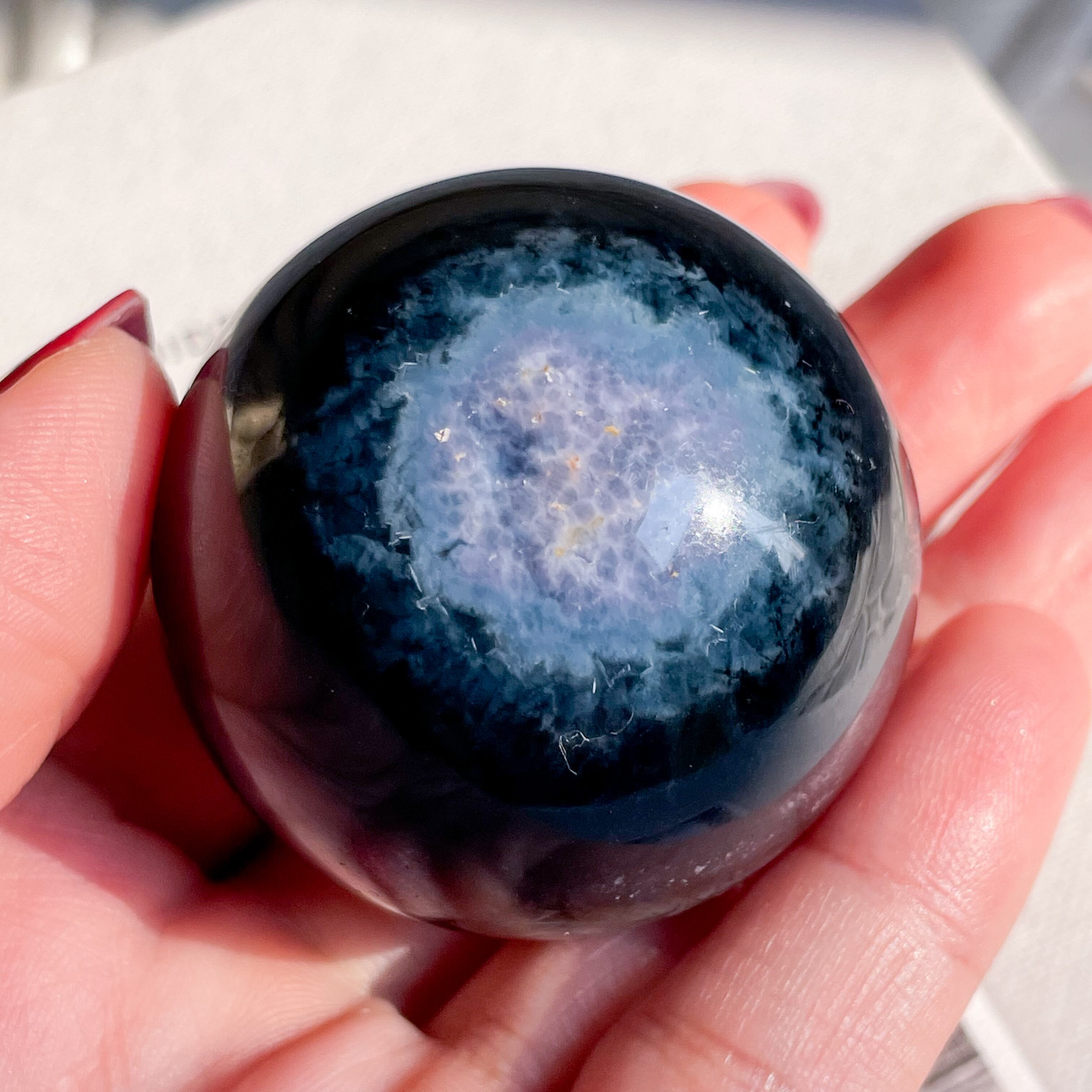 まるで手のひらの中の宇宙・惑星のような、シルクフローライトのスフィア。