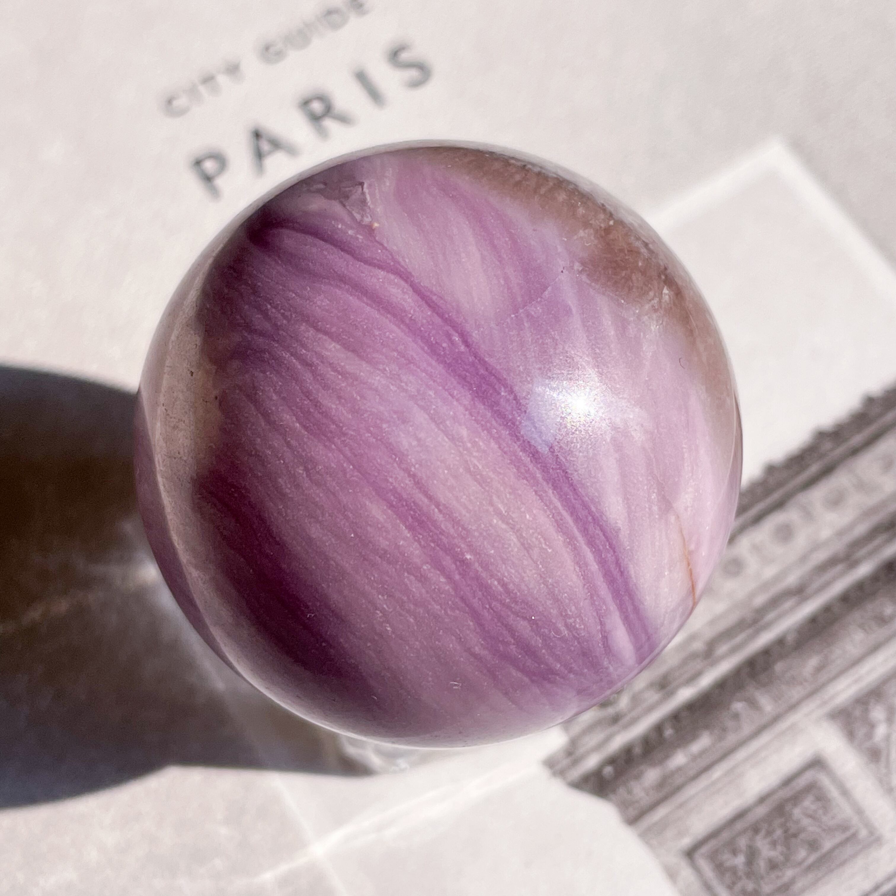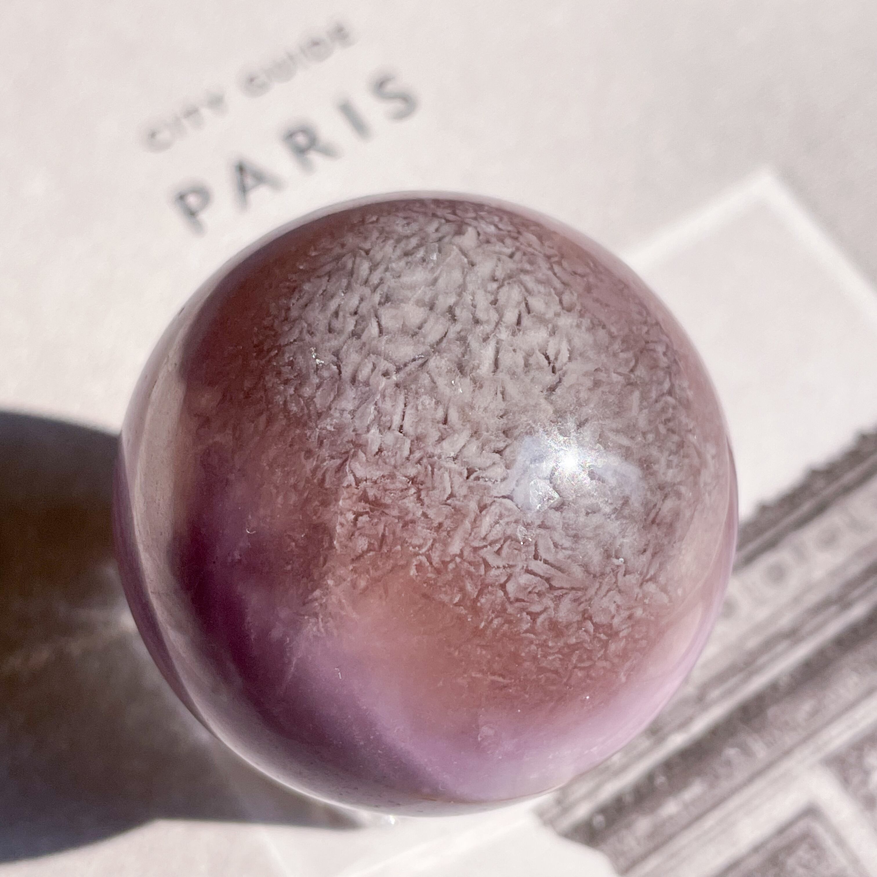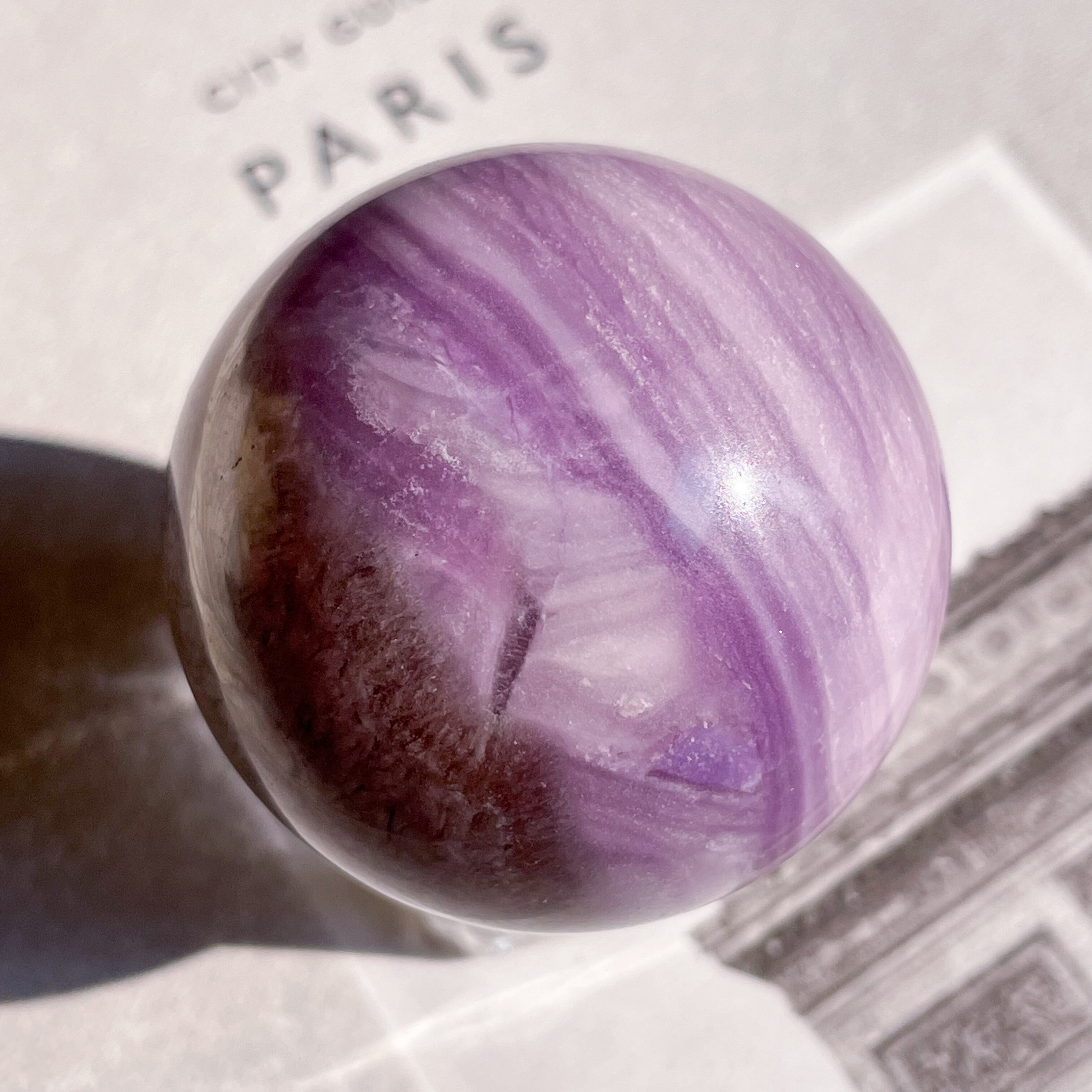 まるで手のひらの中の宇宙・惑星のような、シルクフローライトのスフィア。