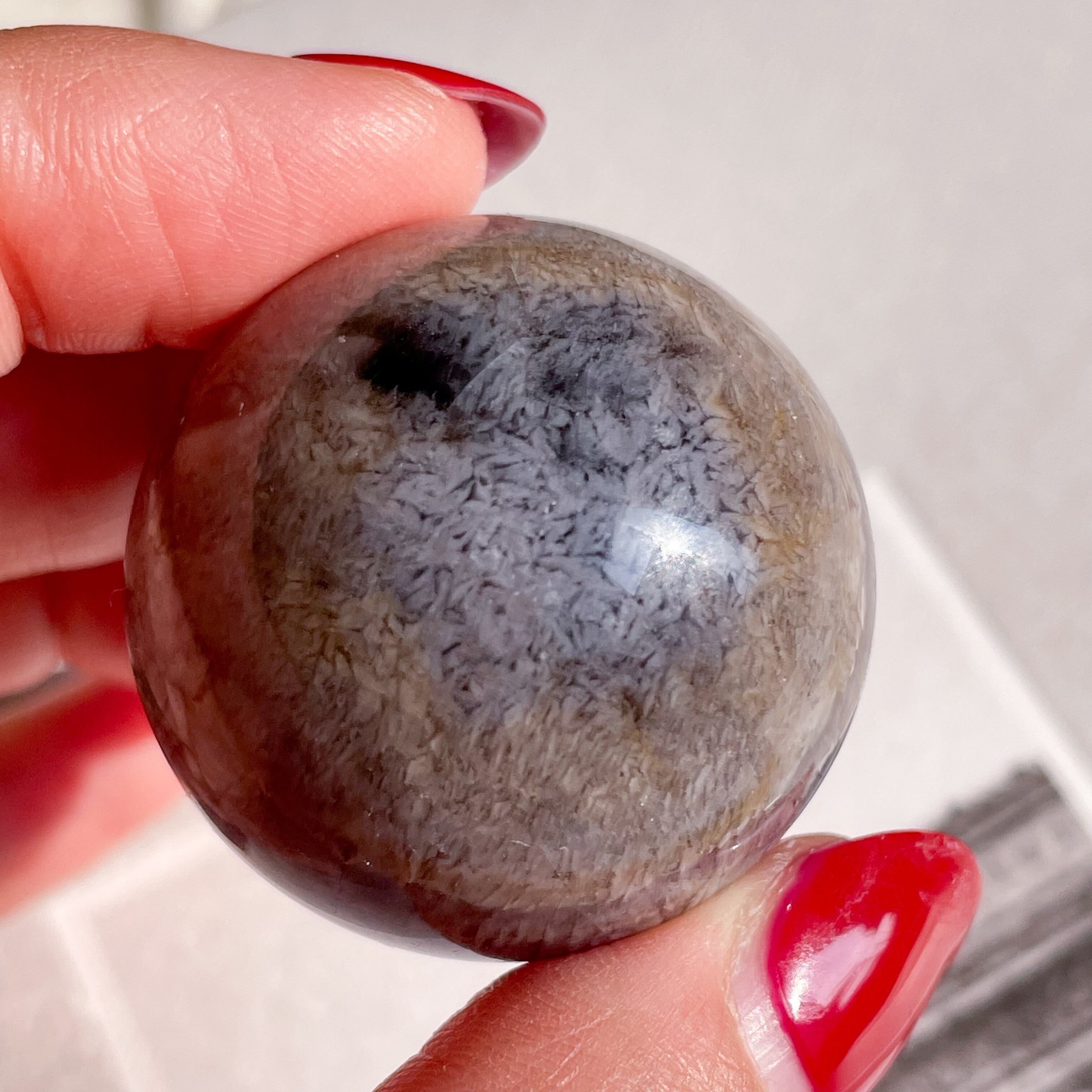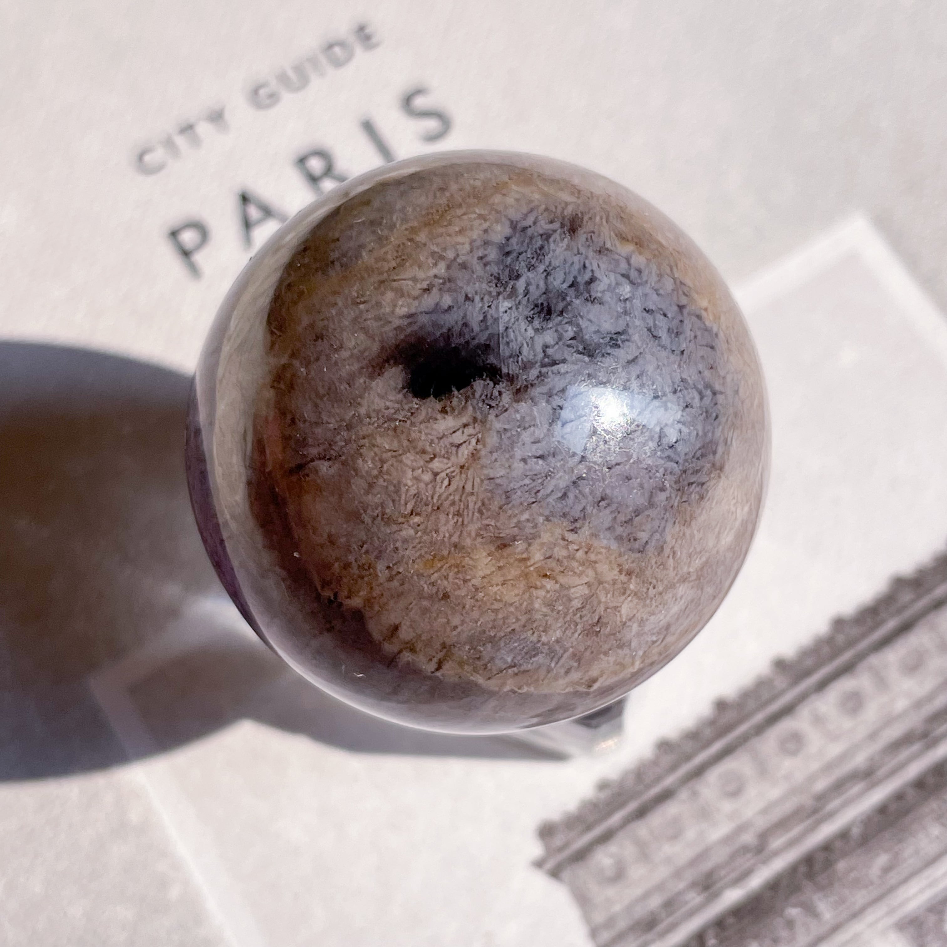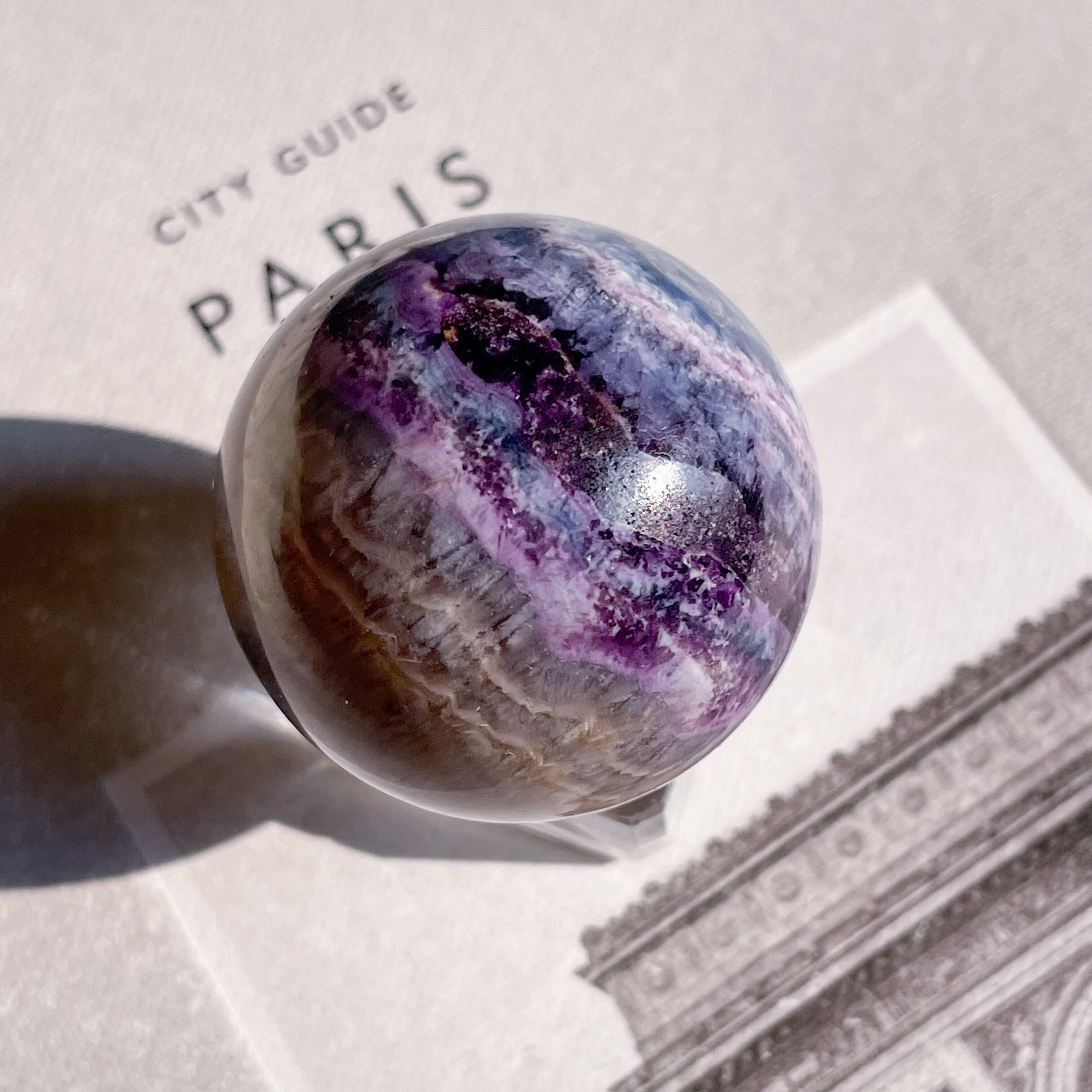 まるで手のひらの中の宇宙・惑星のような、シルクフローライトのスフィア。