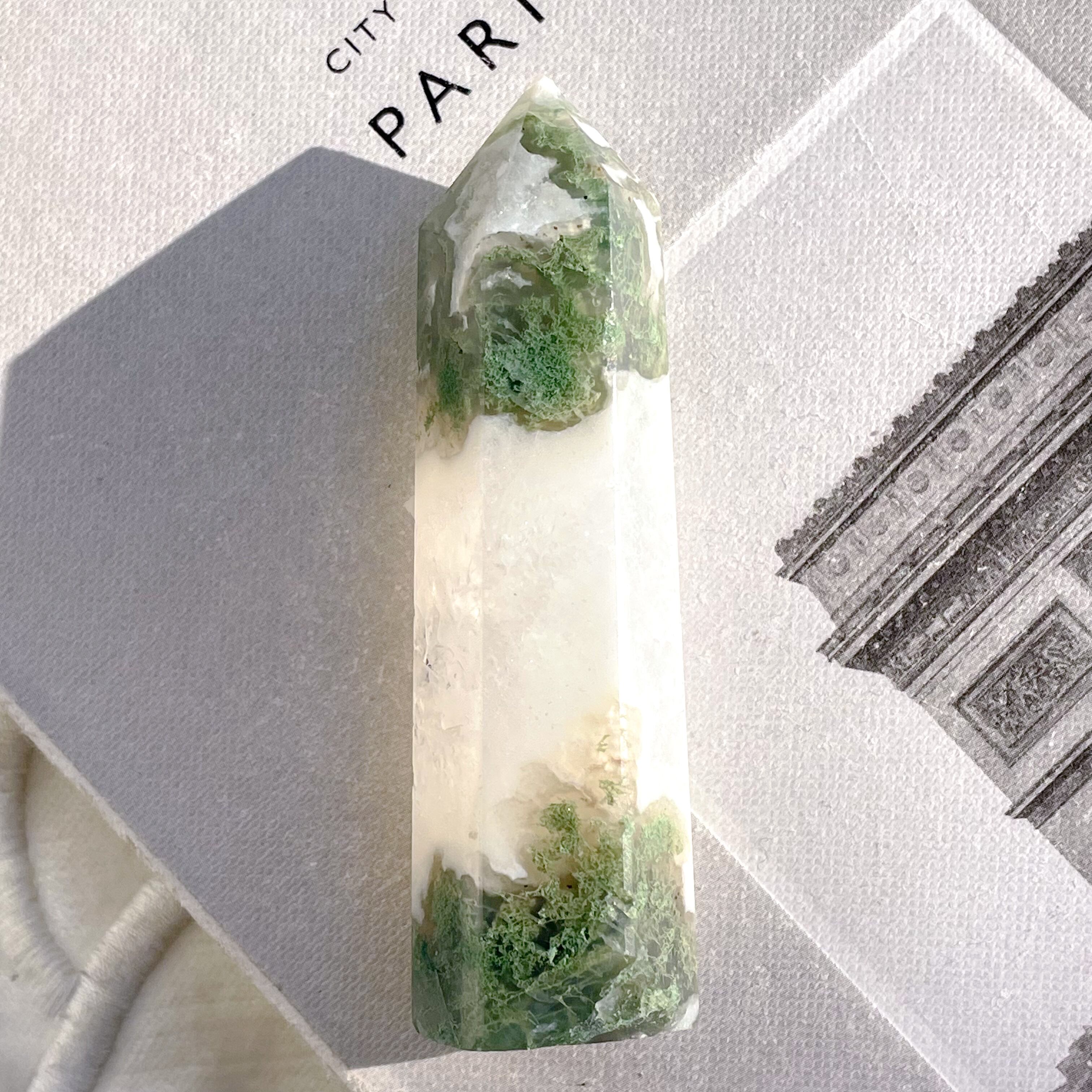 ホワイトとグリーンを基調とした美しいモスアゲート。