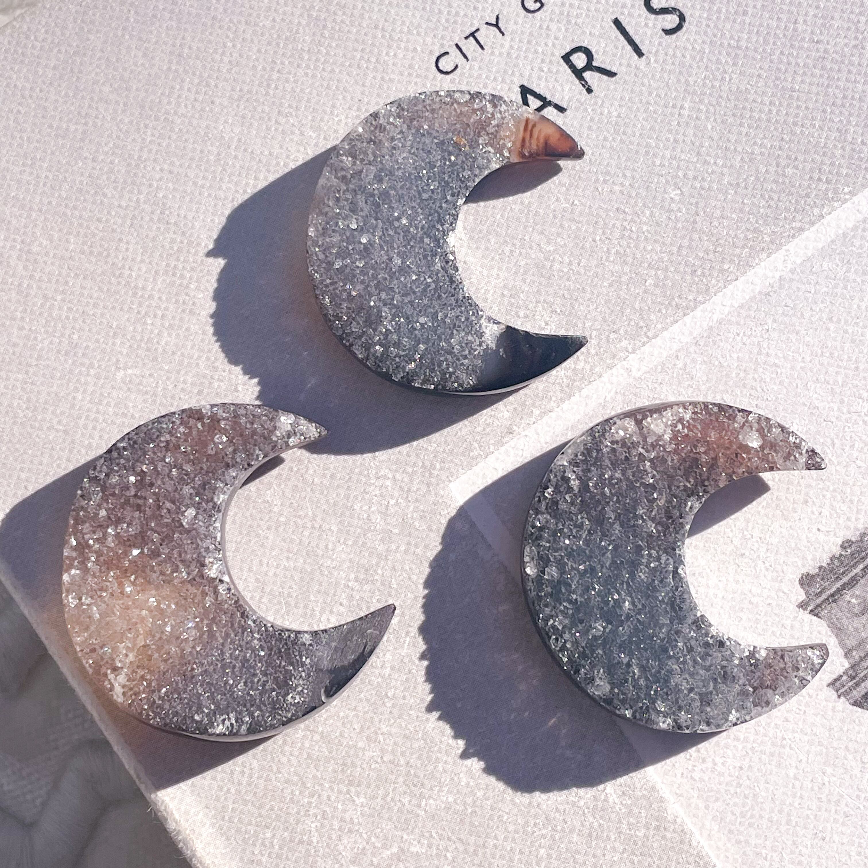 Black Druzy Agate Moon 1 ✧ ドゥルージーアゲート