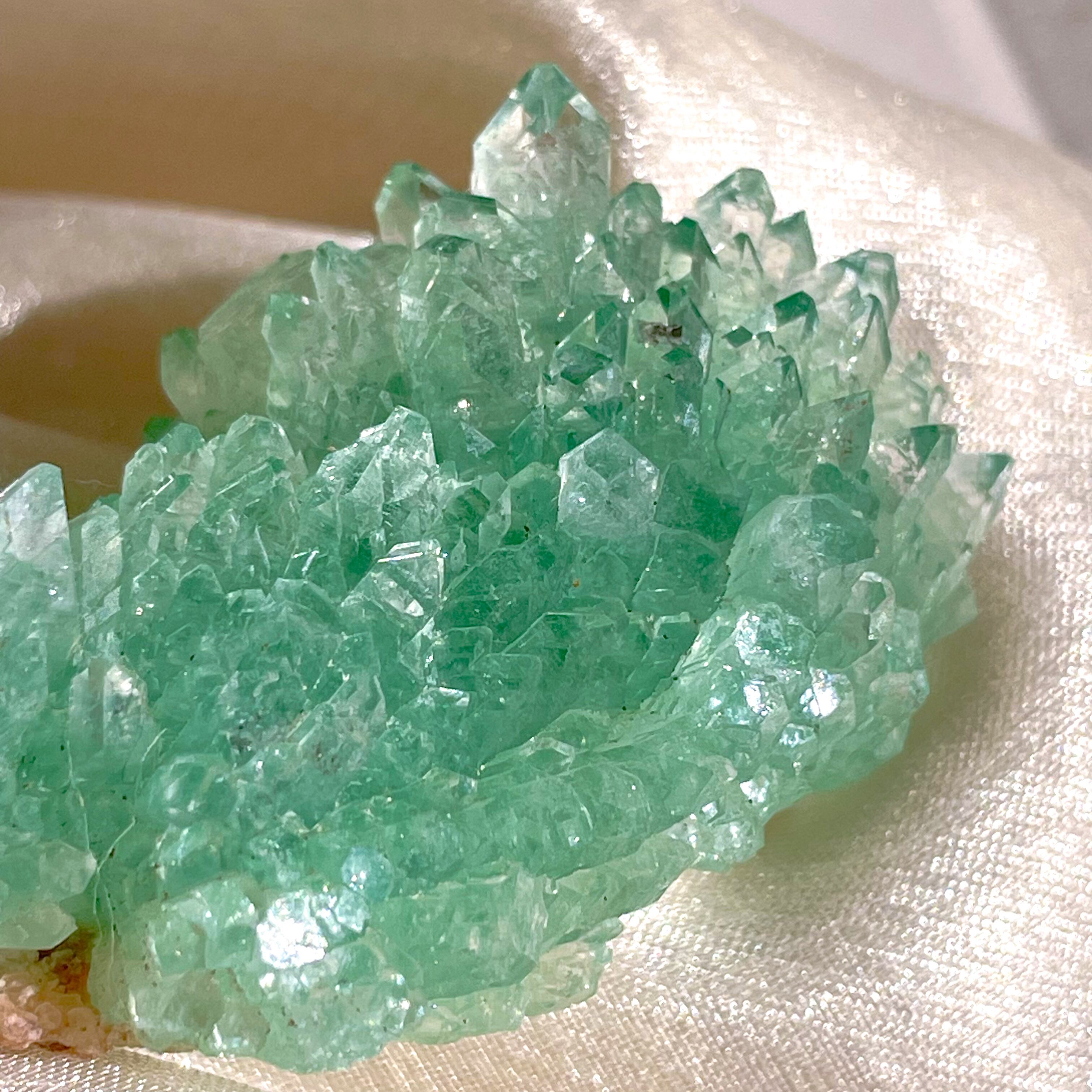 グリーンアポフィライト自体が流通量の少ない天然石ですが、今回のシリーズは、花のように結晶が形成されている、大変希少で美しいピースです。