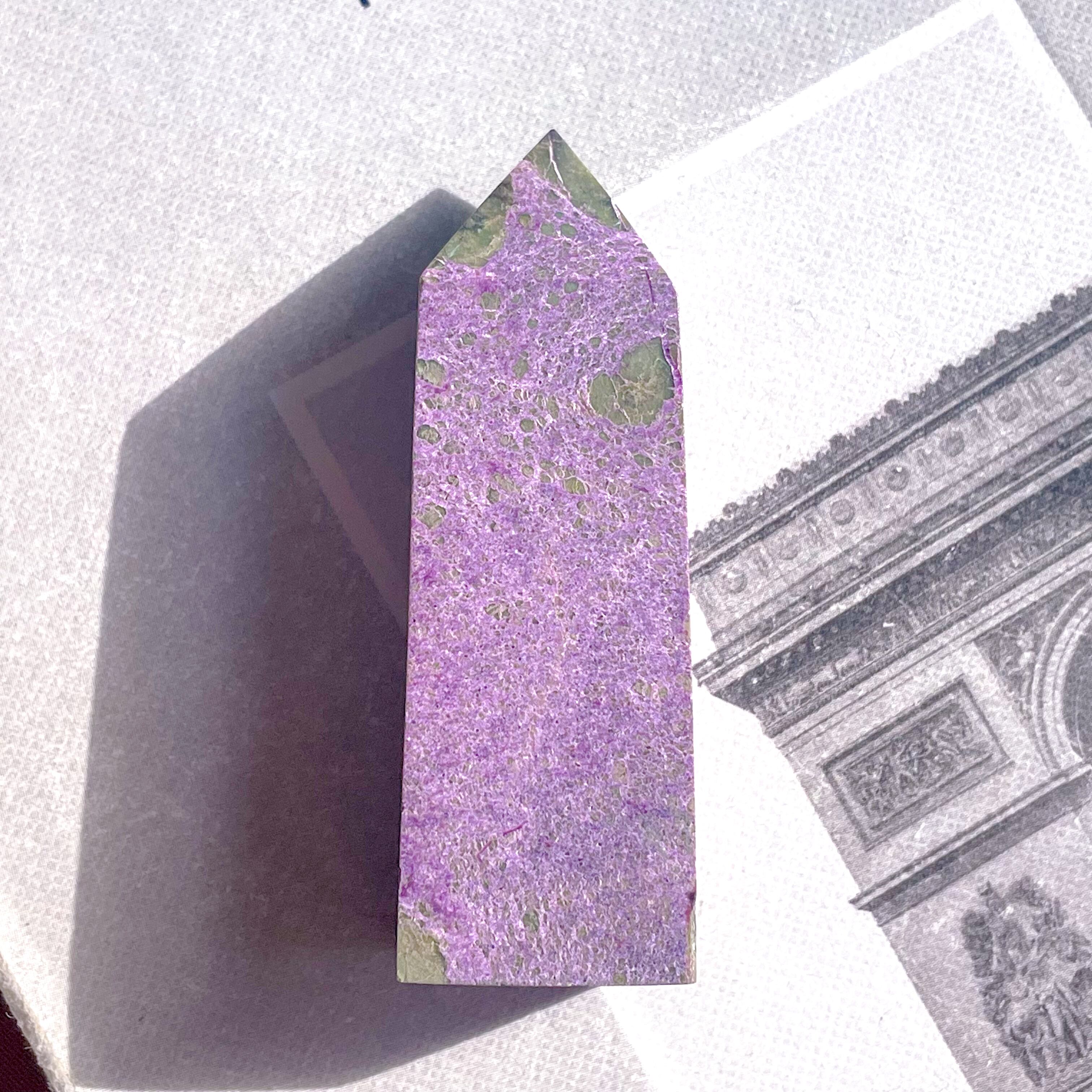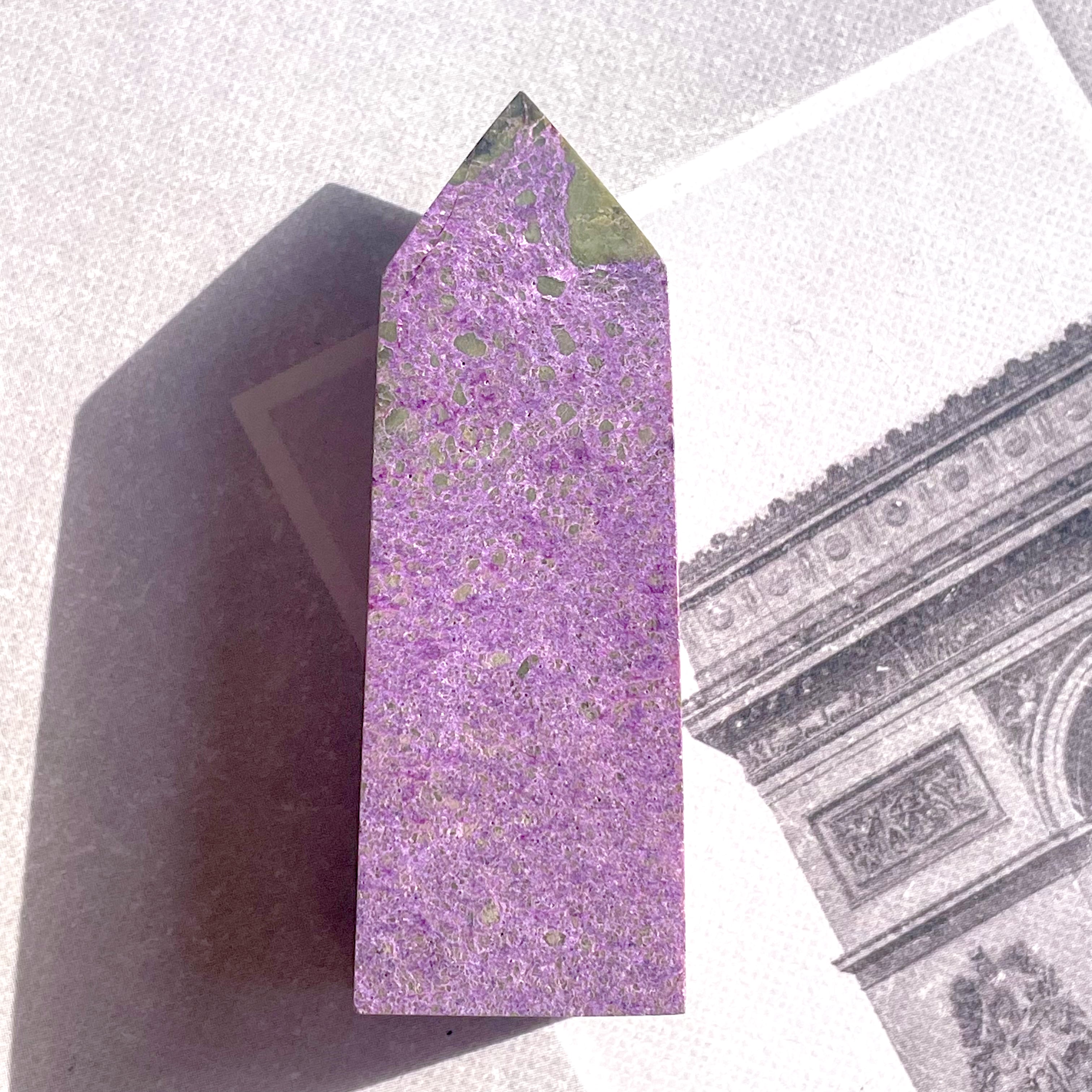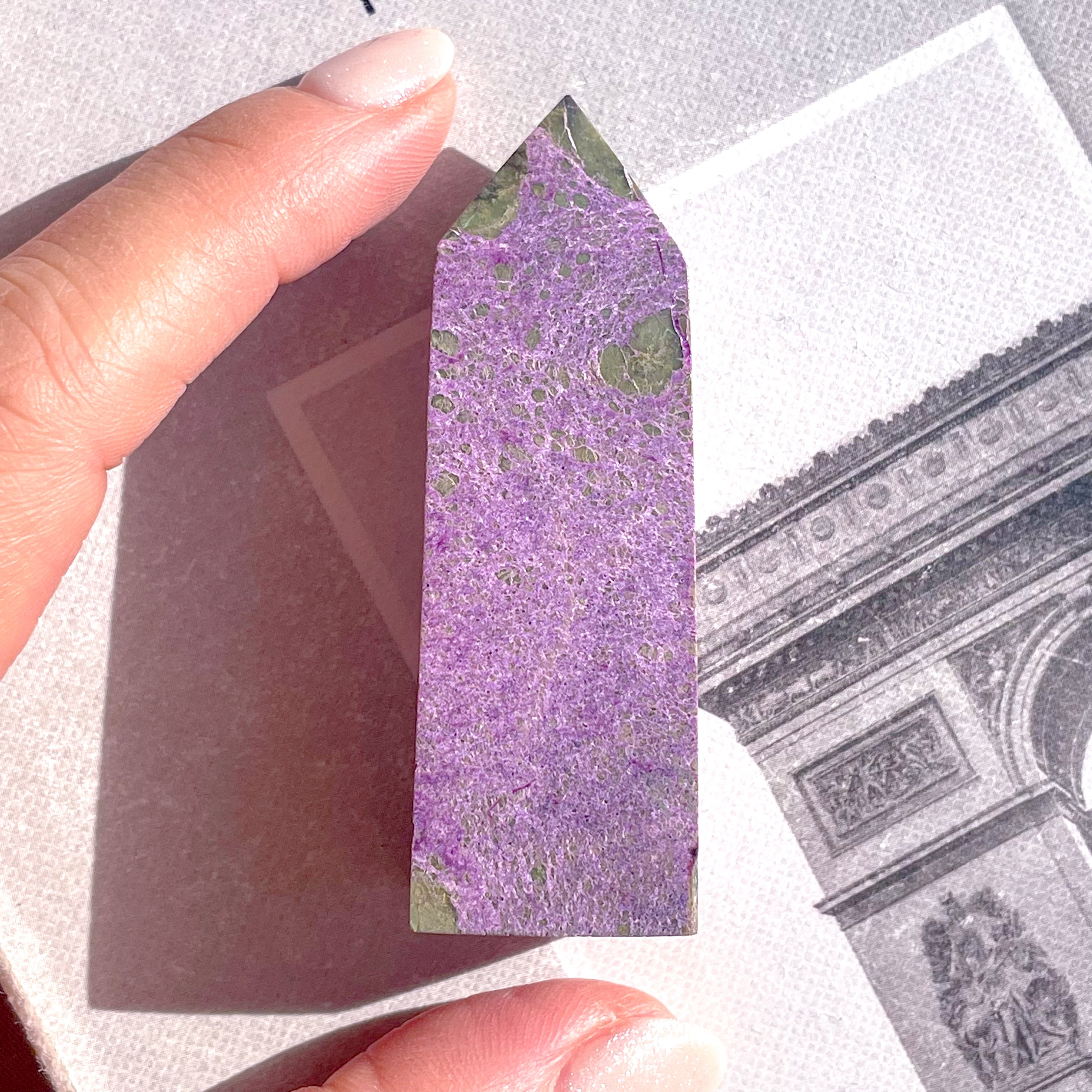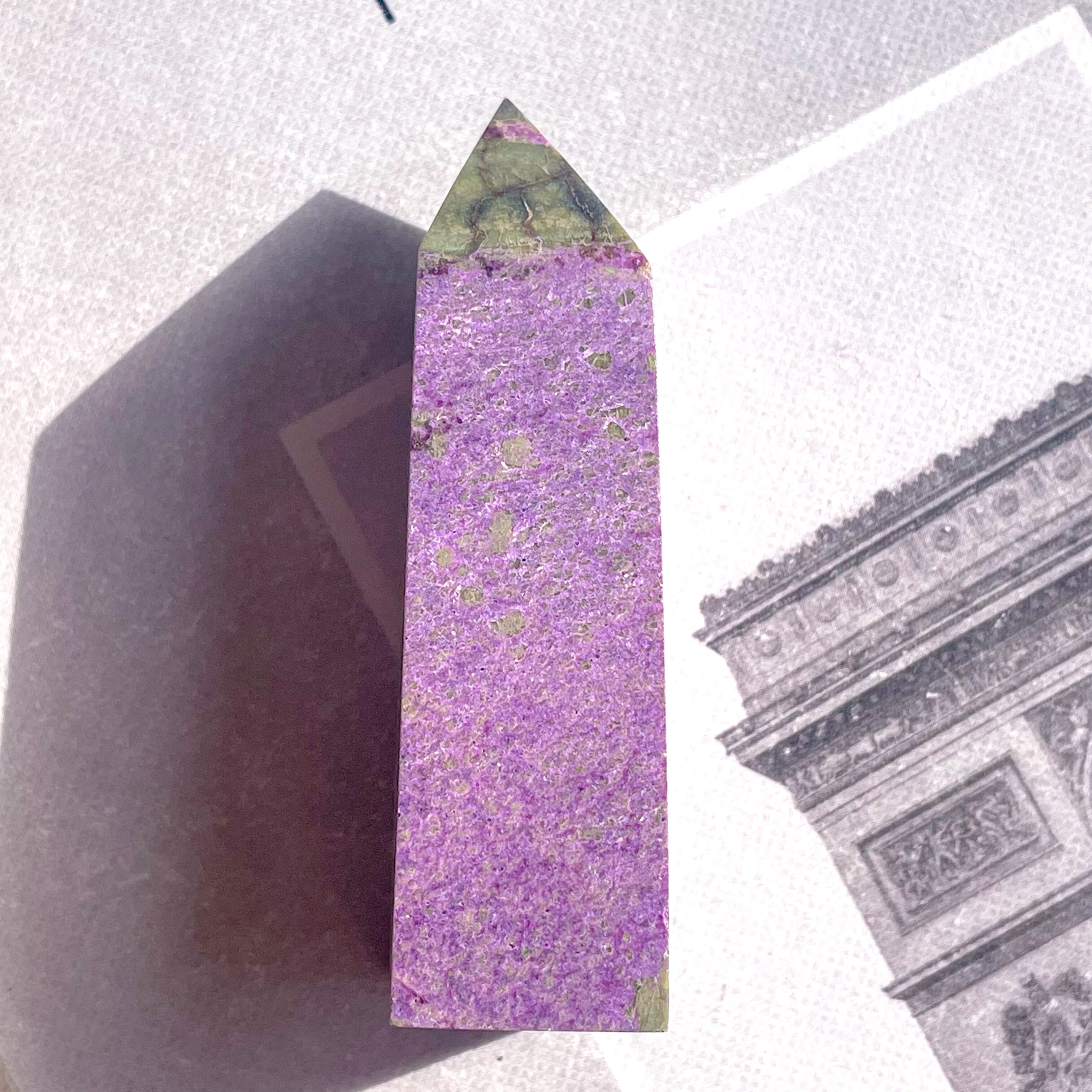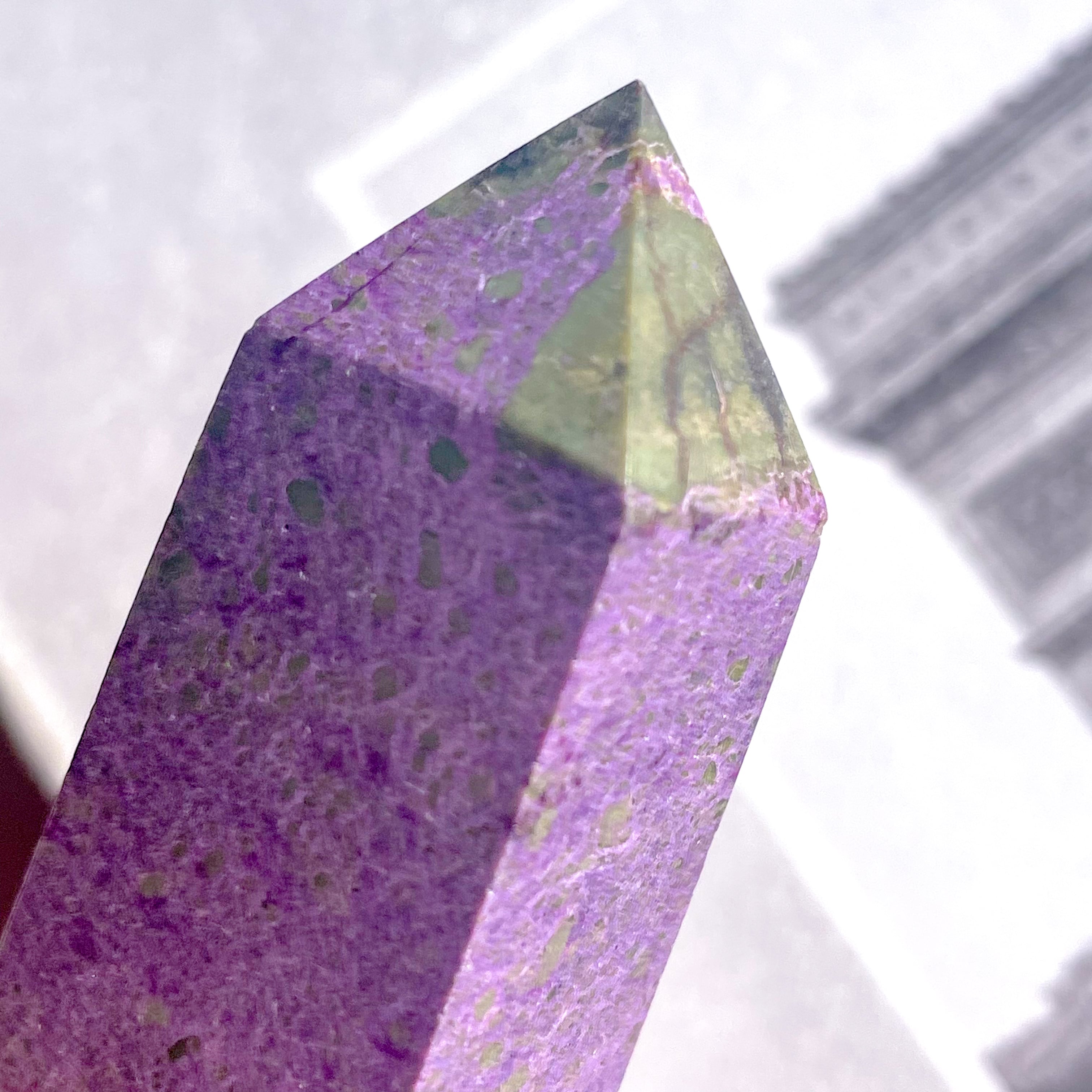 鮮やかなパープルとピスタチオカラーの絶妙なコントラストがクセになる、あまりお見かけしないストーン。