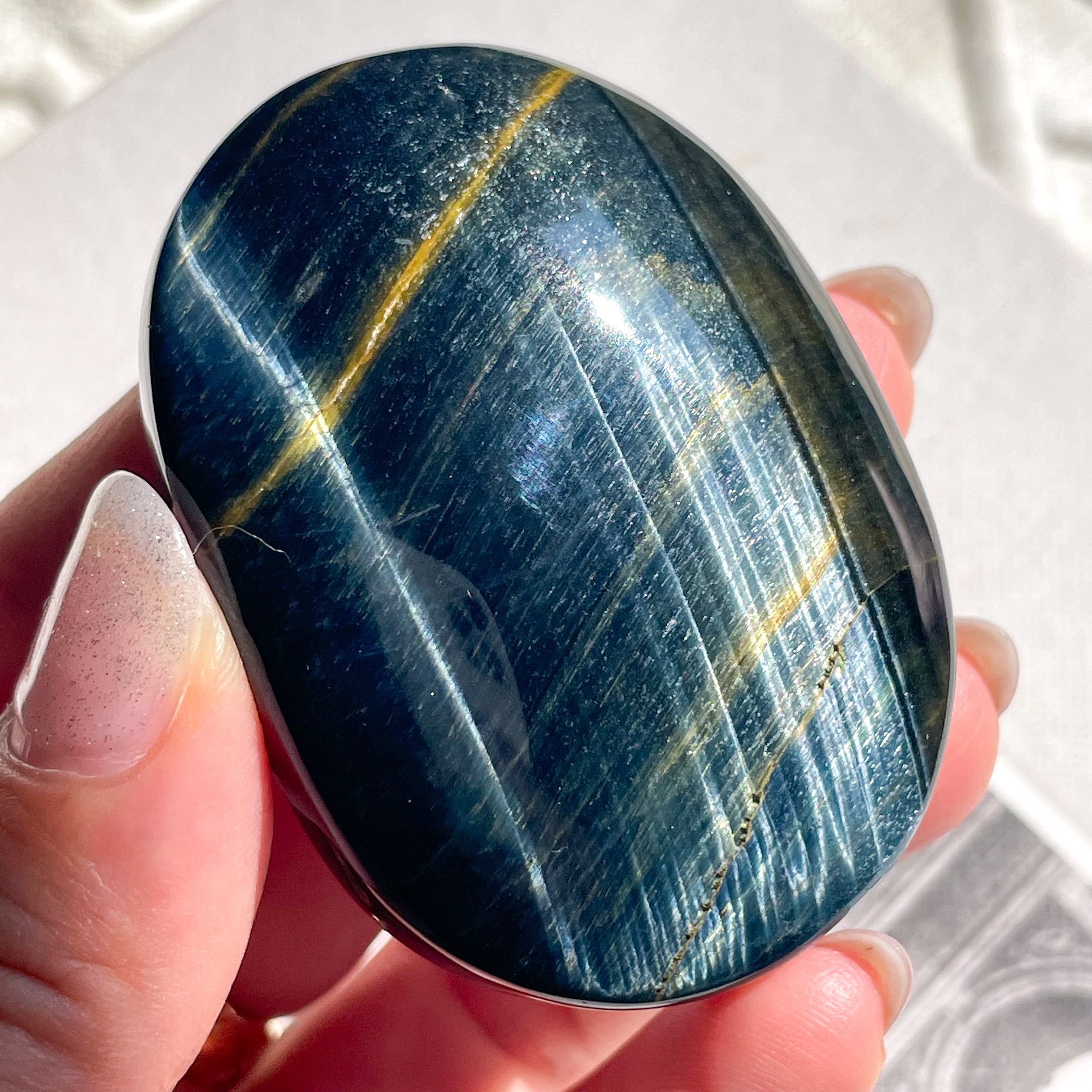 ブルータイガーアイのパームストーン。