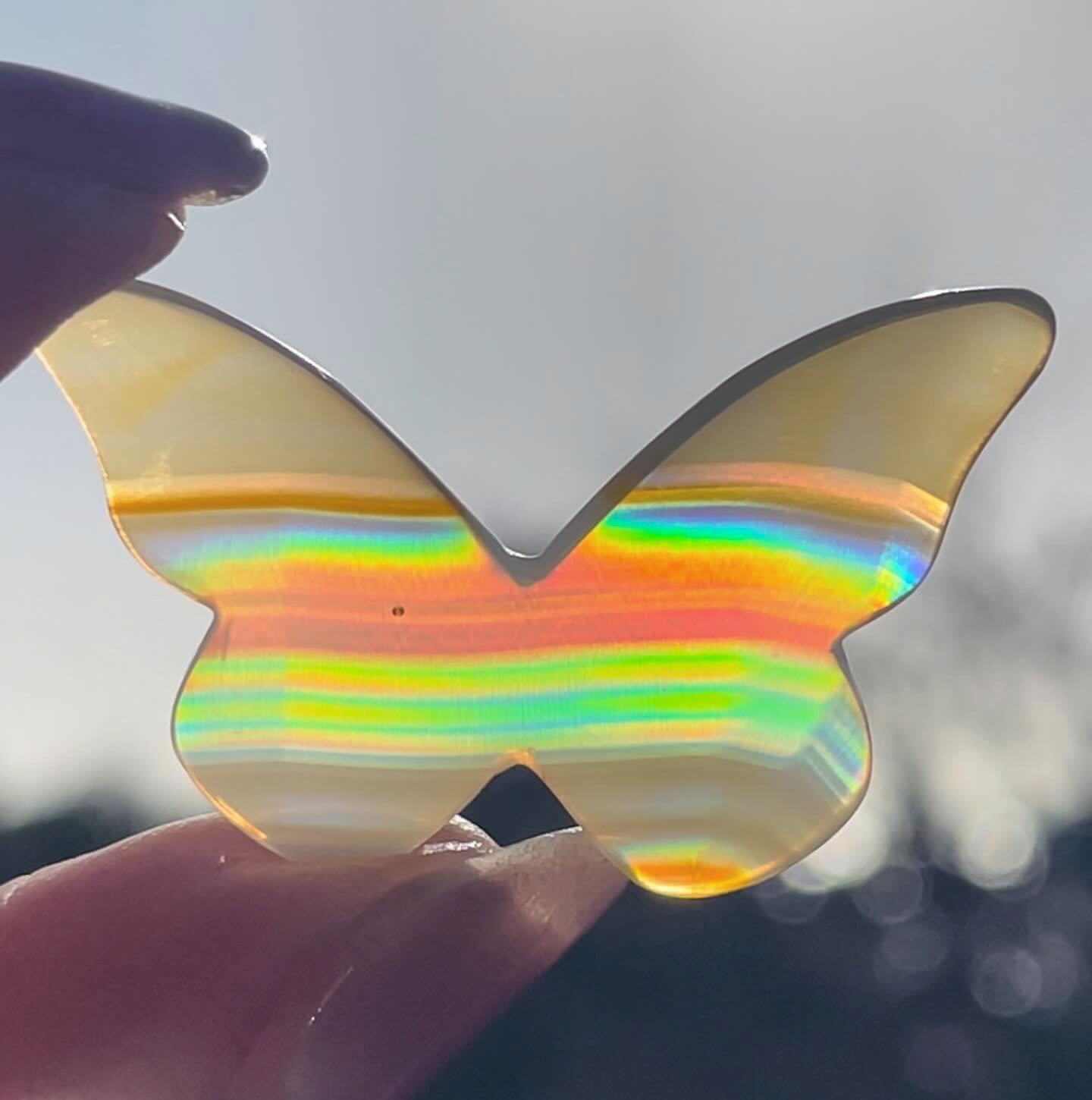 幻のアゲートと言われる、イリスアゲートの蝶々です。
