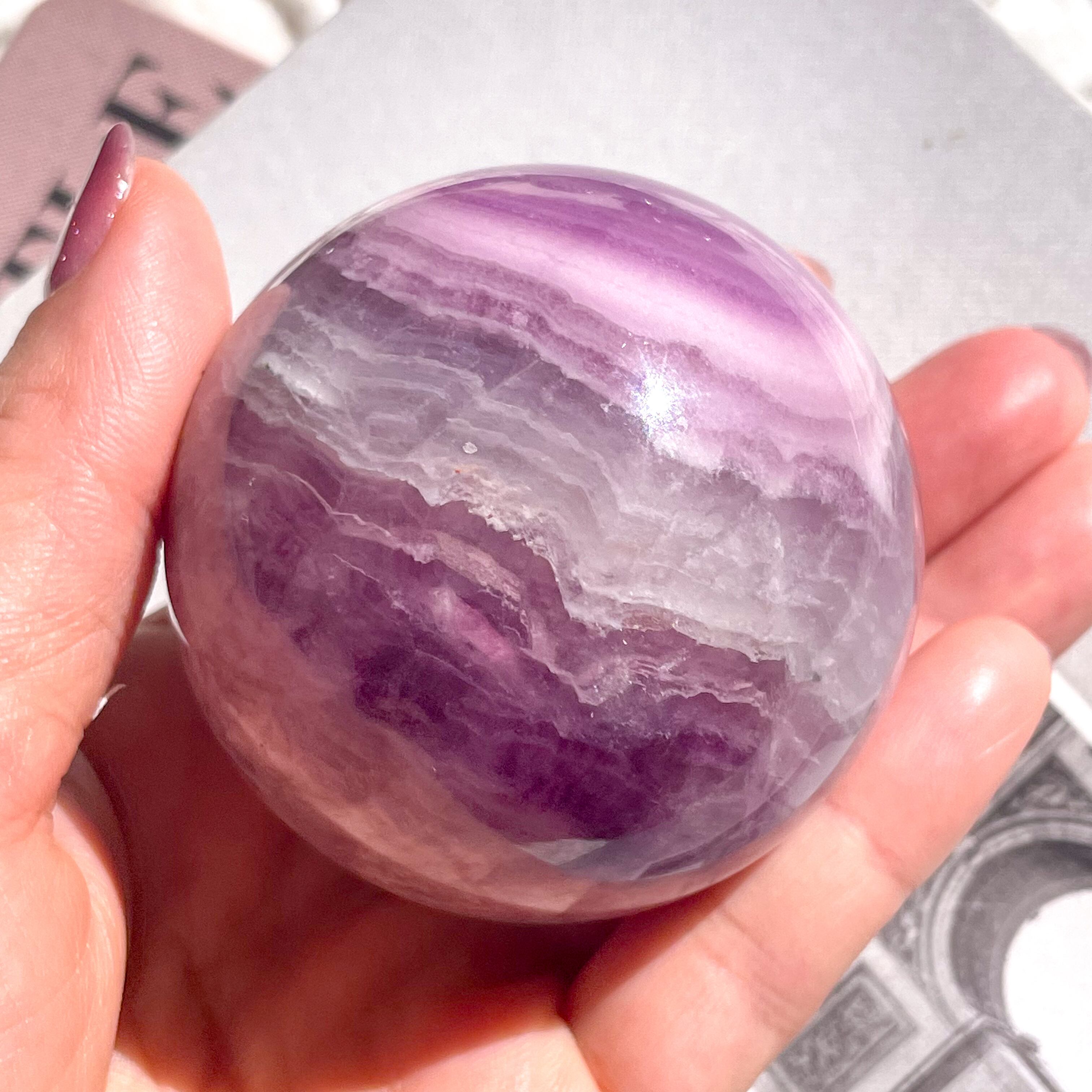まるで手のひらの中の宇宙・惑星のような、シルクフローライトのスフィア。