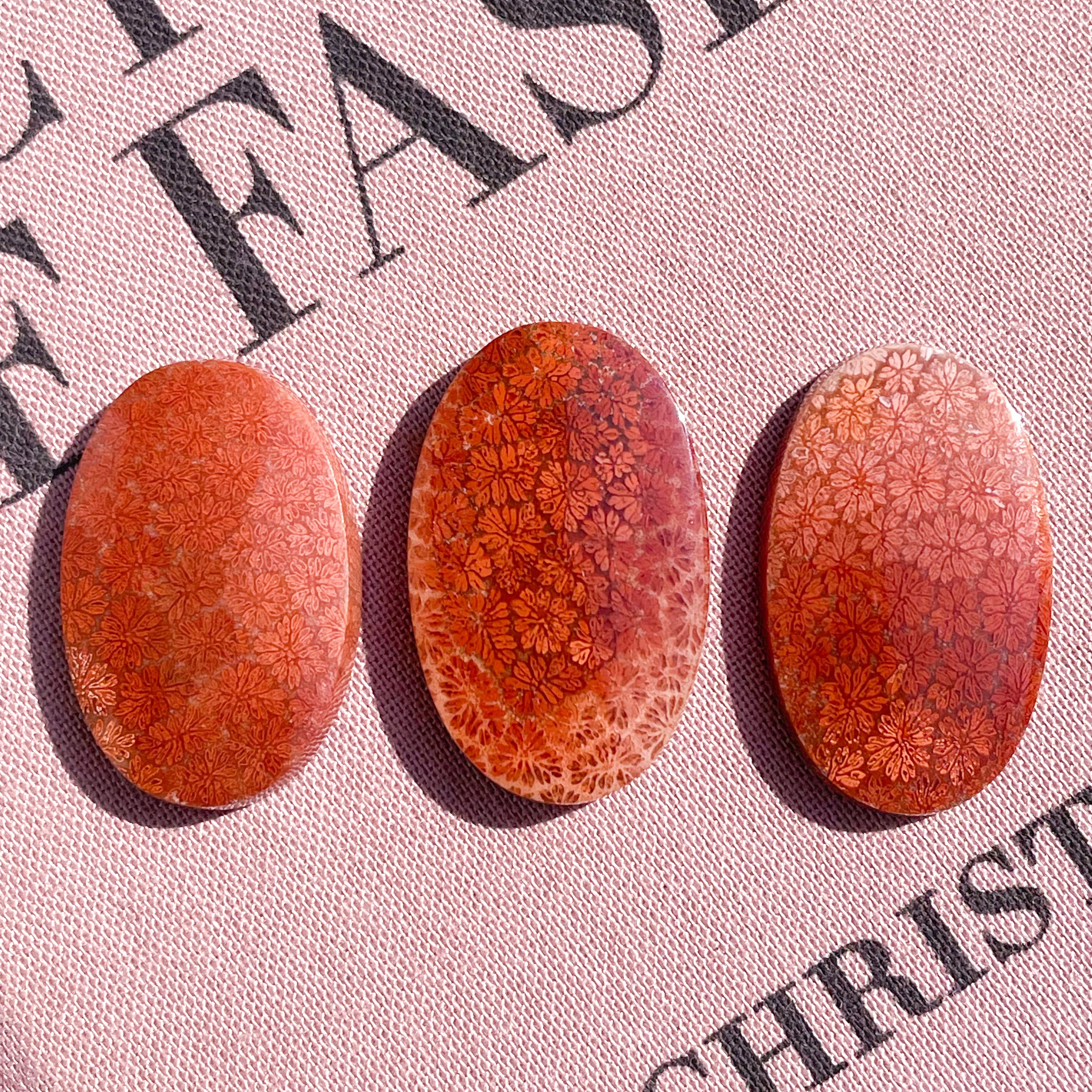Red Fossile Coral Oval 2 ✧ フォッシルコーラル (化石珊瑚)
