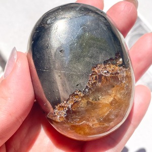 ゴールデンヒーラー&パイライトが共生するパームストーン。
