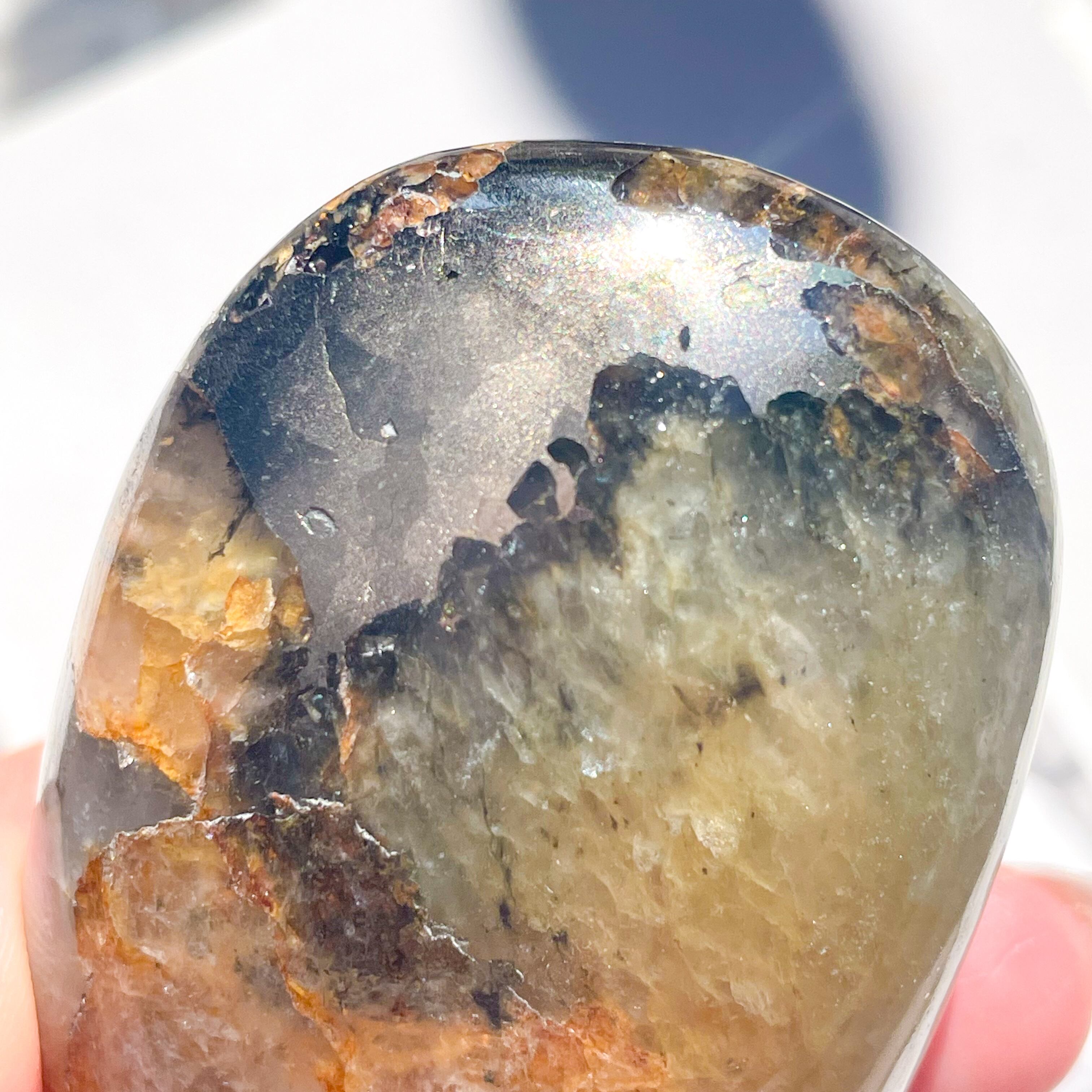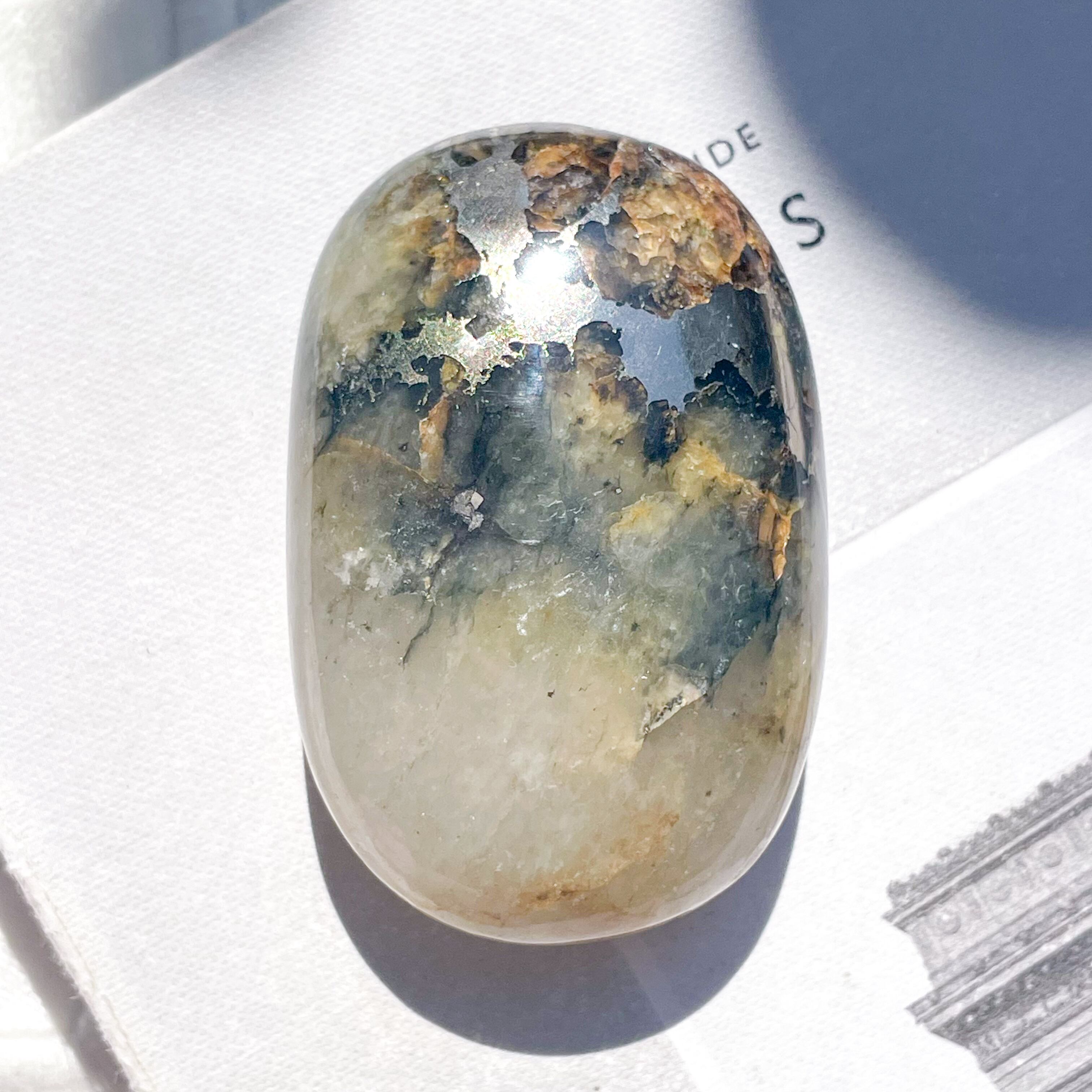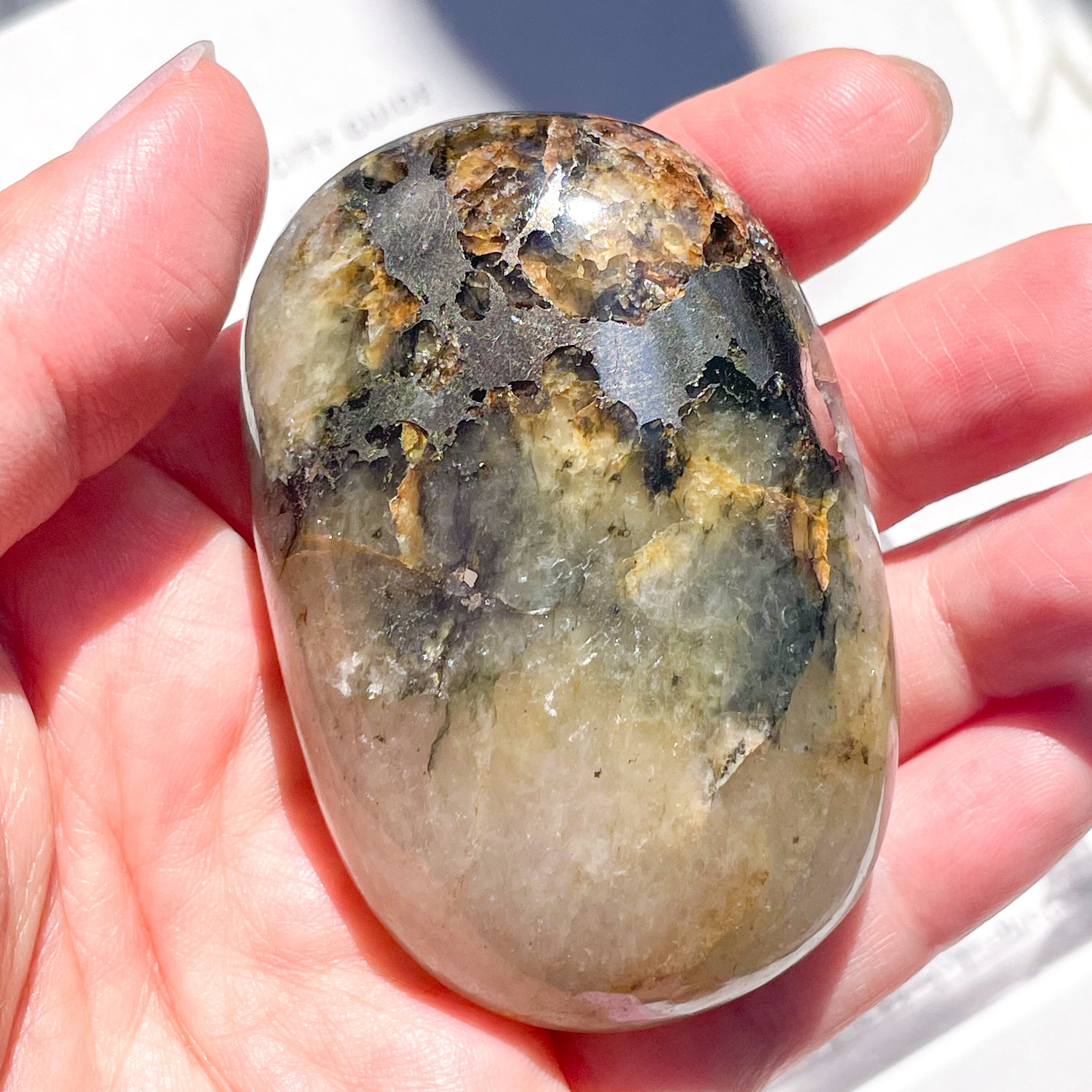 ゴールデンヒーラー&パイライトが共生するパームストーン。