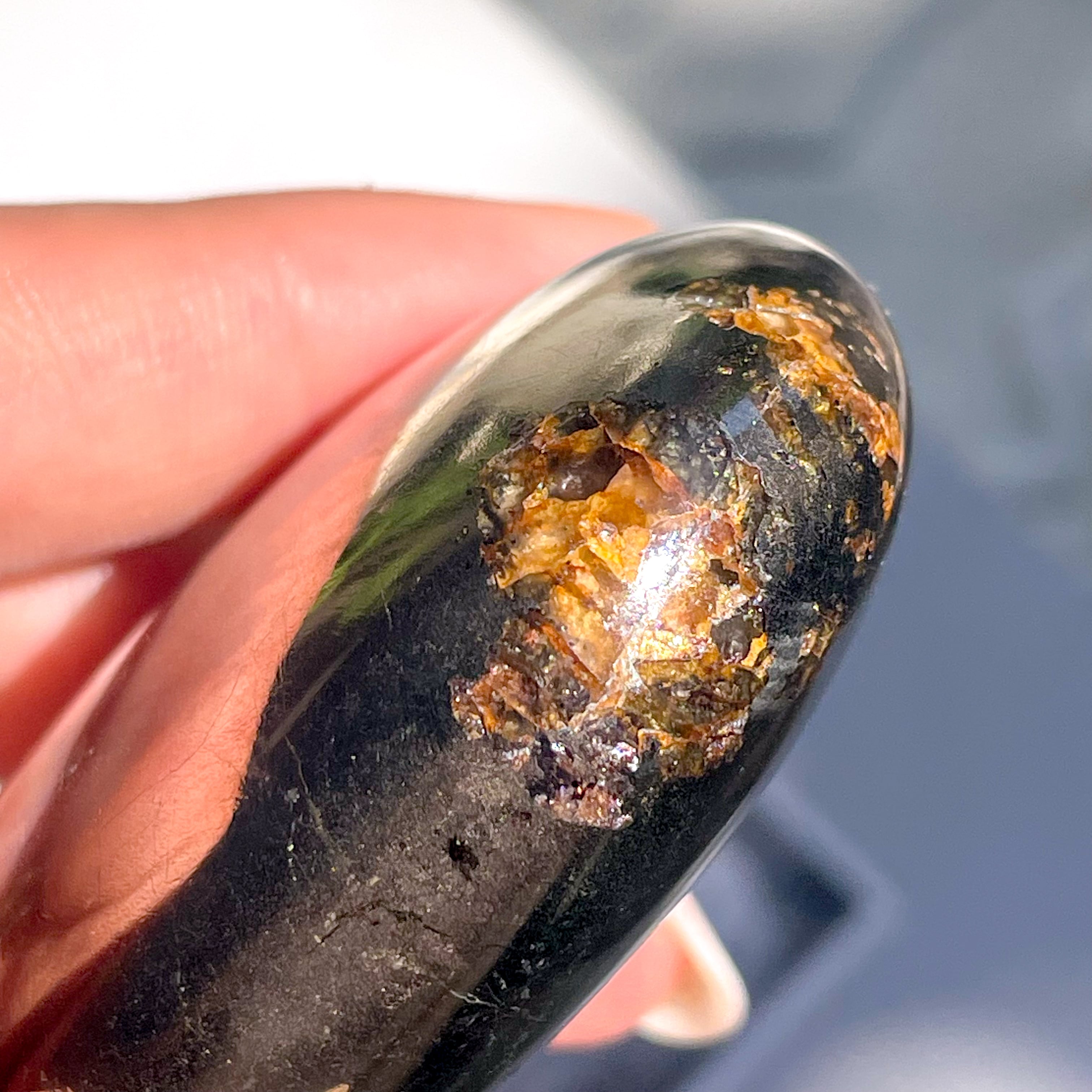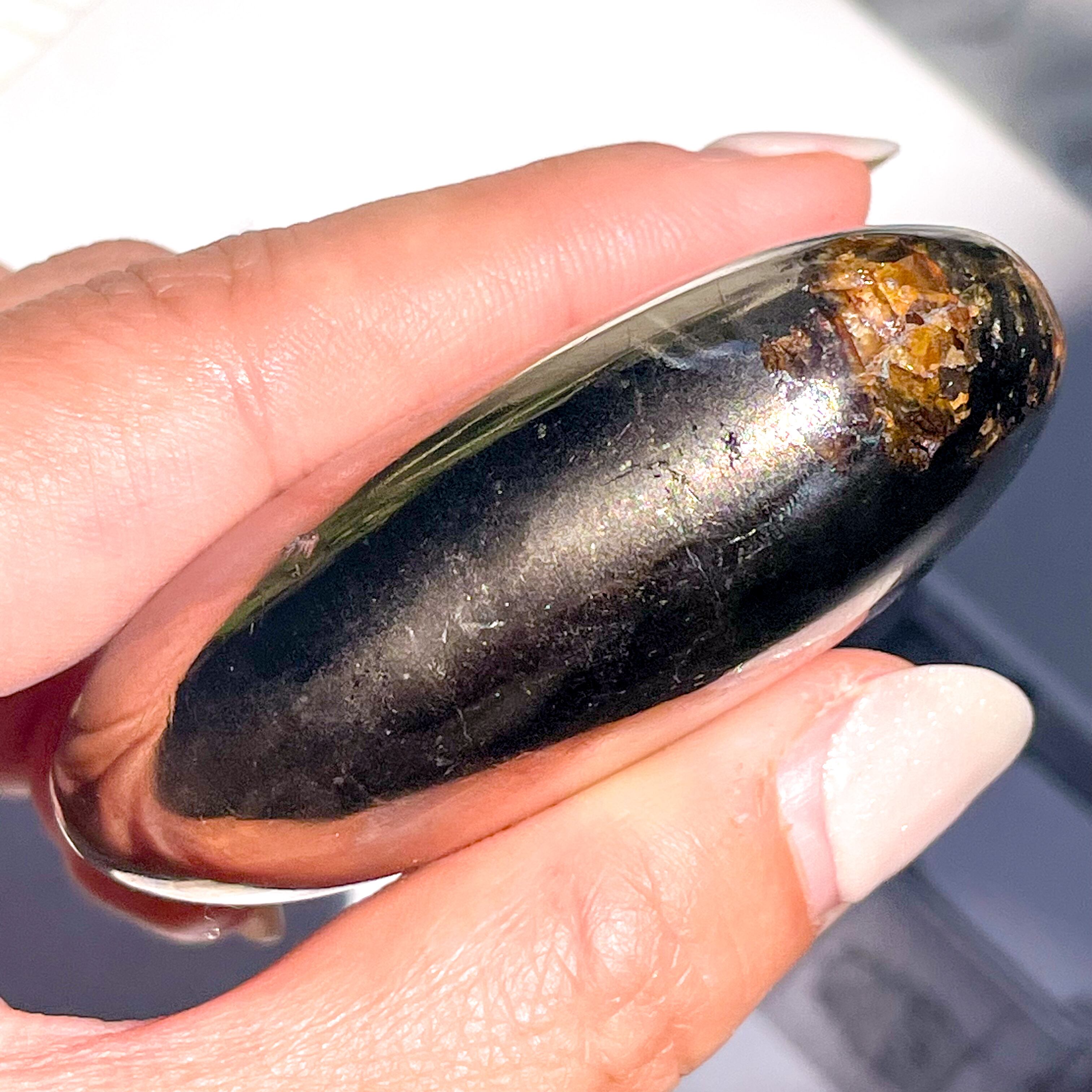 最高にレアな、ゴールデンヒーラー&パイライトが共生するパームストーン。