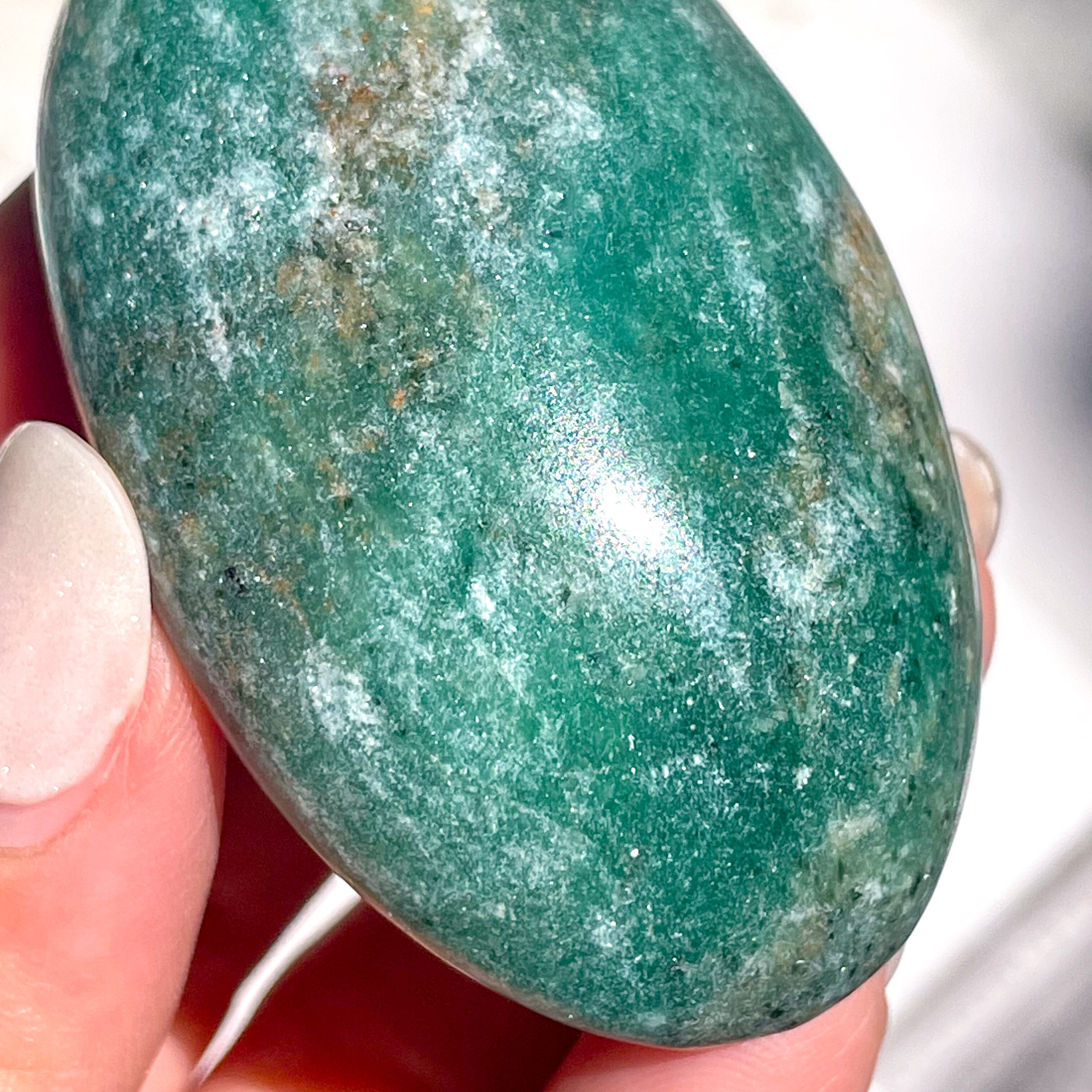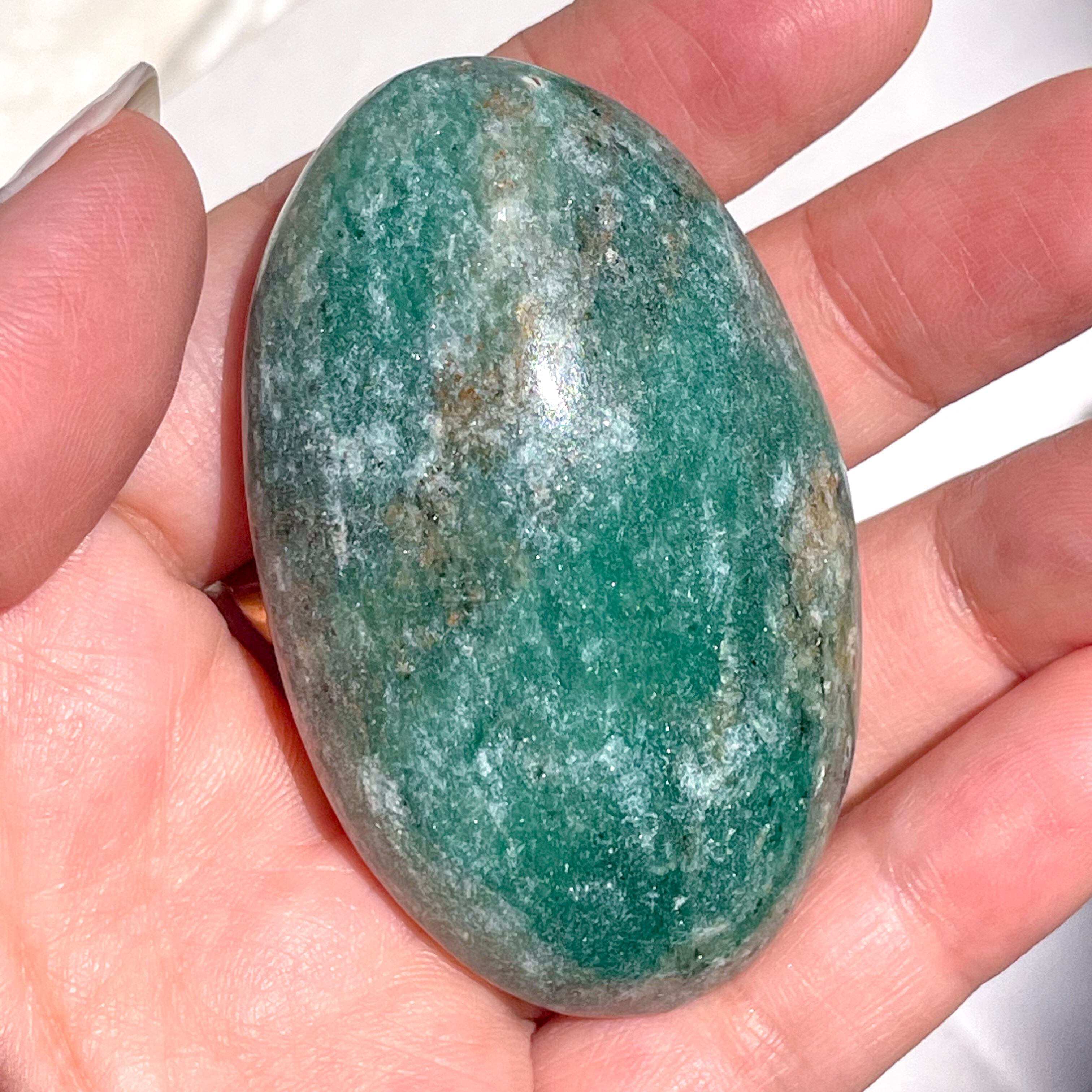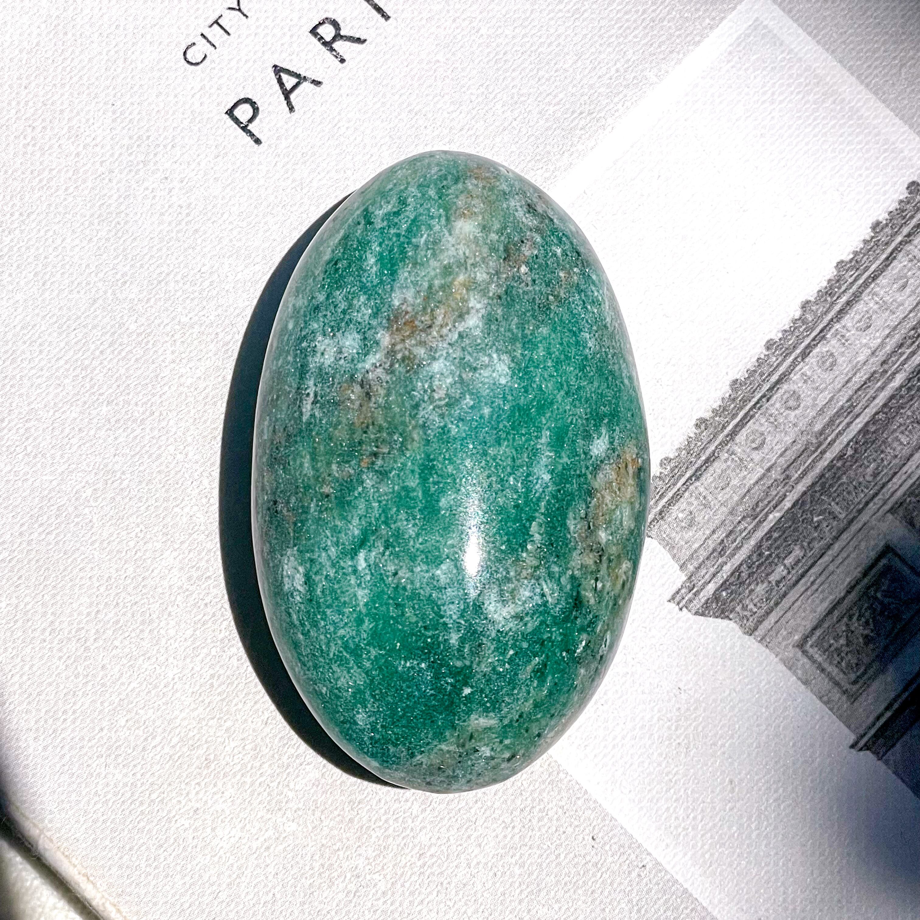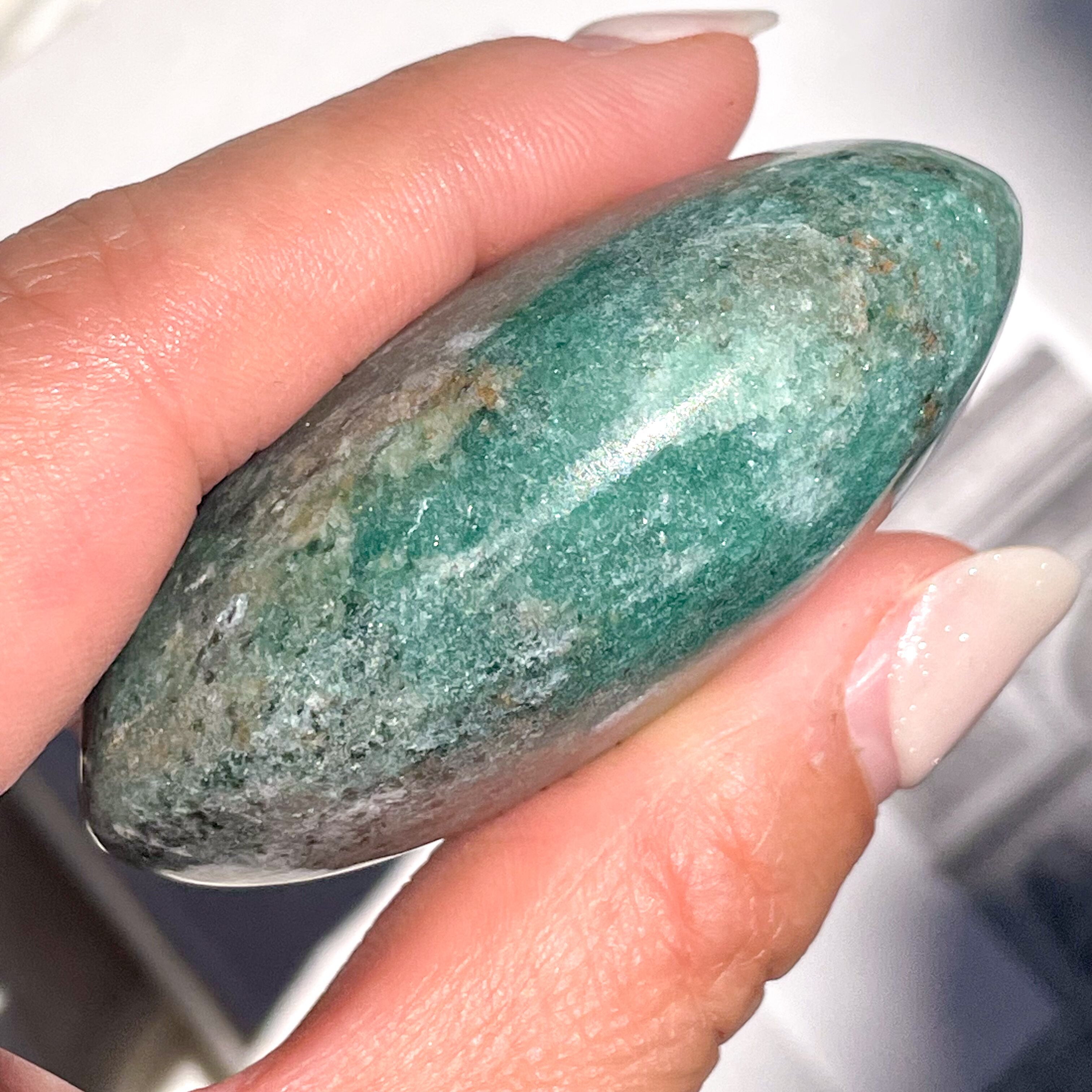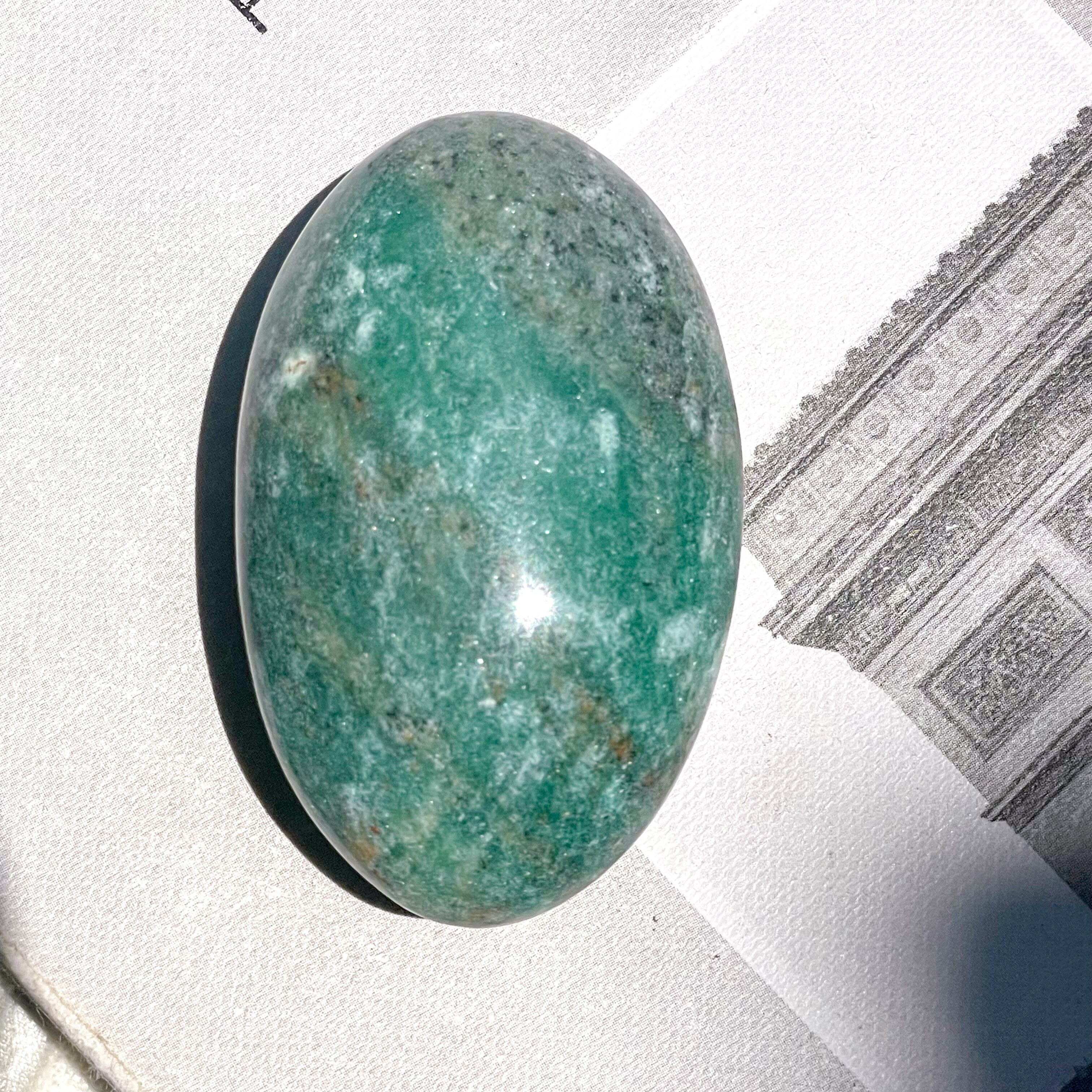 パキスタン産グリーンアベンチュリンの、手のひらにしっくりと馴染む、パームストーン。