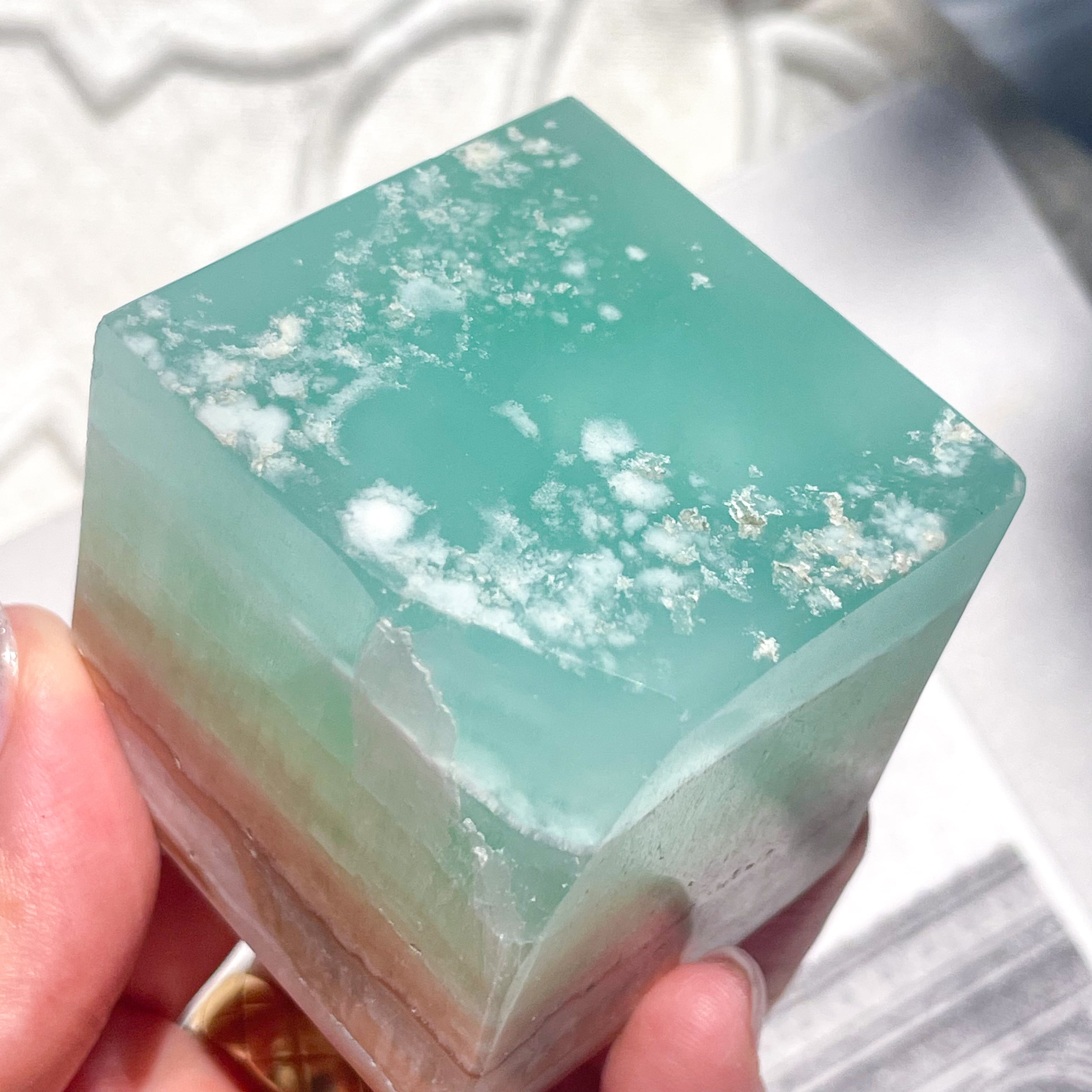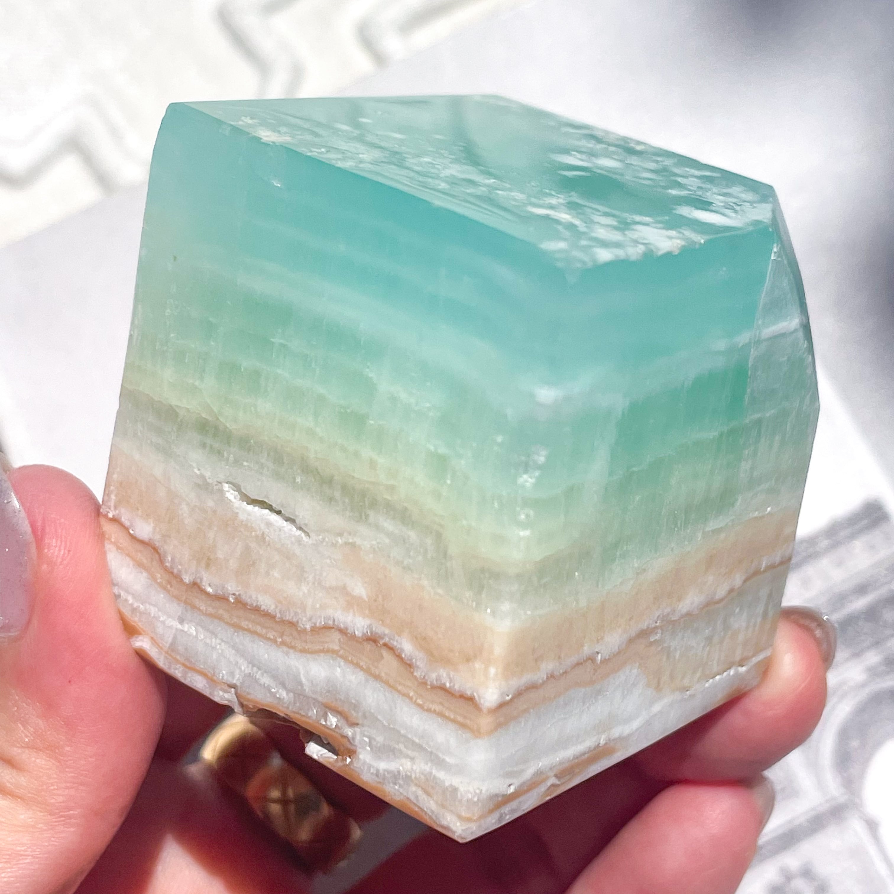 ちょっとめずらしい、カリビアンブルーカルサイトのキューブシェイプ。