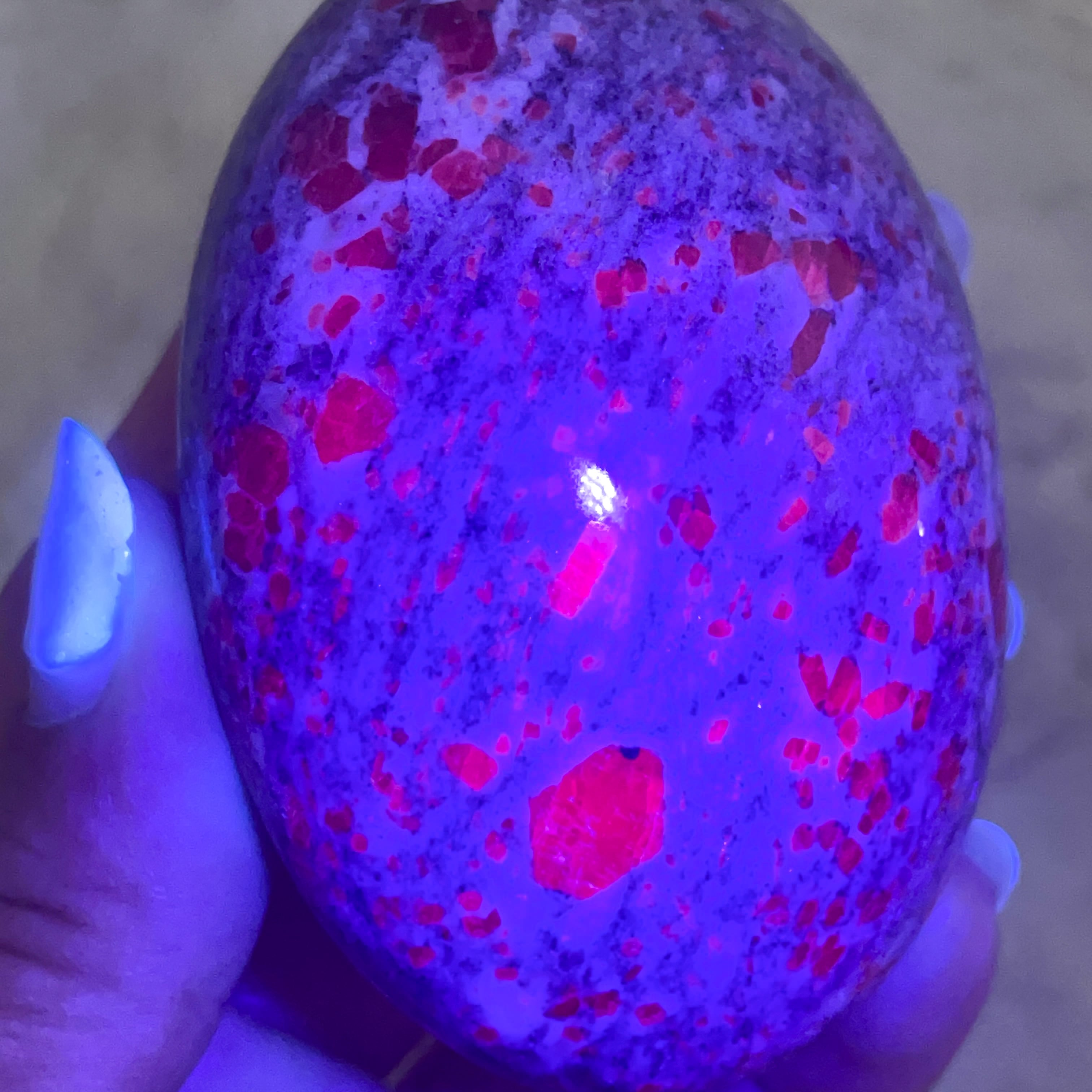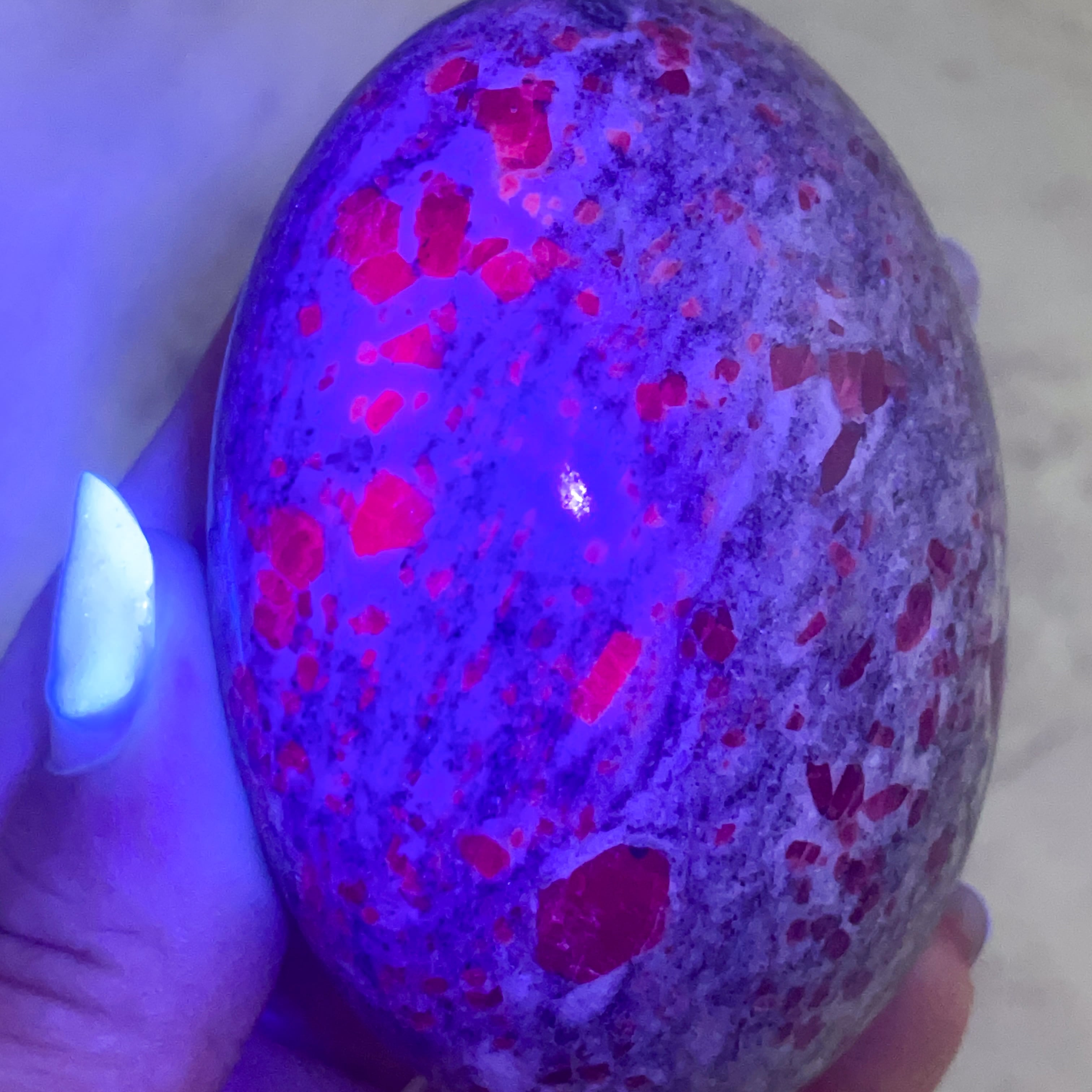 ルビーはUVライトで蛍光することがよく知られていますが、こちらのシリーズもバッチリ蛍光して、太陽光の下とは違った表情を楽しませてくれます。