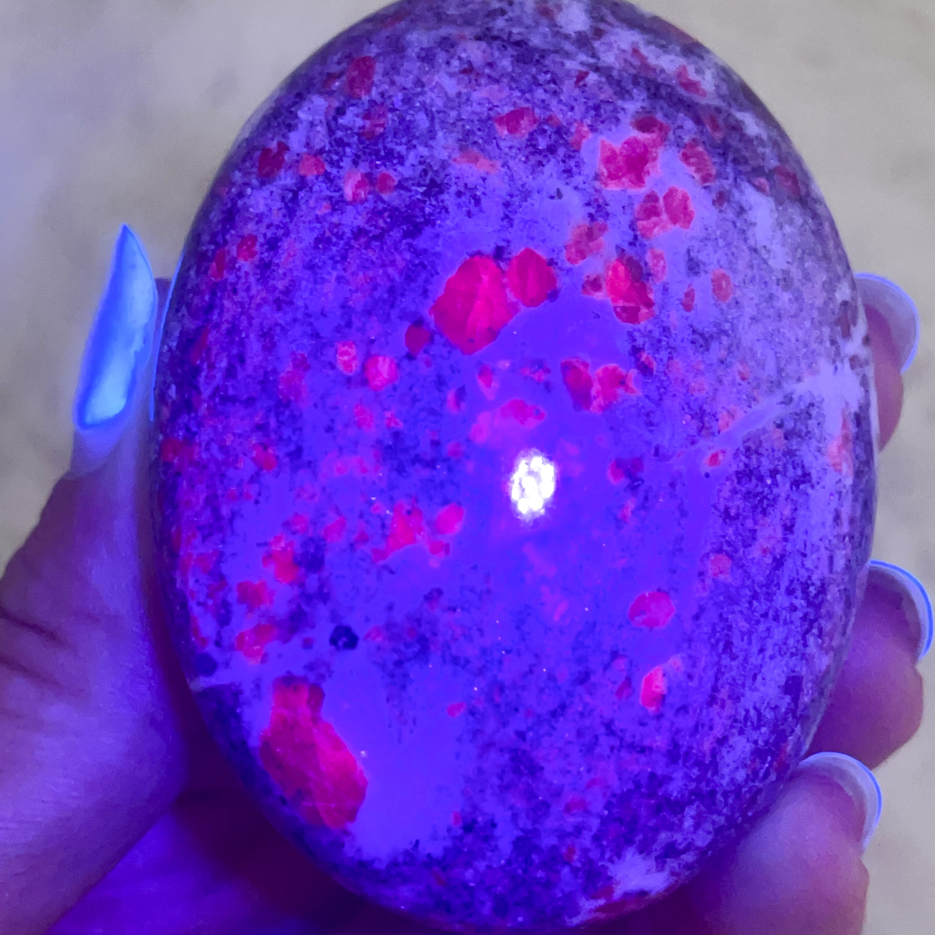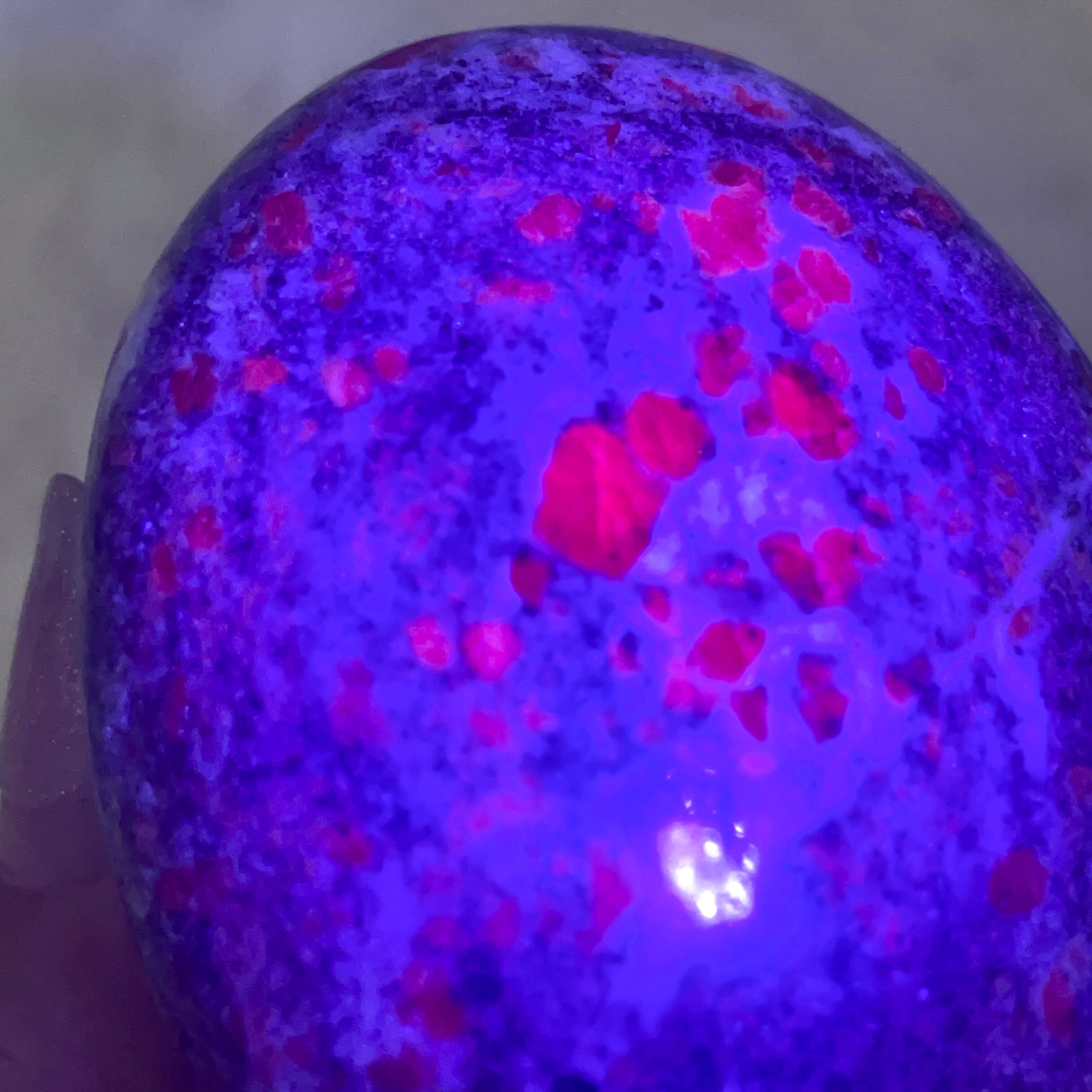 ルビーはUVライトで蛍光することがよく知られていますが、こちらのシリーズもバッチリ蛍光して、太陽光の下とは違った表情を楽しませてくれます。