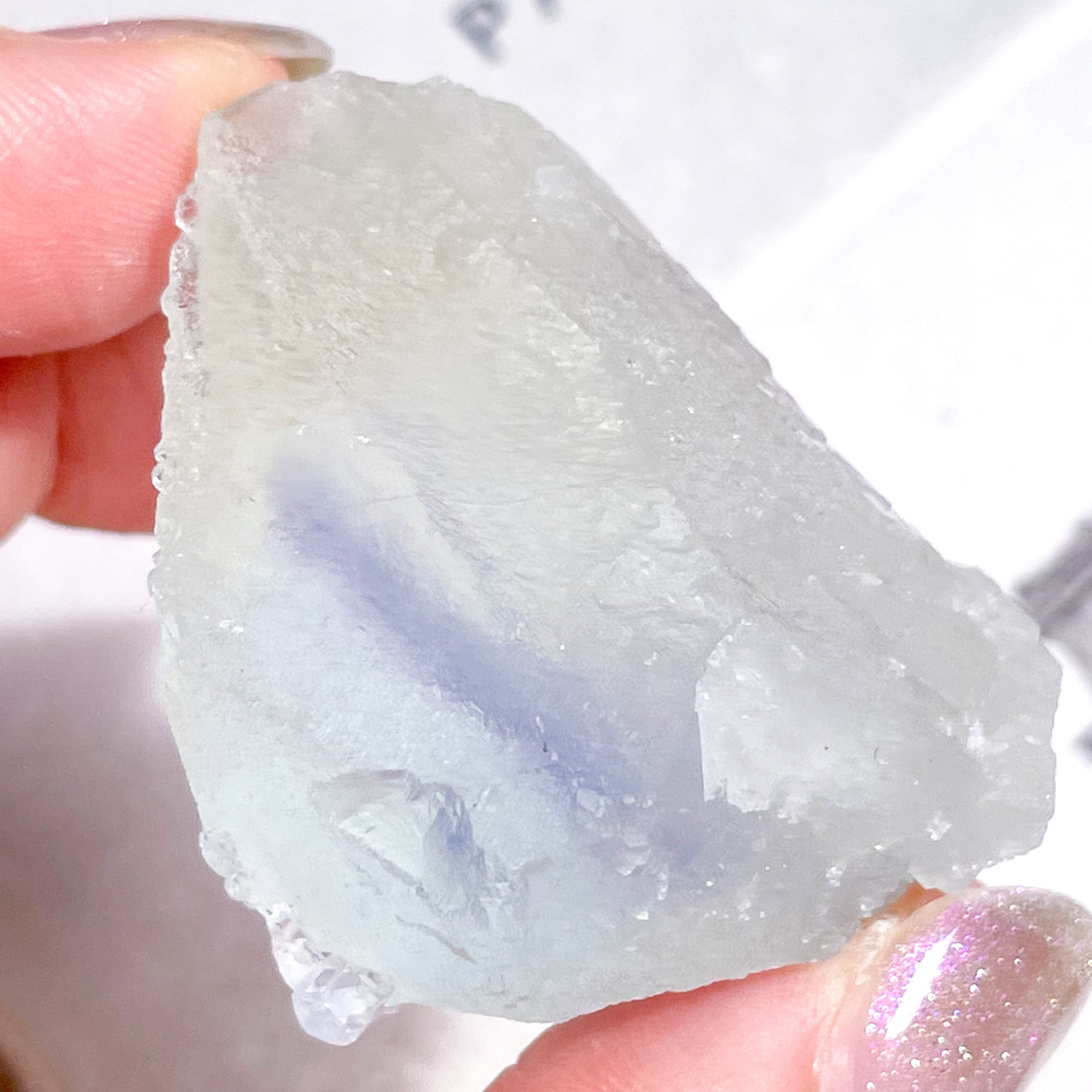 瑞々しいグリーンと、淡いブルーのバイカラーが印象的なフローライト原石です。