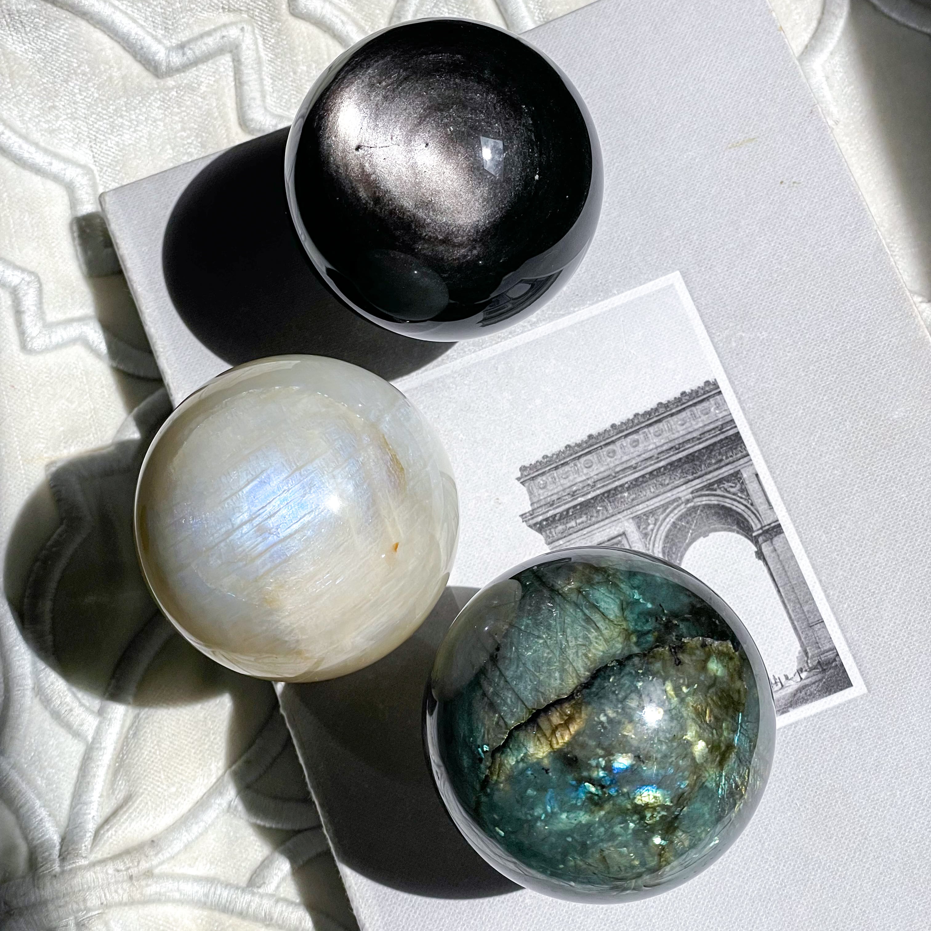 New Moon (Silver Sheen Obsidian Sphere) 3 ✧ シルバーシーンオブジディアン