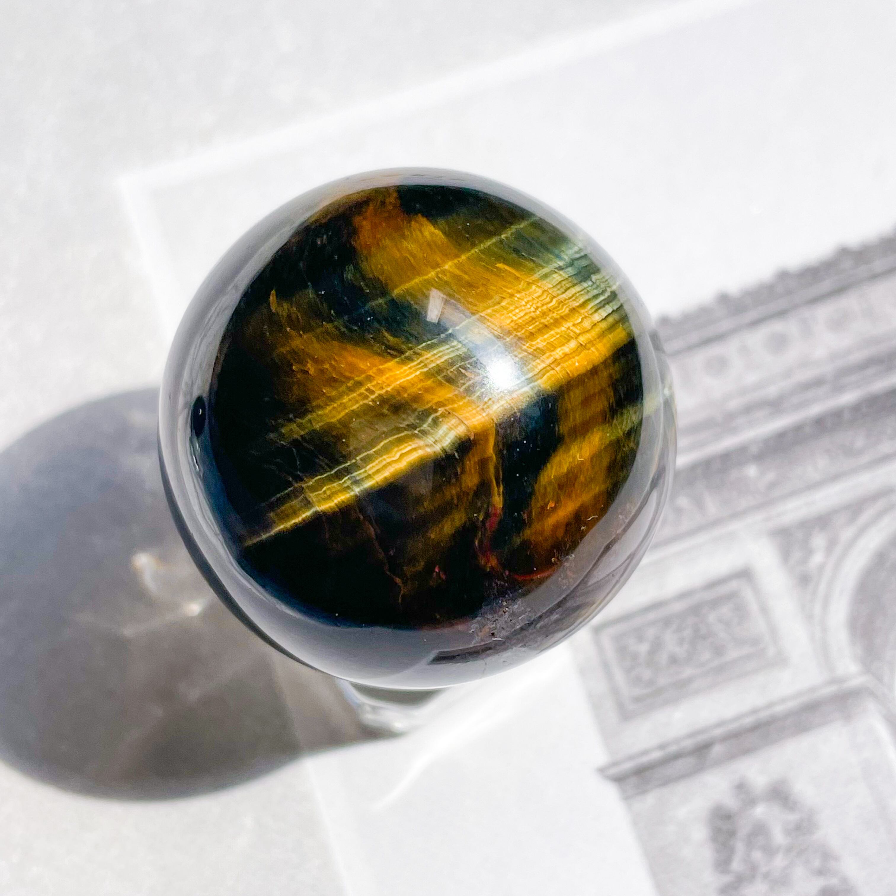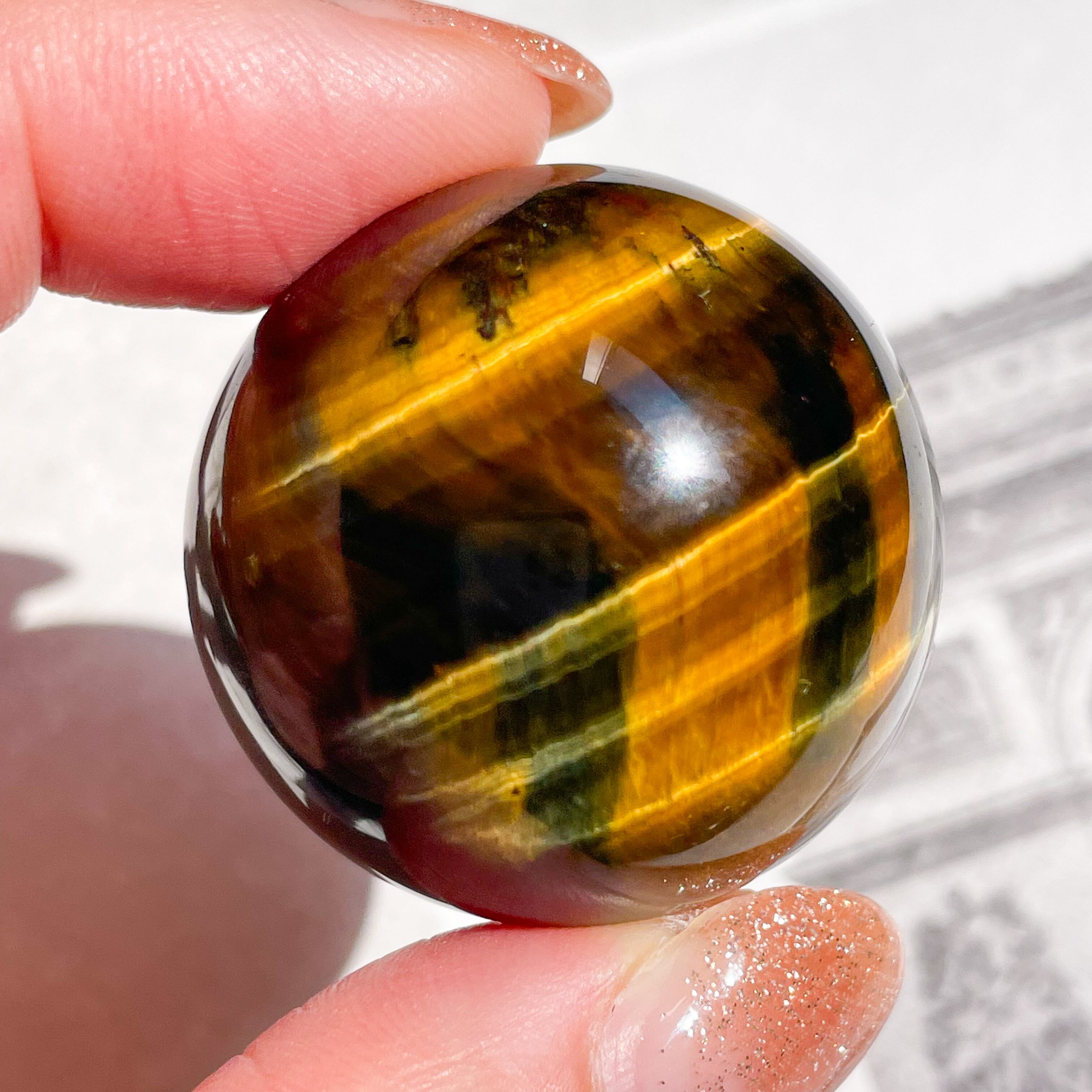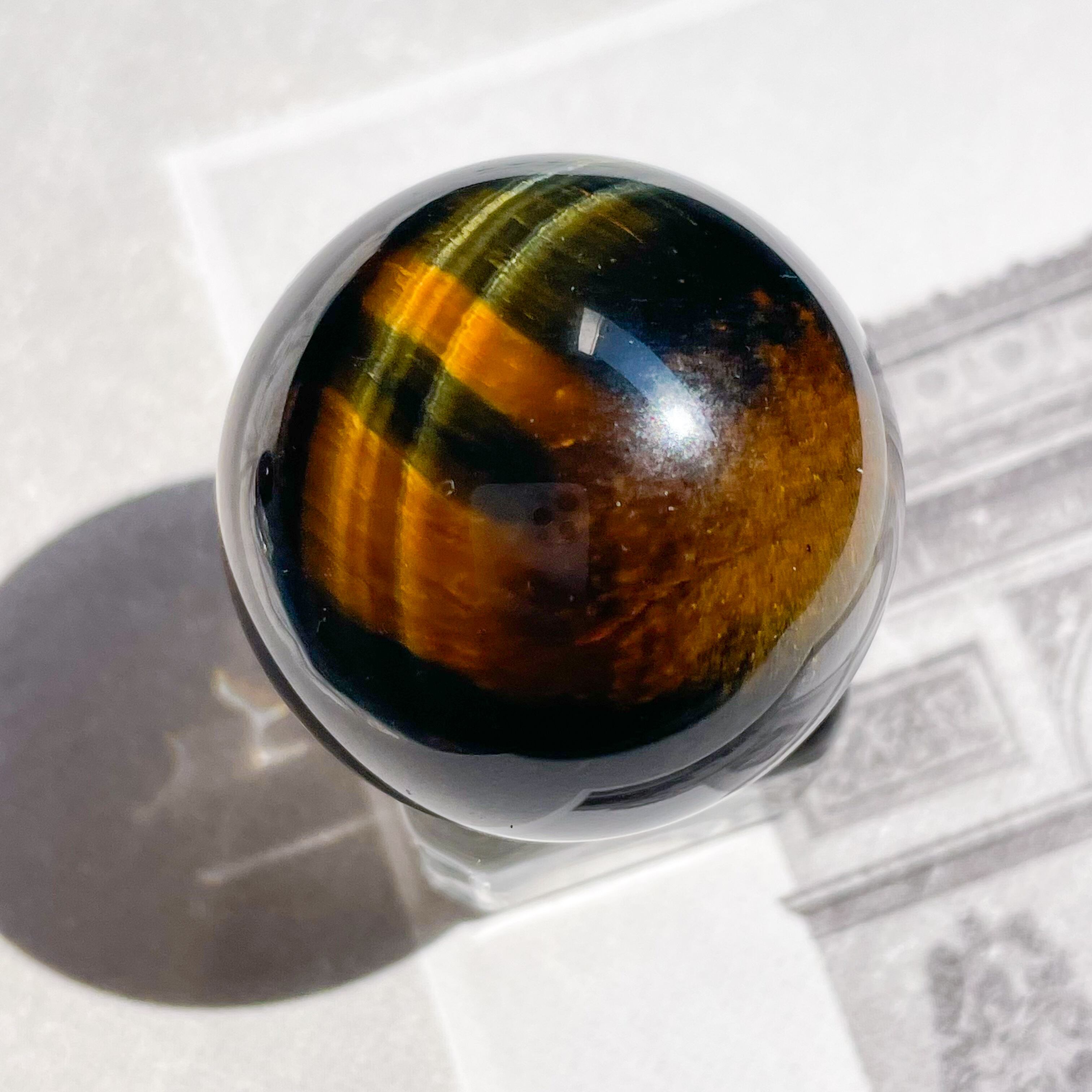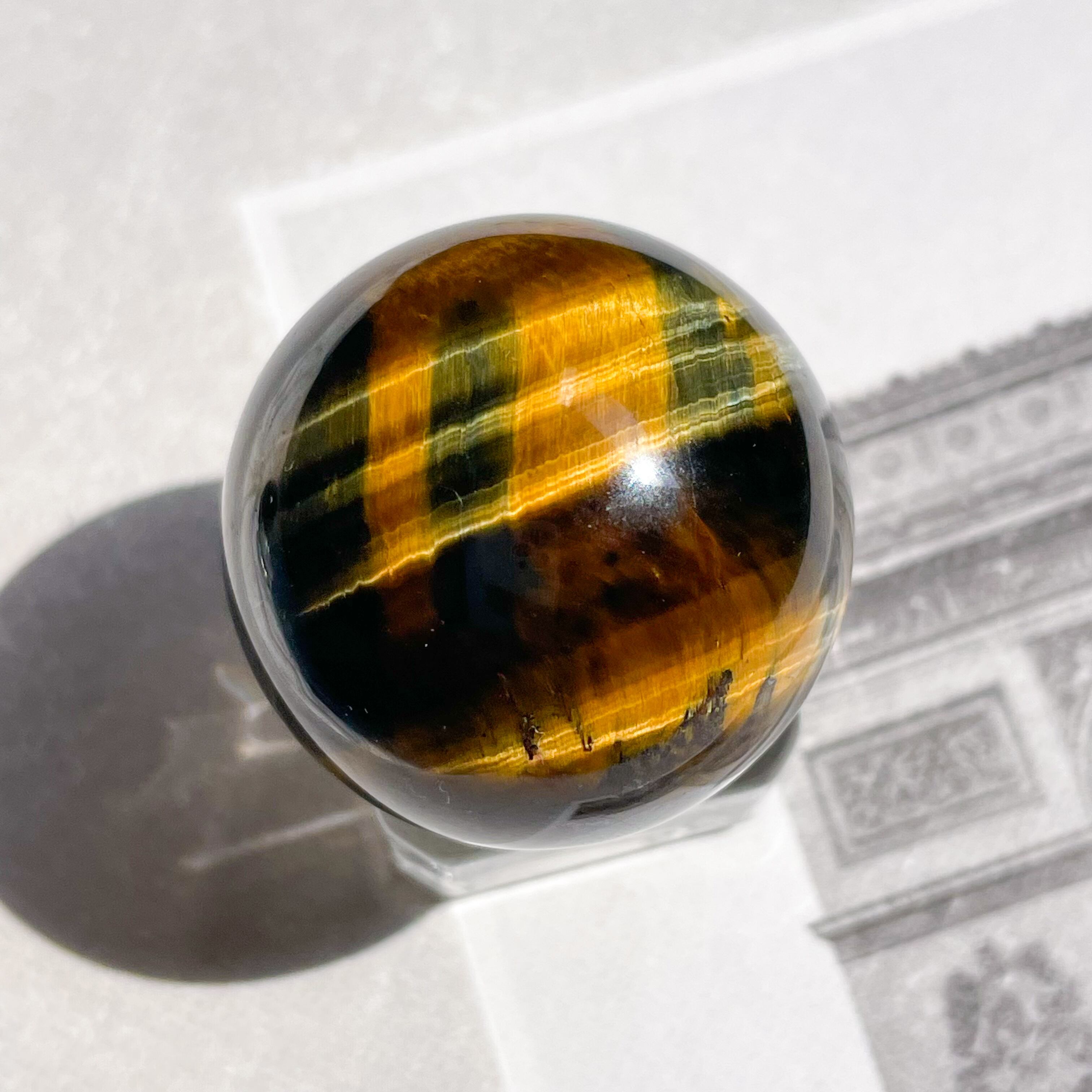 黄金に輝くタイガーアイのスフィア。虎みたいな模様も素敵なピース♡