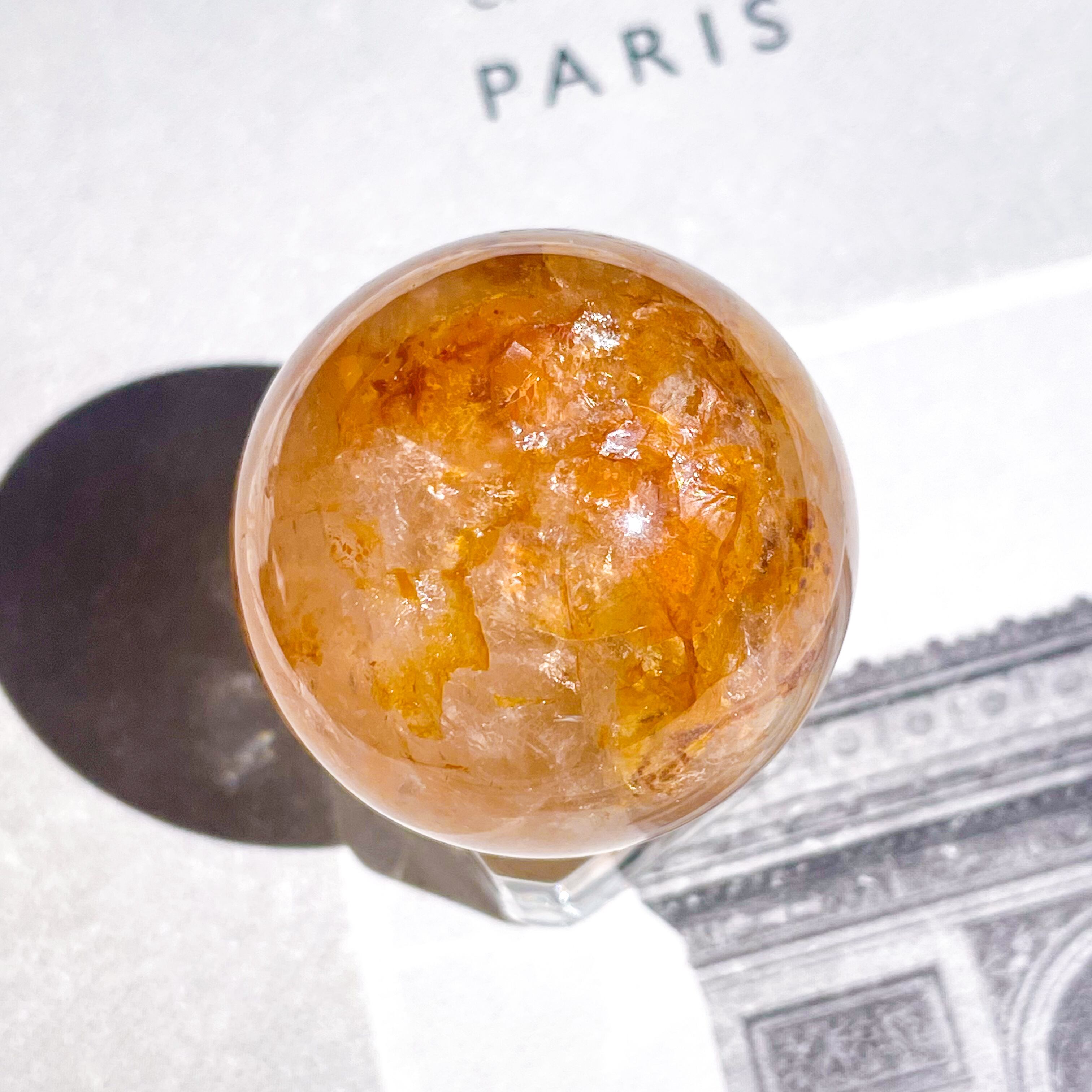 6条のスターが現れる、スペシャルなマダガスカル産のゴールデンヒーラー (イエローヘマタイトクオーツ)スフィア。