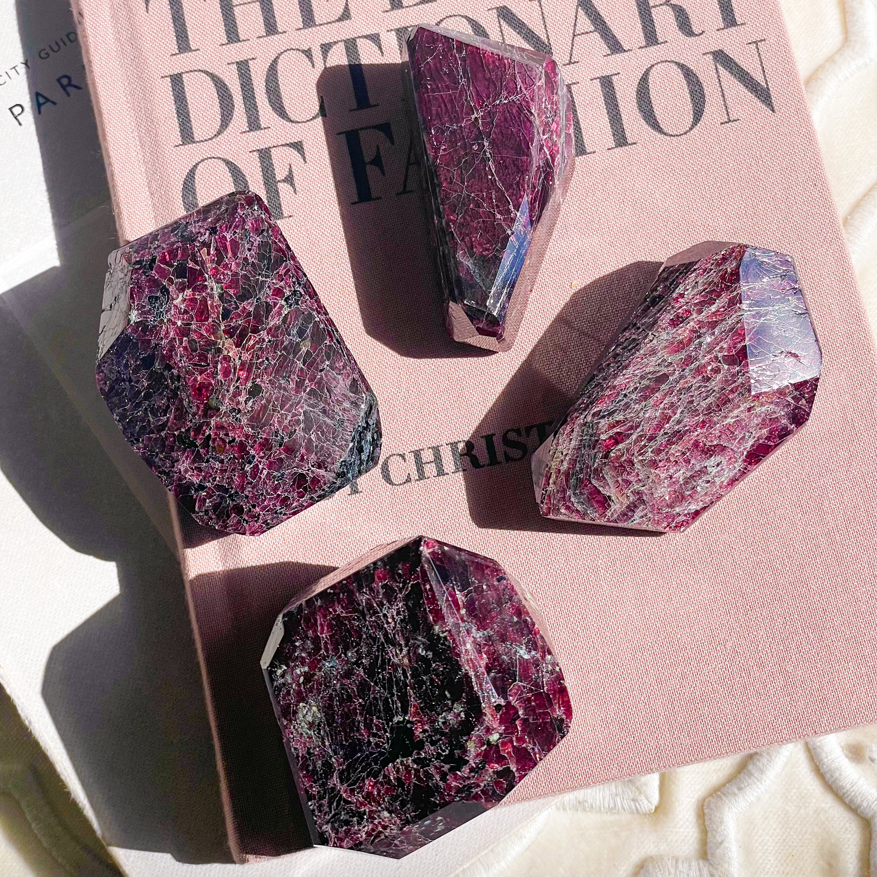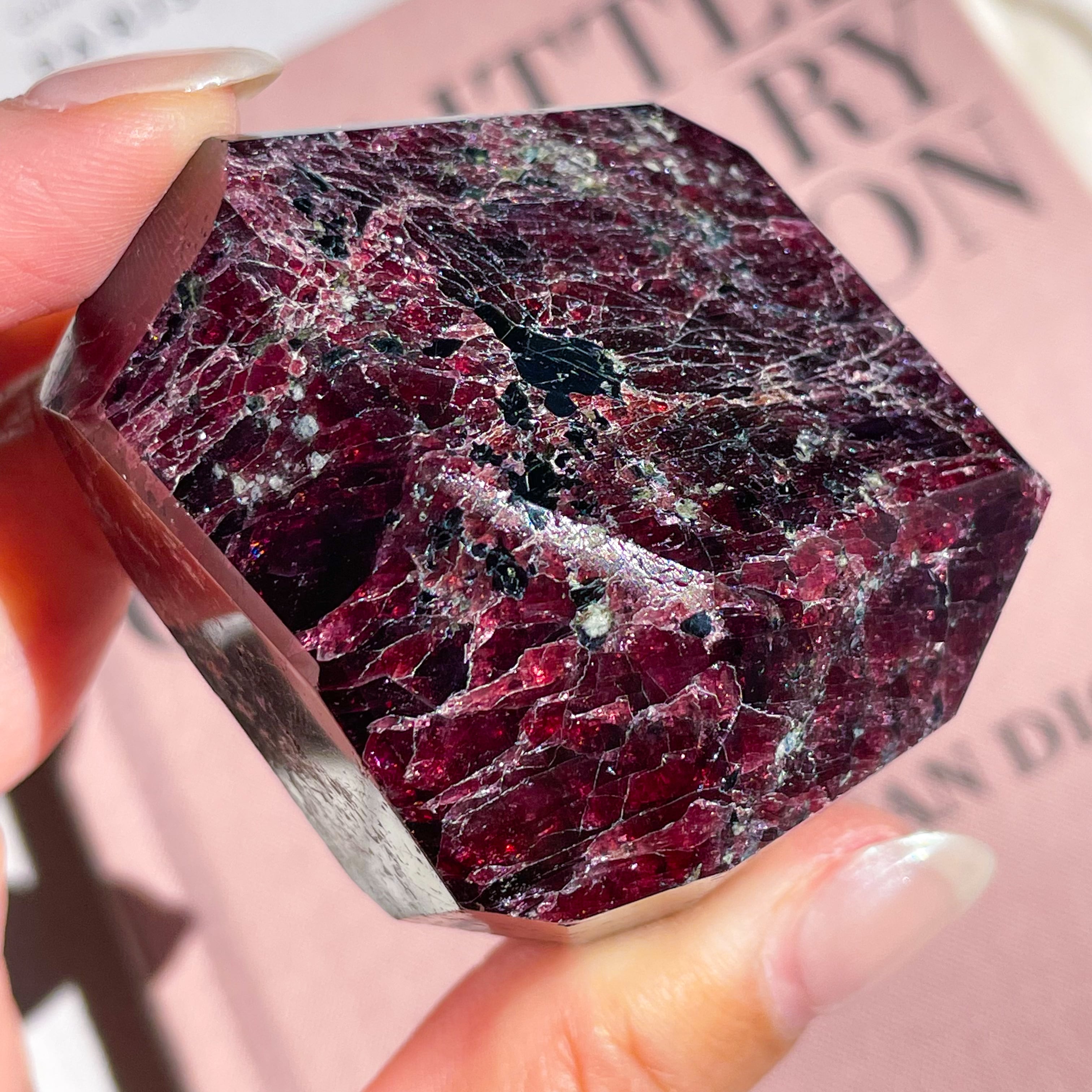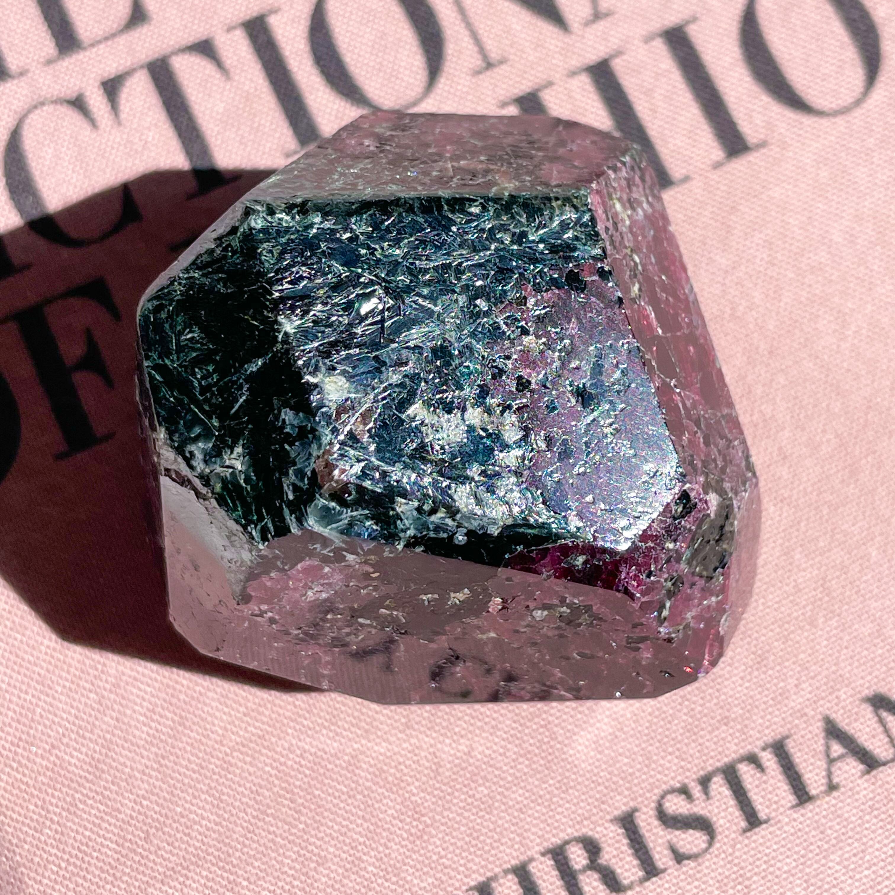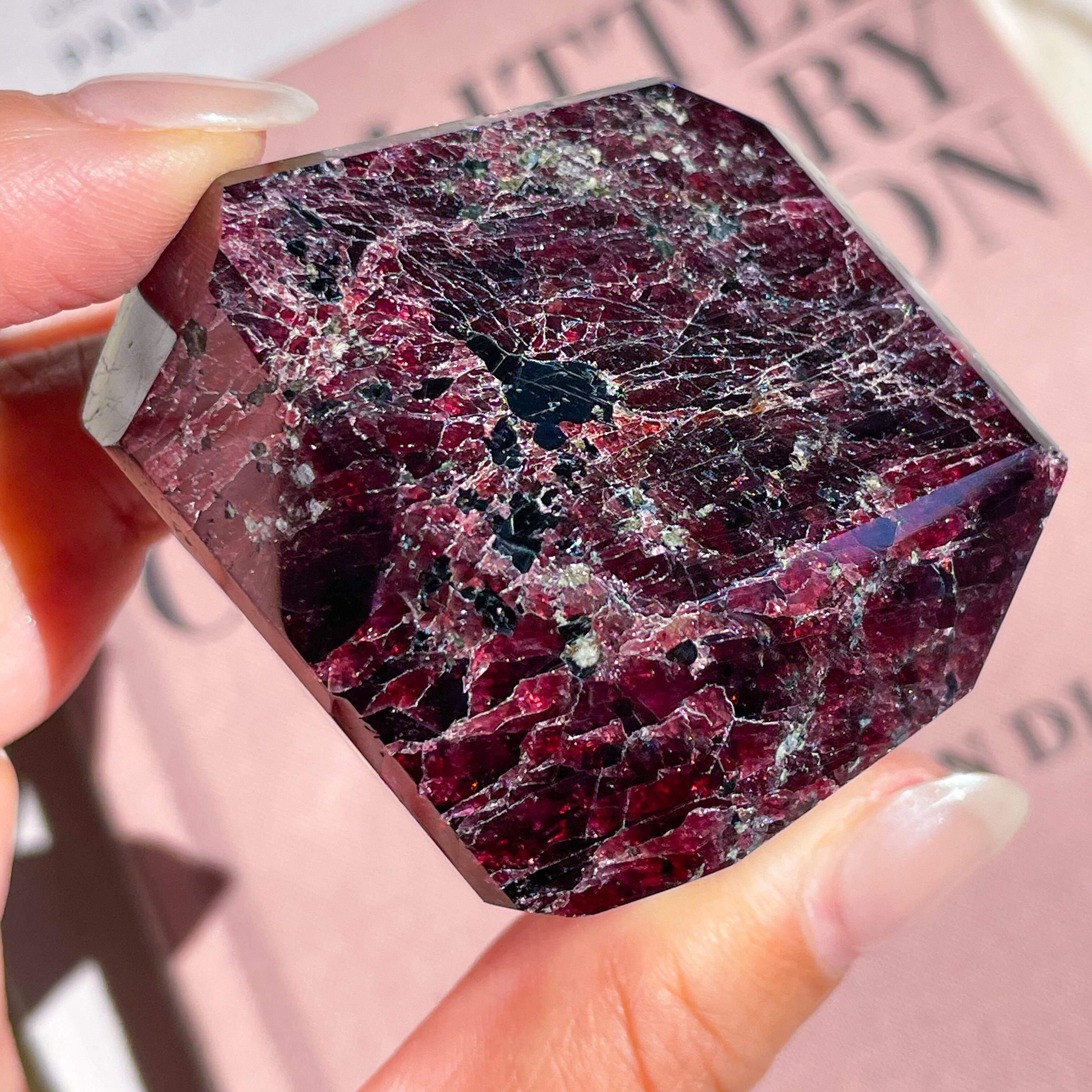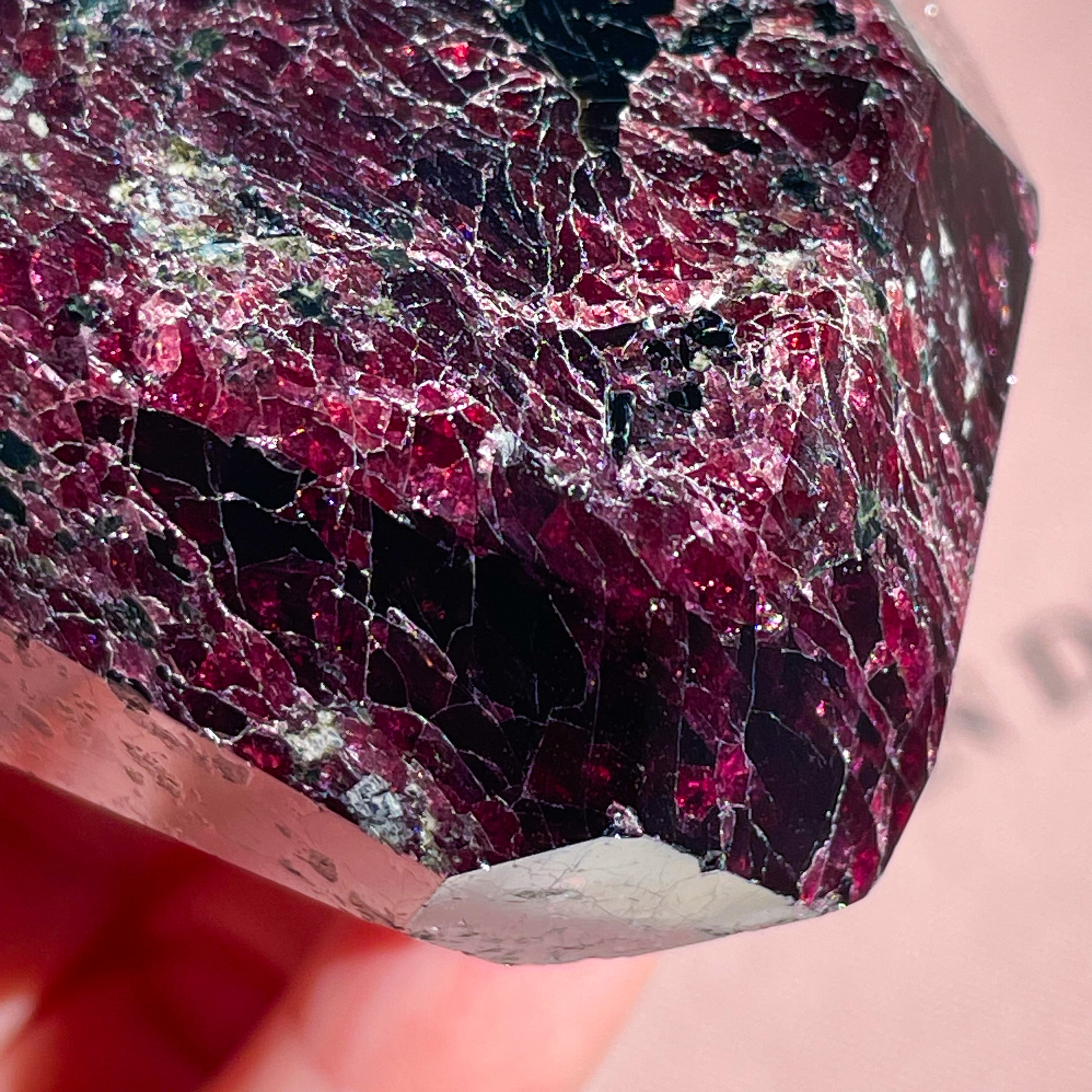 太陽光の元、きらきらと輝く美しいガーネットです。