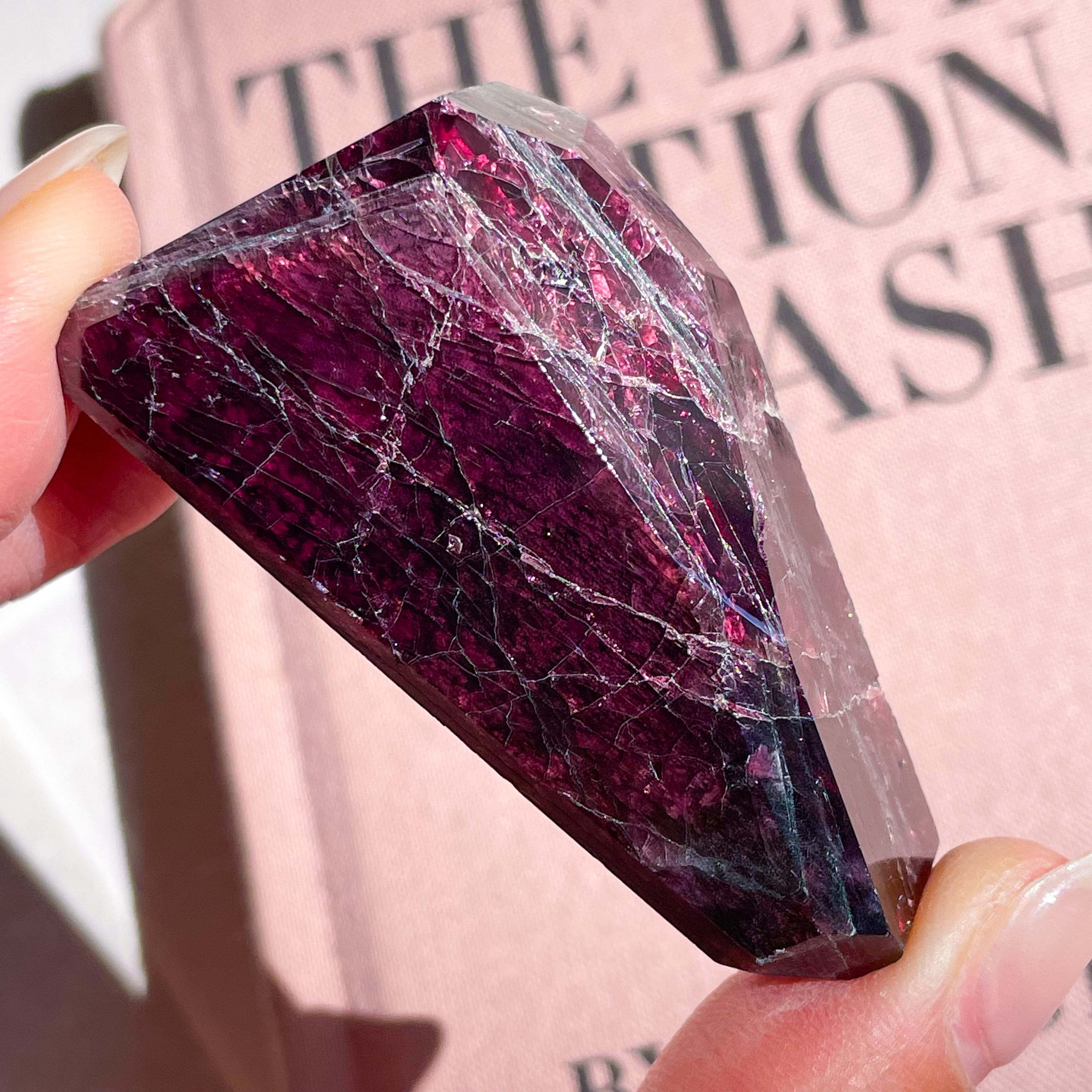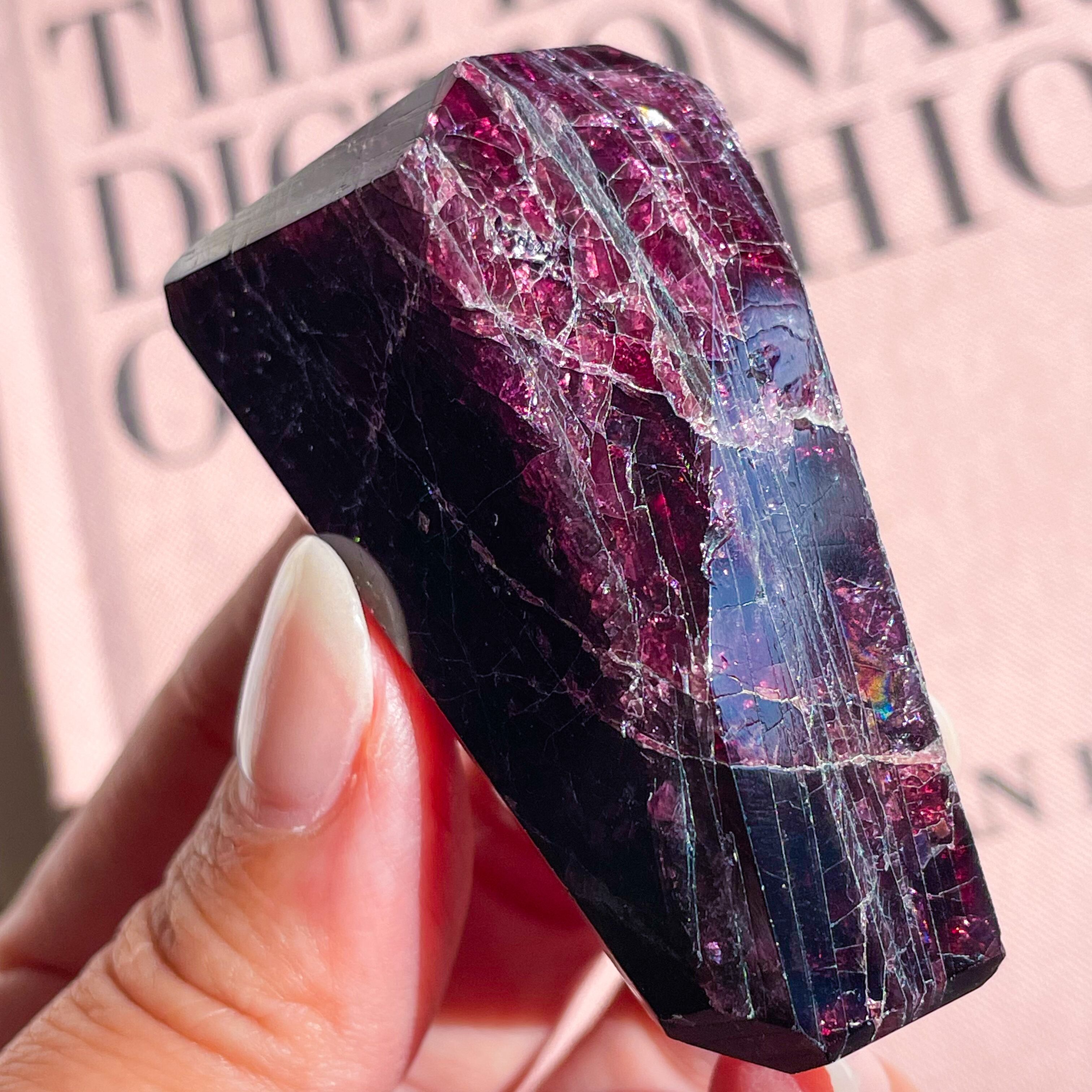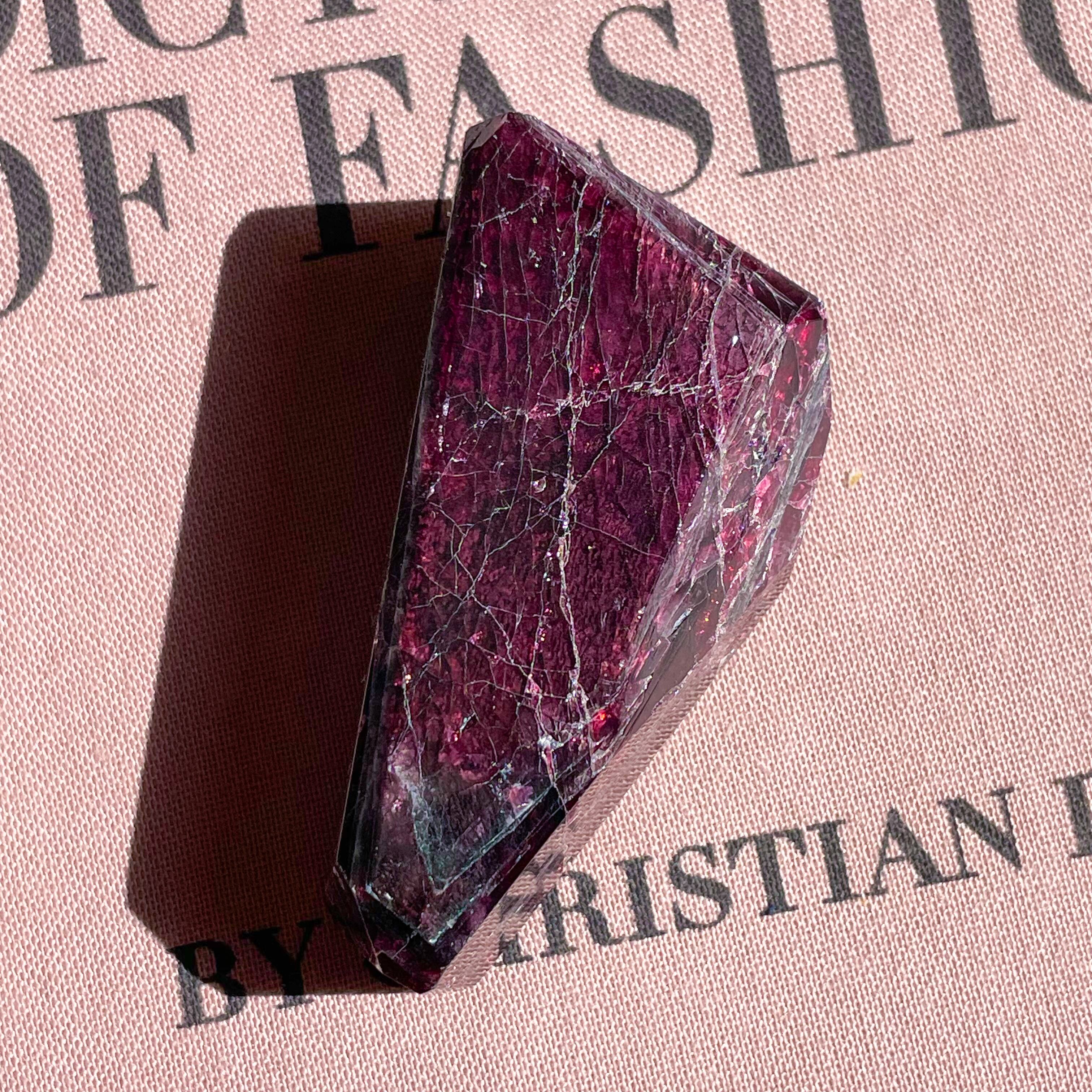 太陽光の元、きらきらと輝く美しいガーネットです。