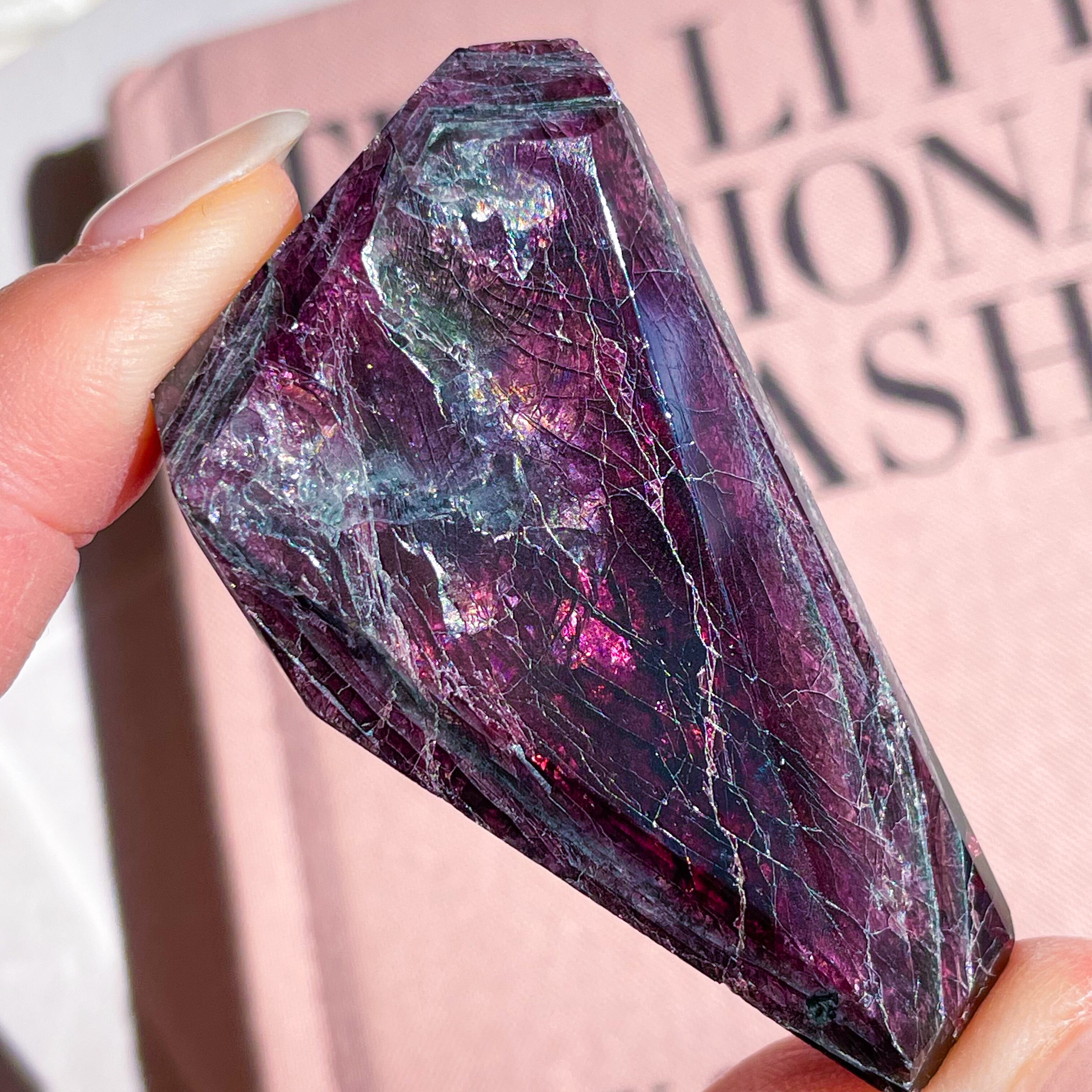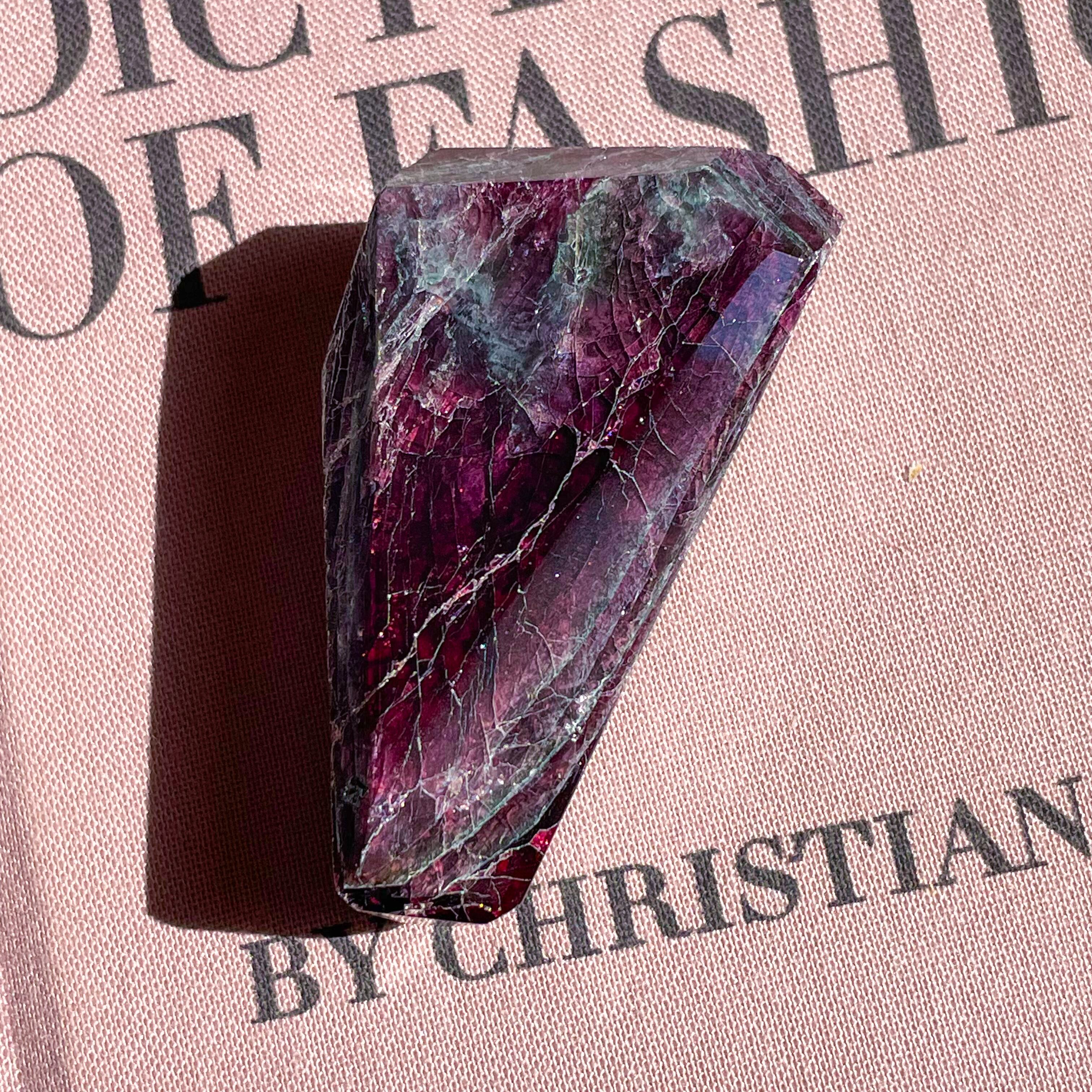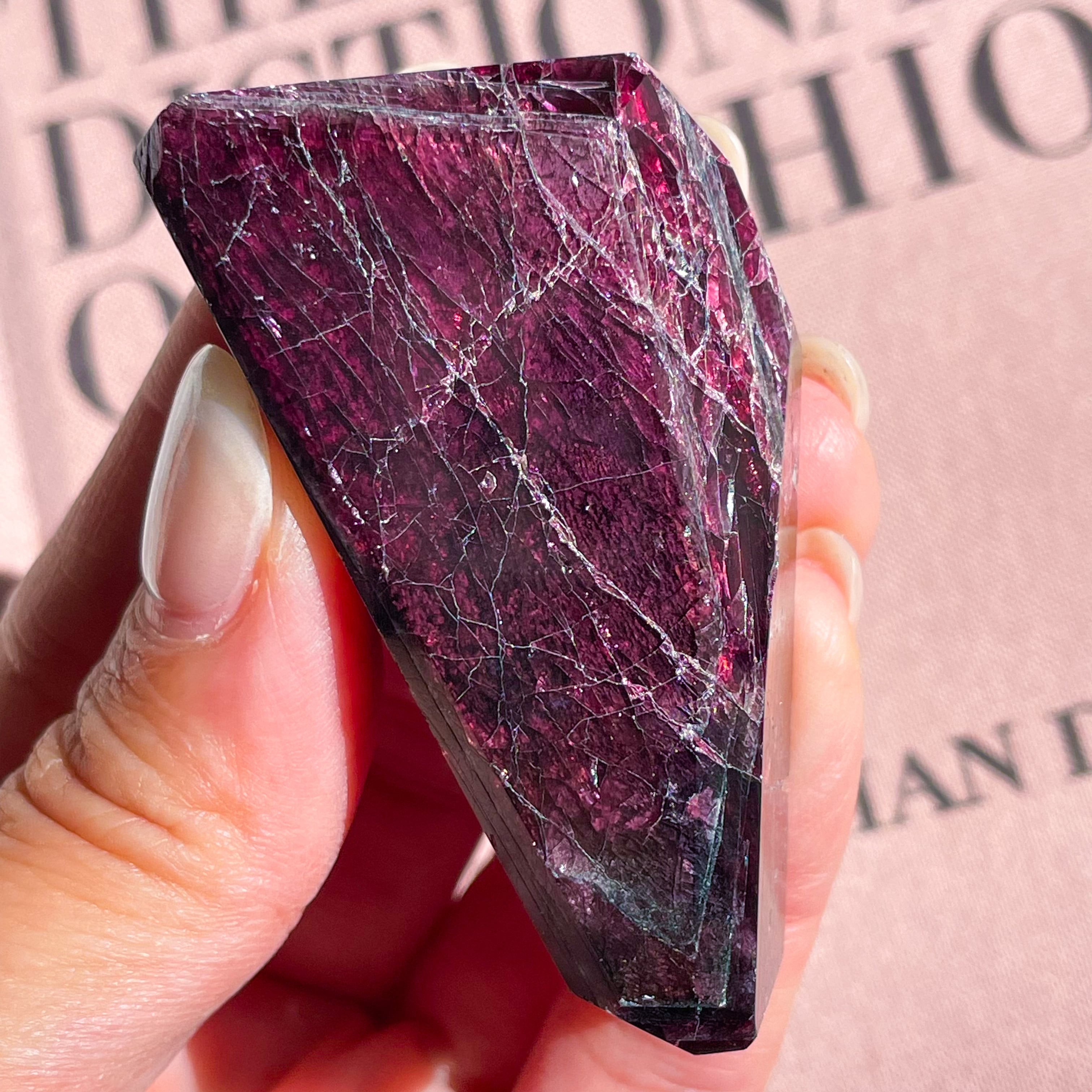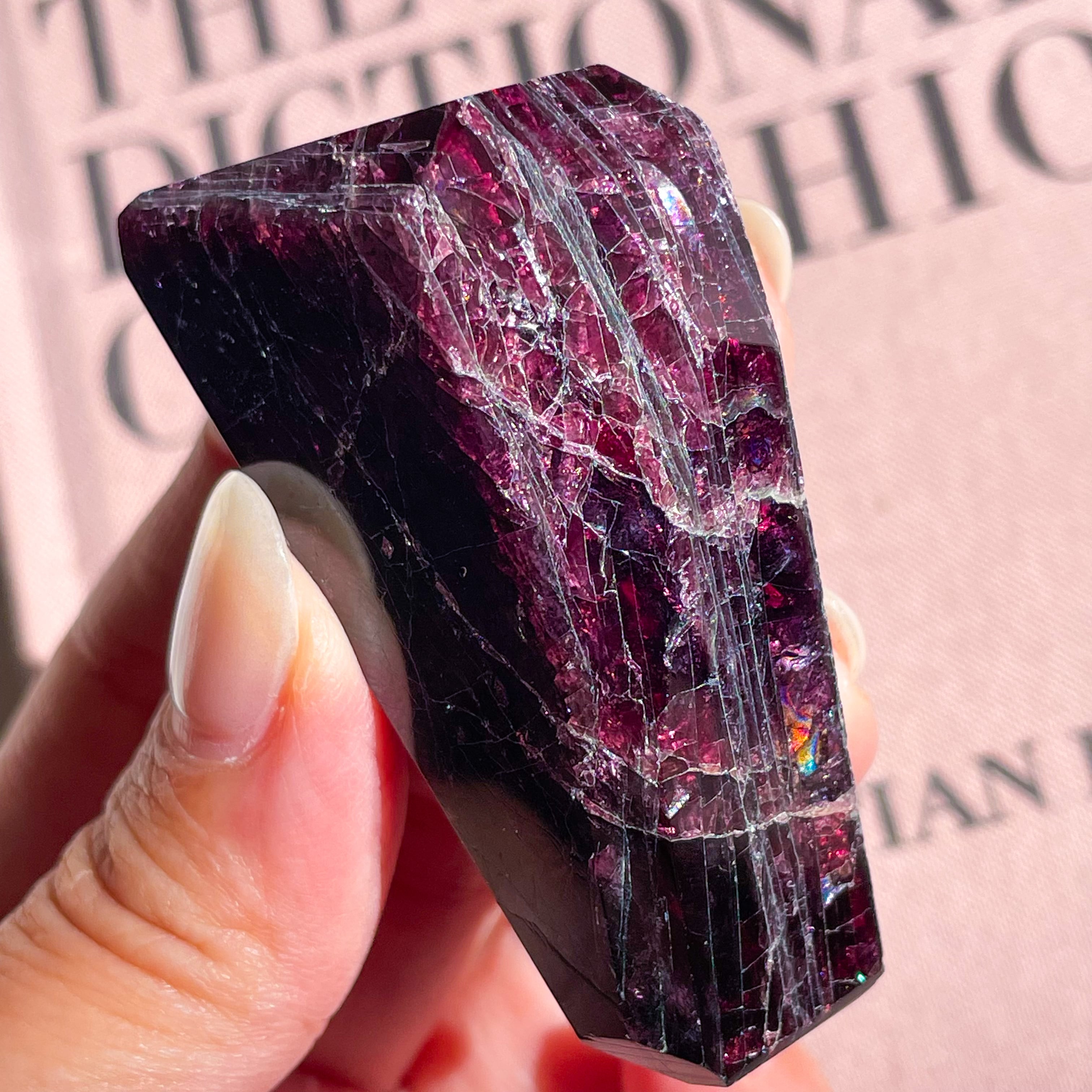 太陽光の元、きらきらと輝く美しいガーネットです。